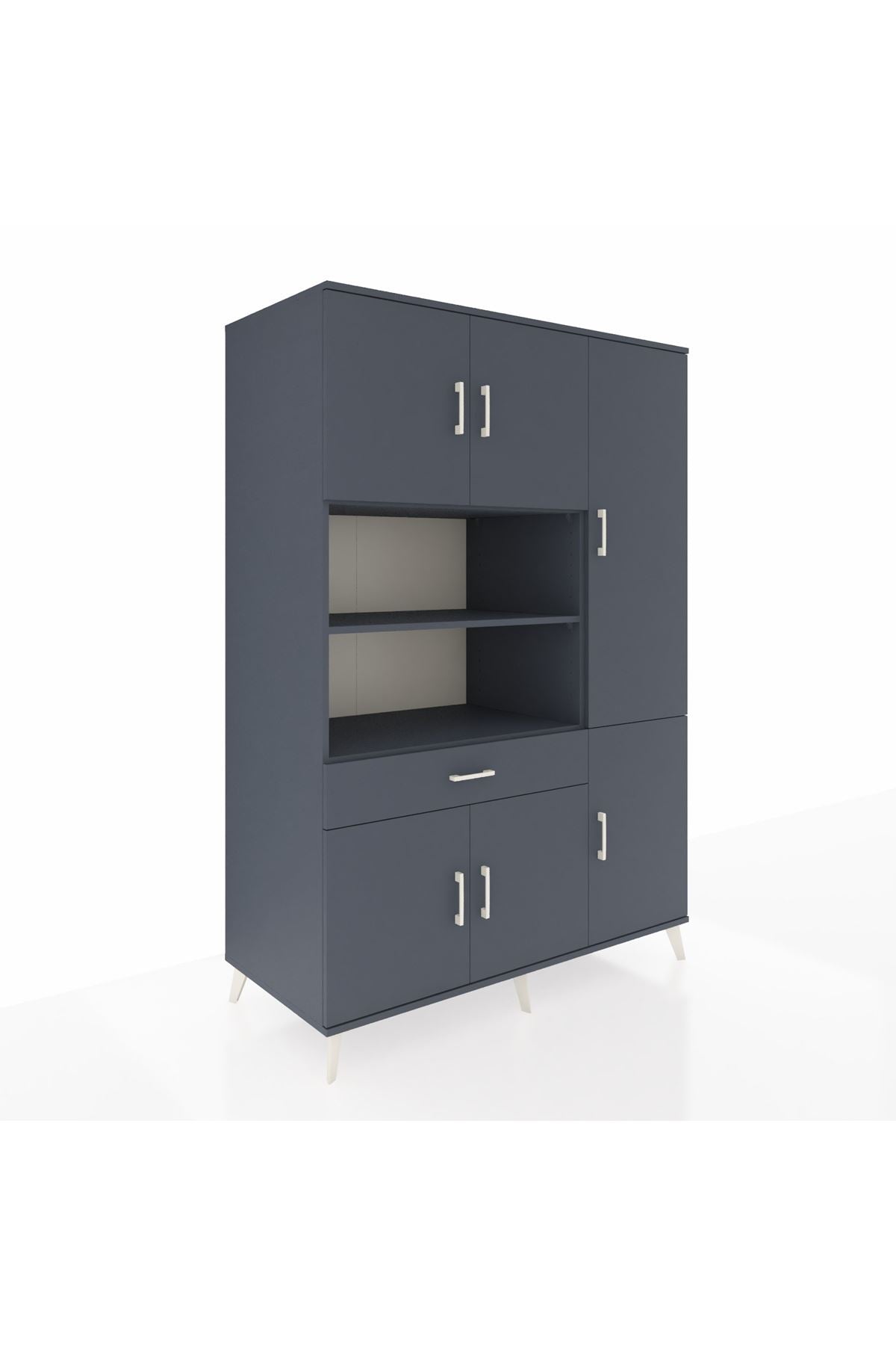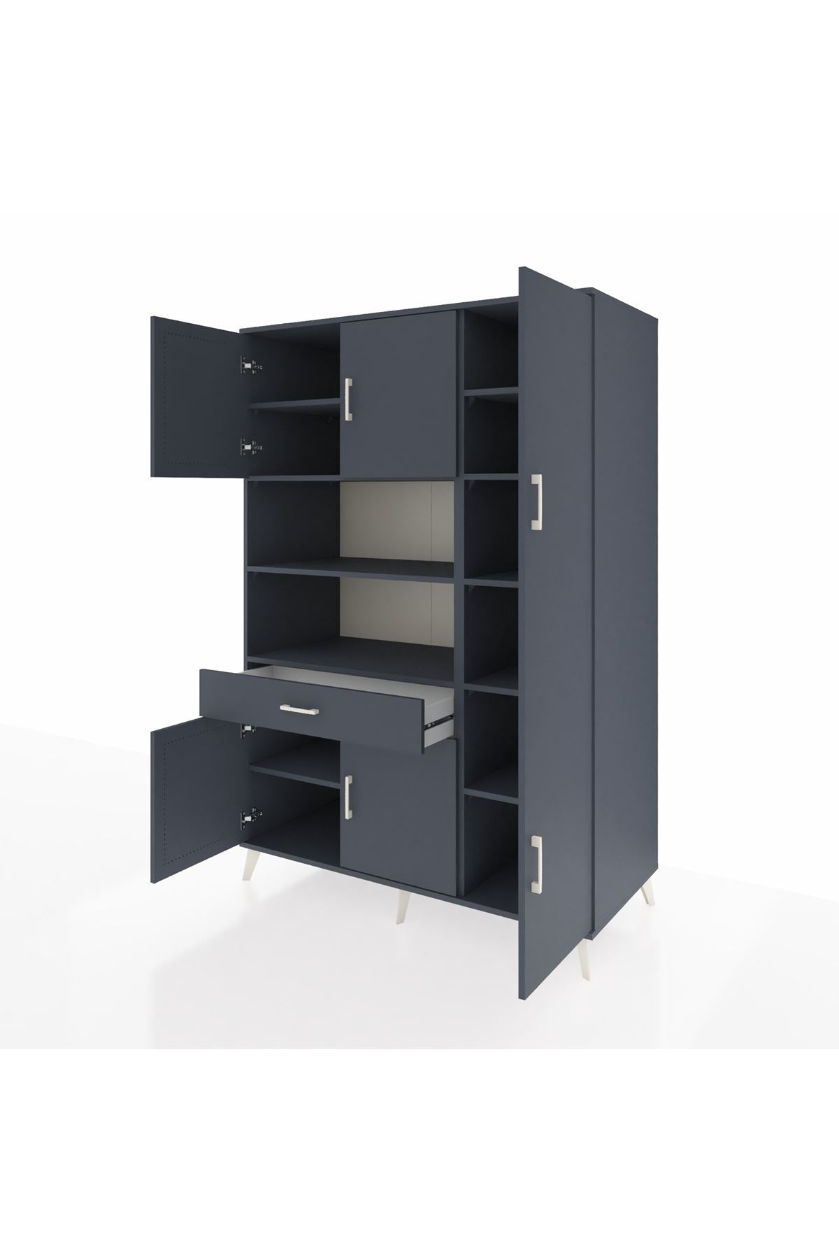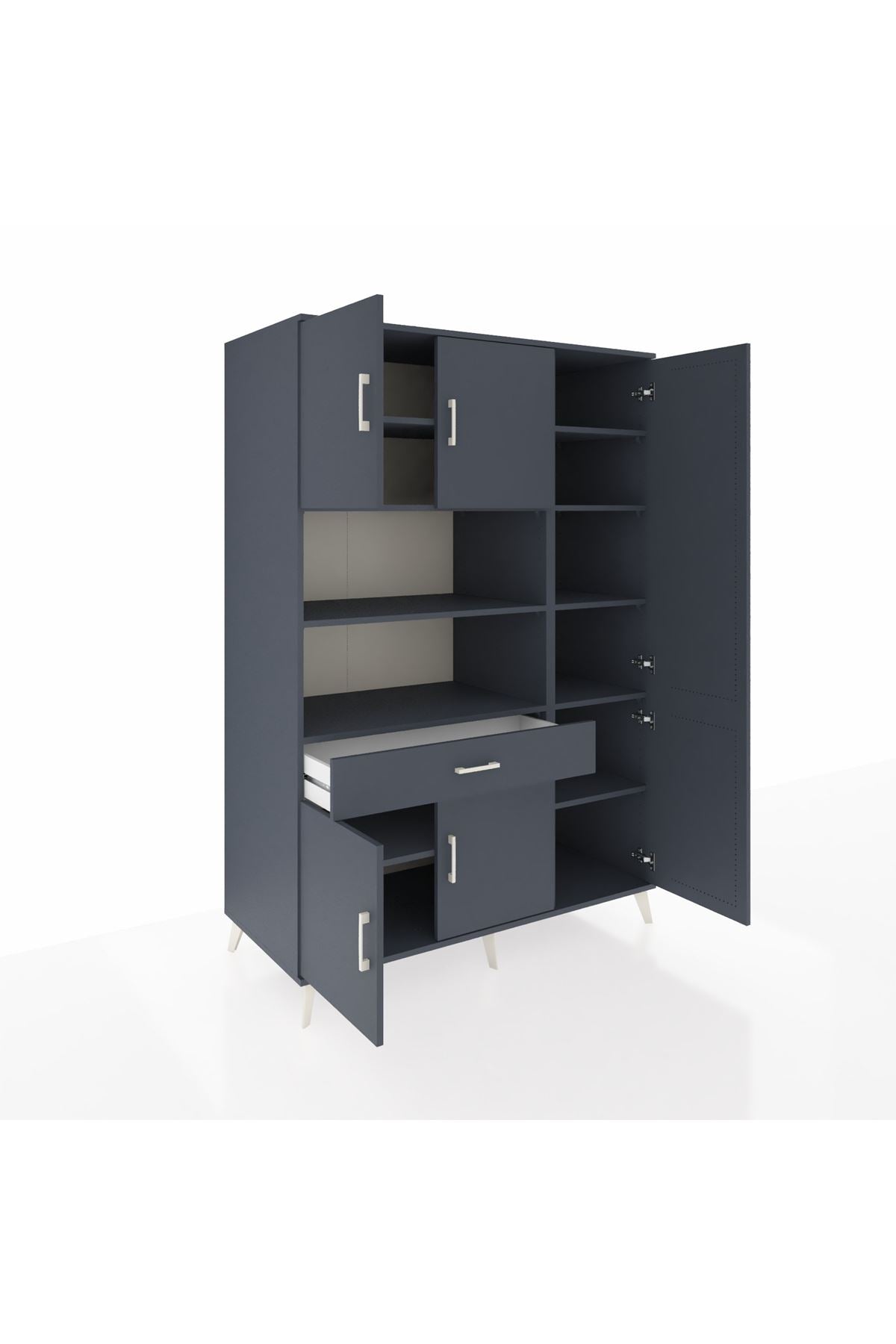 Kronos Dolap 10 Raflı Tek Çekmeceli 6 Kapaklı 132x59x195 Antrasit-Antrasit/Antrasit