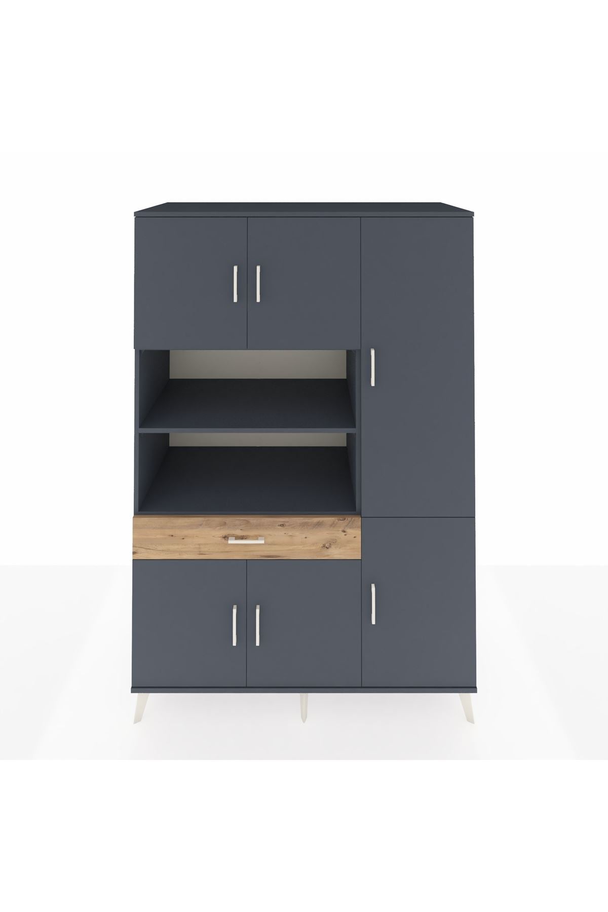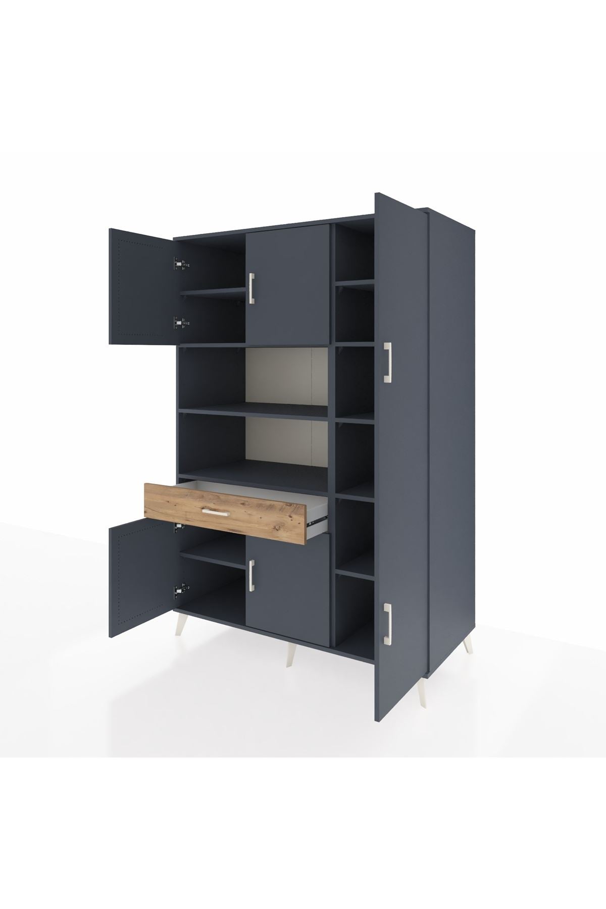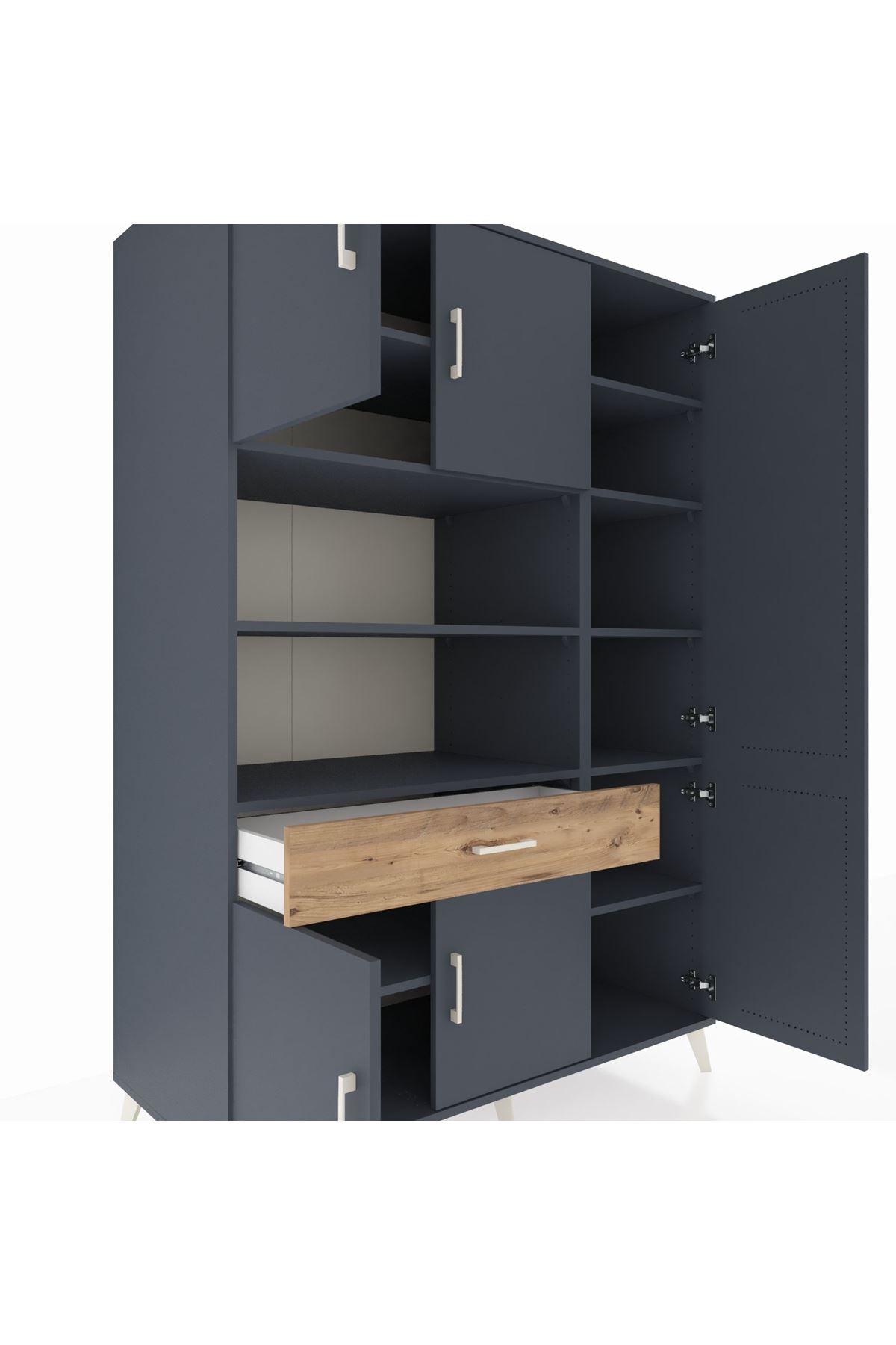 Kronos Dolap 10 Raflı Tek Çekmeceli 6 Kapaklı 132x59x195 Antrasit-Antrasit/Çam