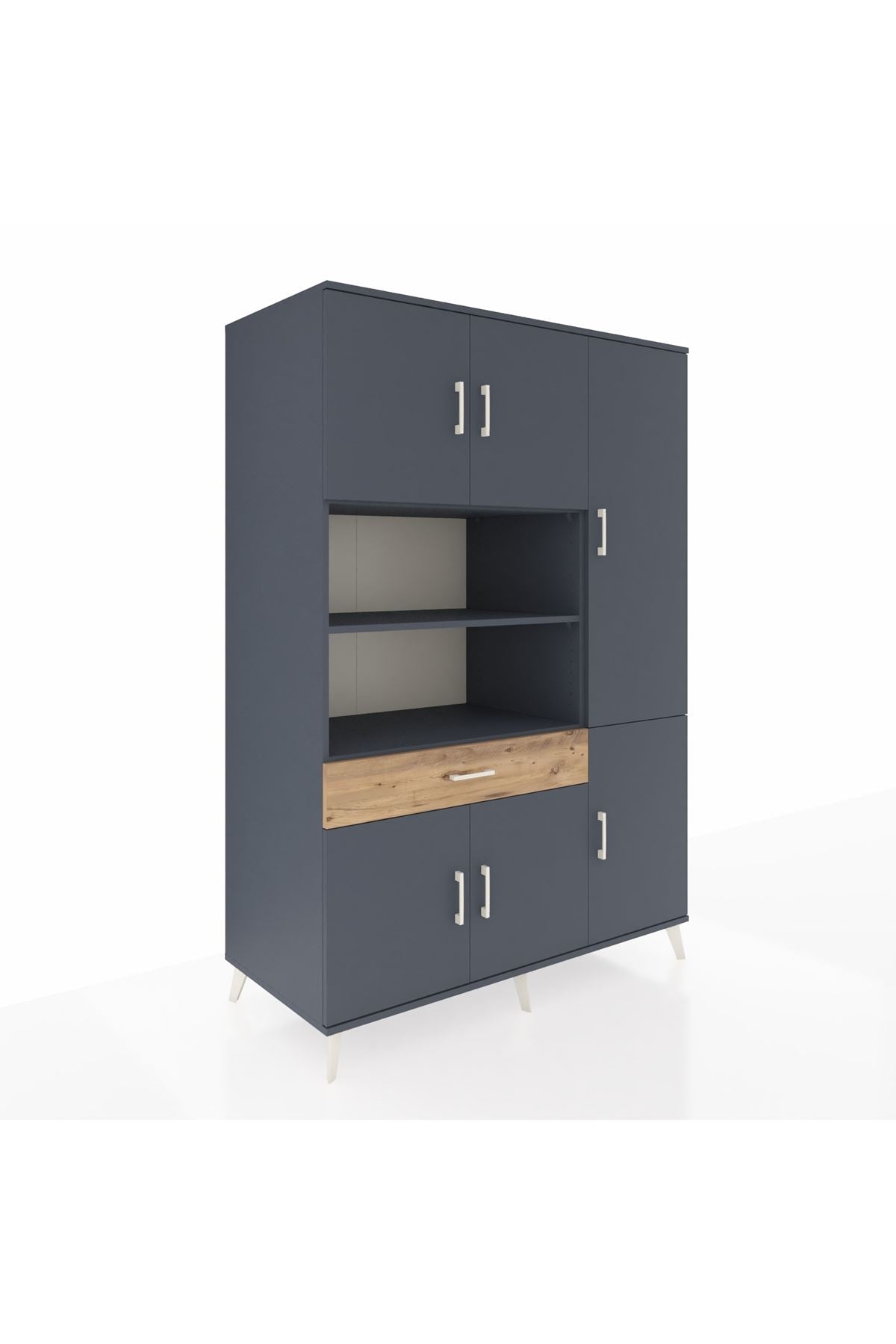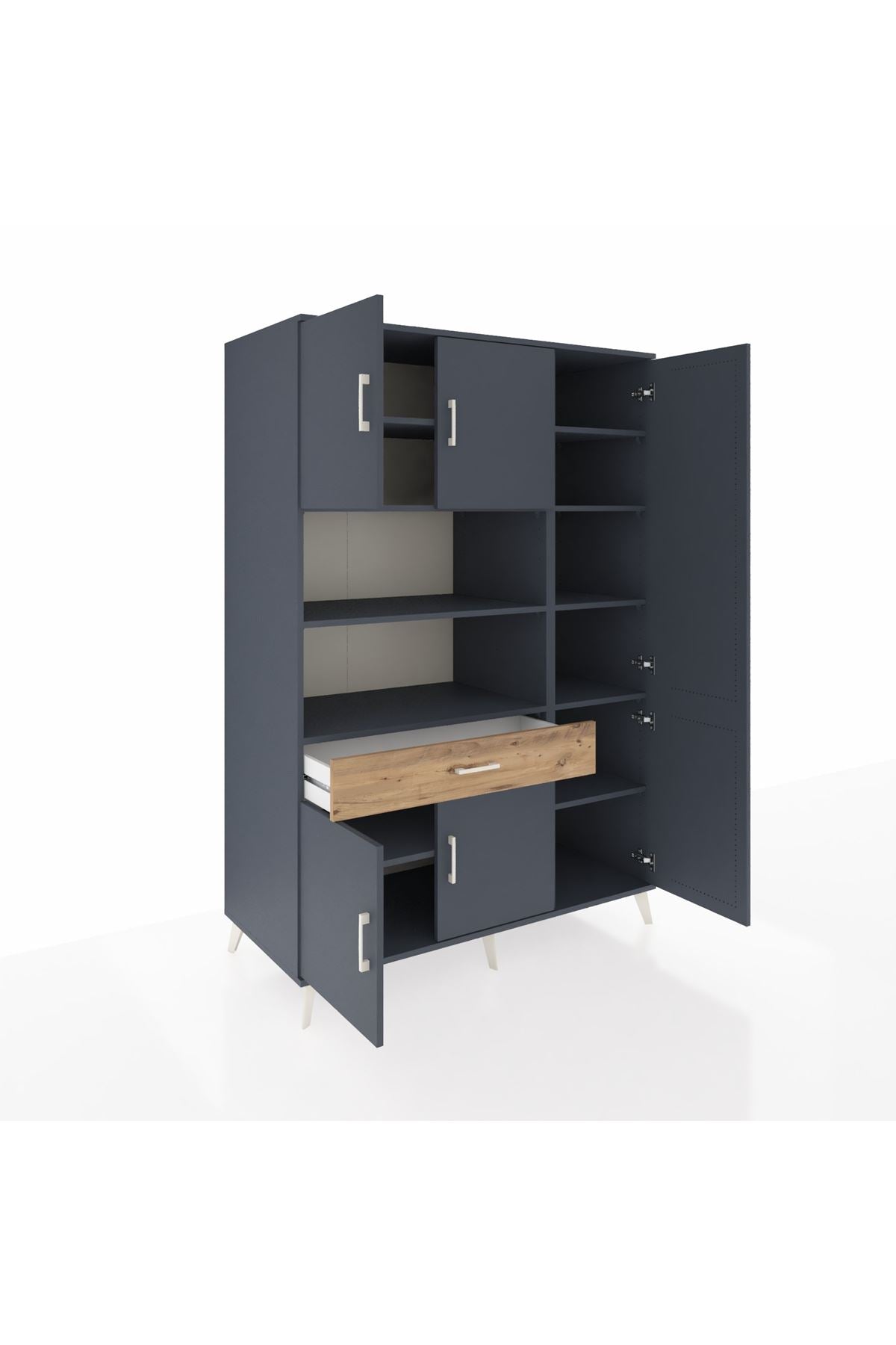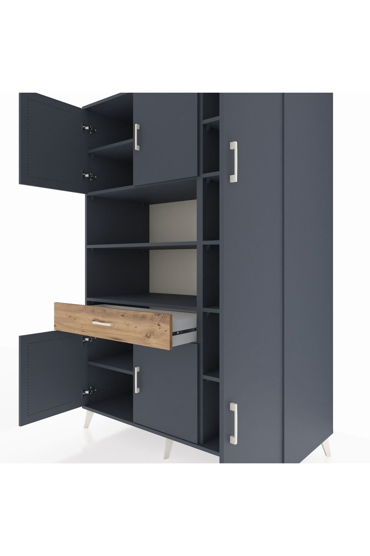 Kronos Dolap 10 Raflı Tek Çekmeceli 6 Kapaklı 132x59x195 Antrasit-Antrasit/Çam