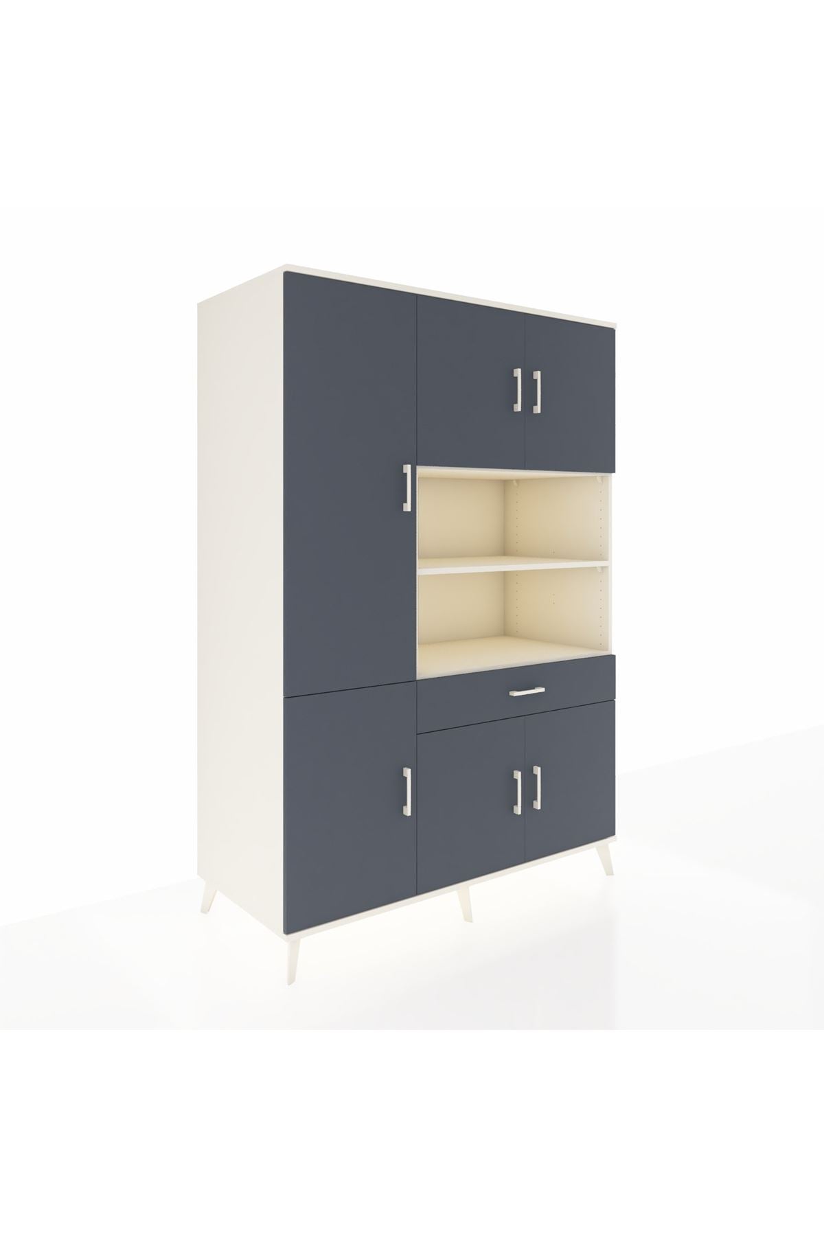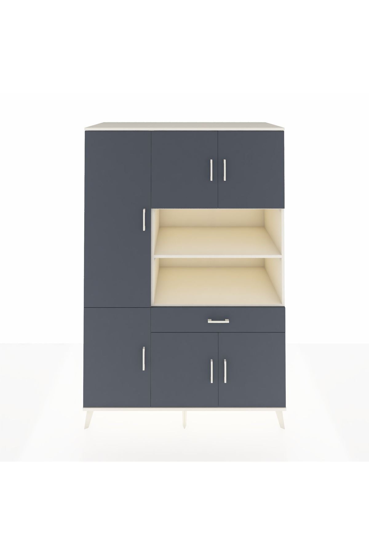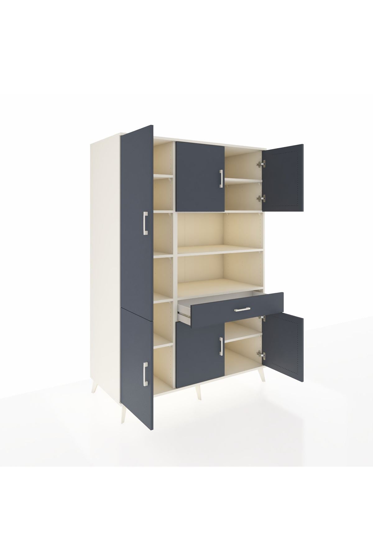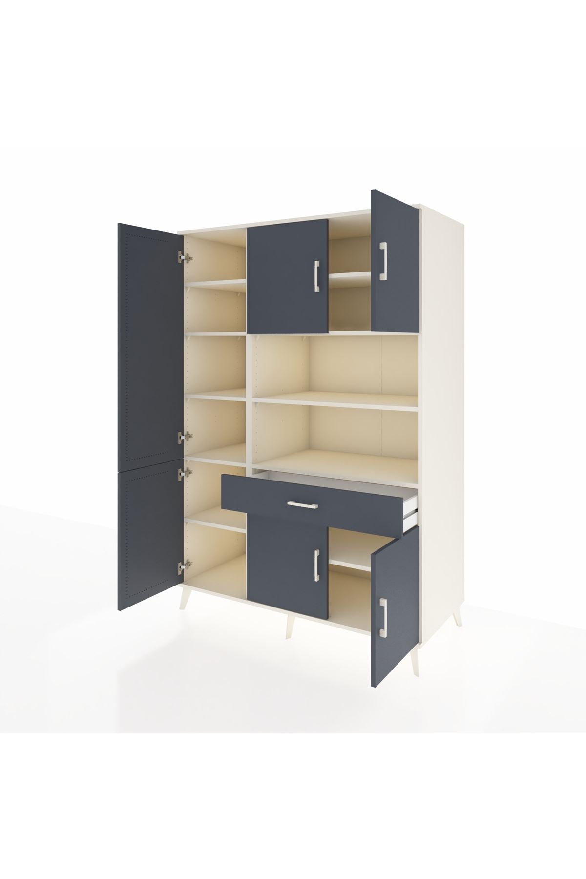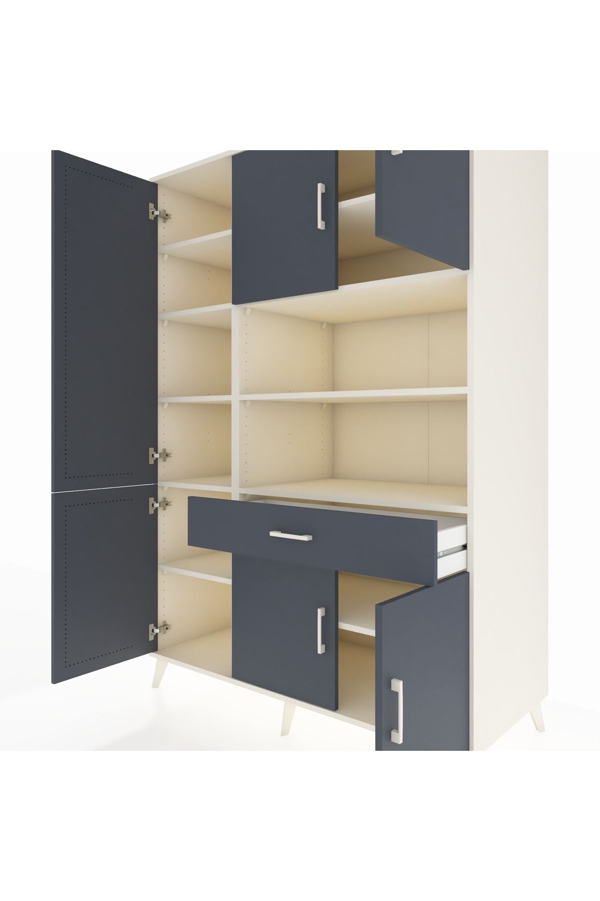 - 🗄️ 6 kapaklı, 10 raflı ve 1 çekmeceli pratik tasarım