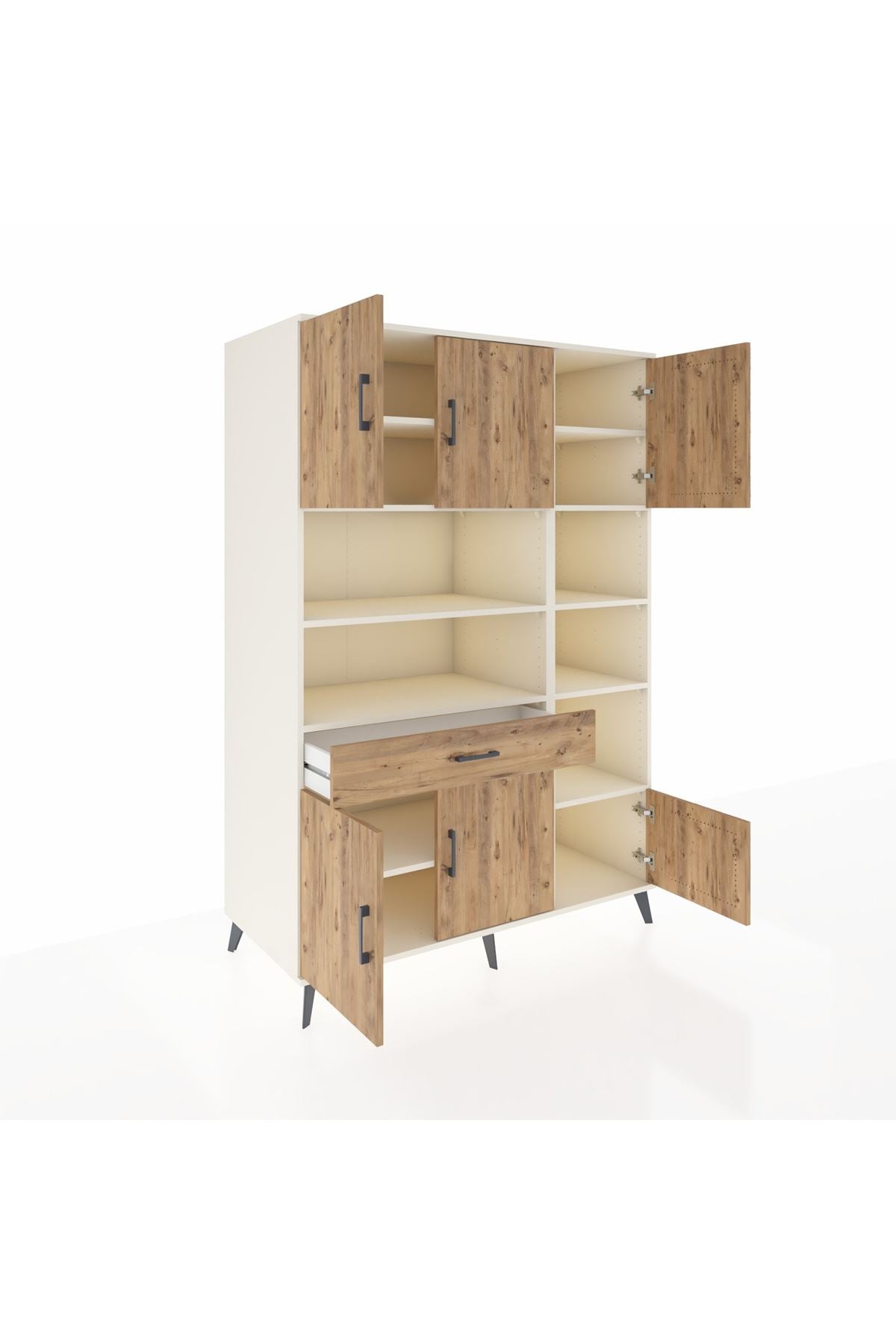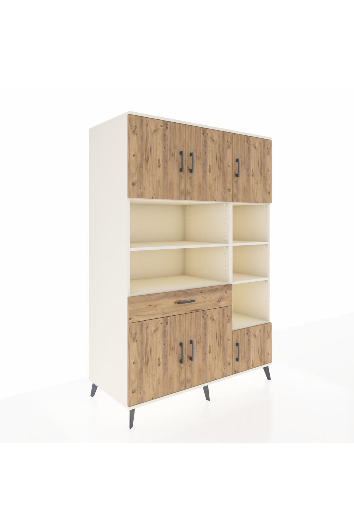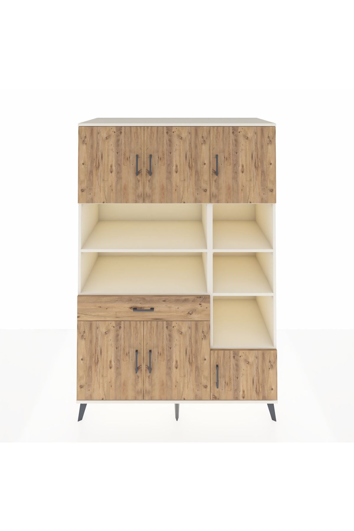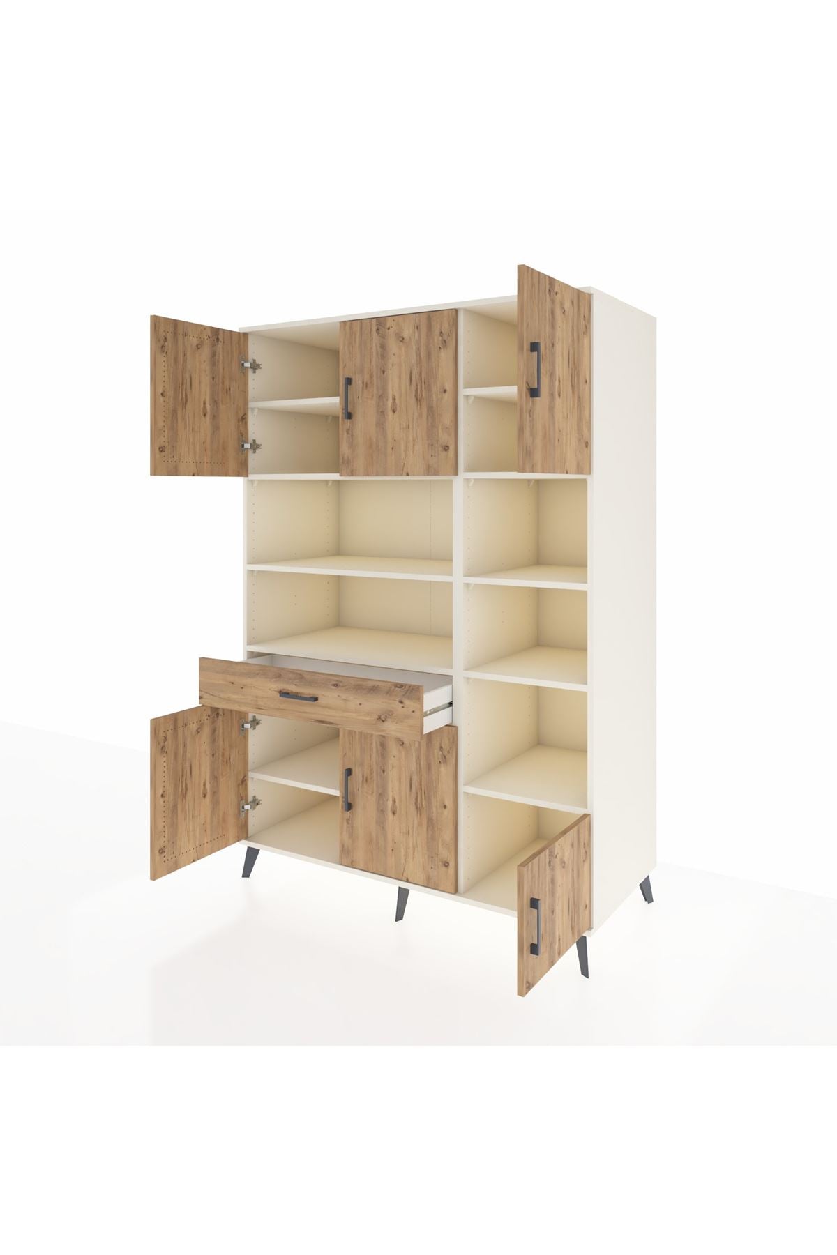 Kronos Dolap 10 Raflı Tek Çekmeceli 6 Kapaklı 132x59x195 Aytaşı-Çam/Çam