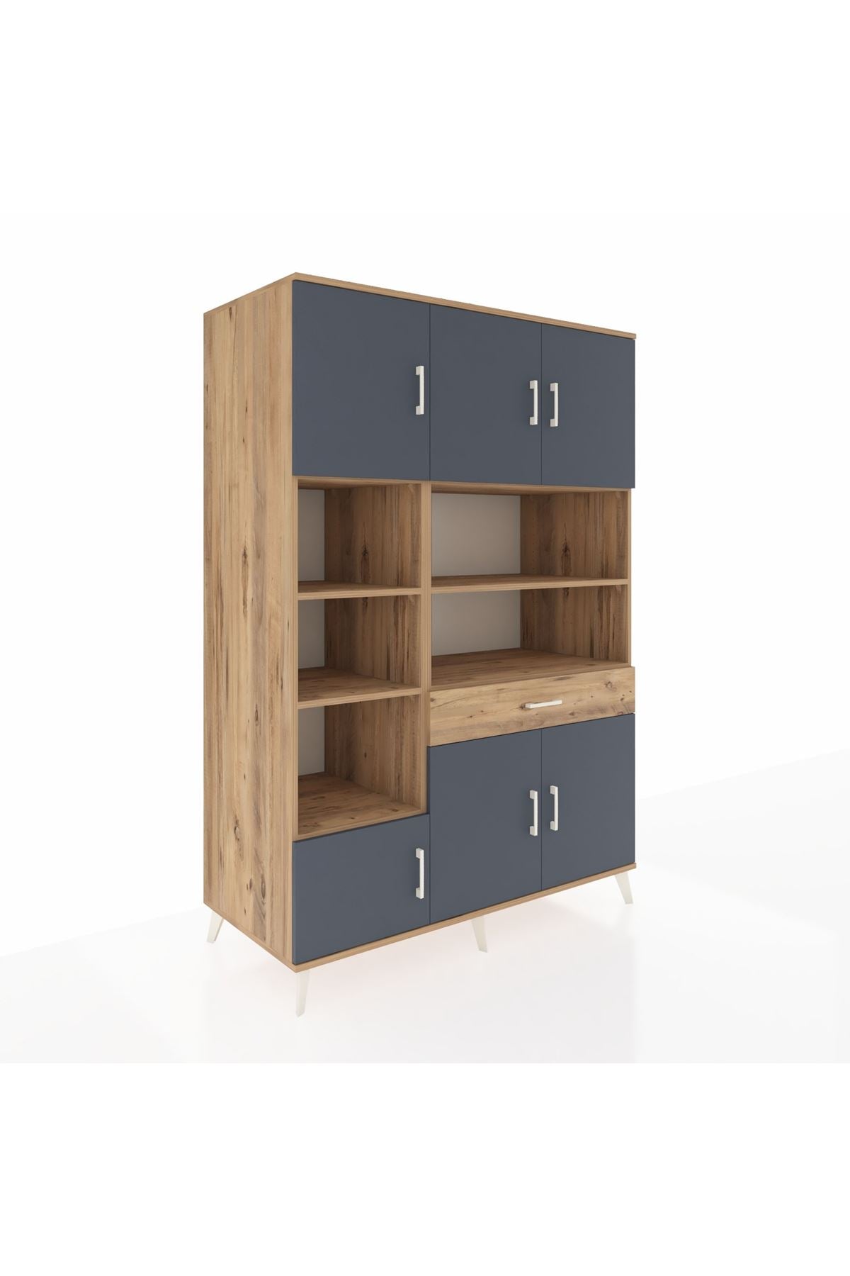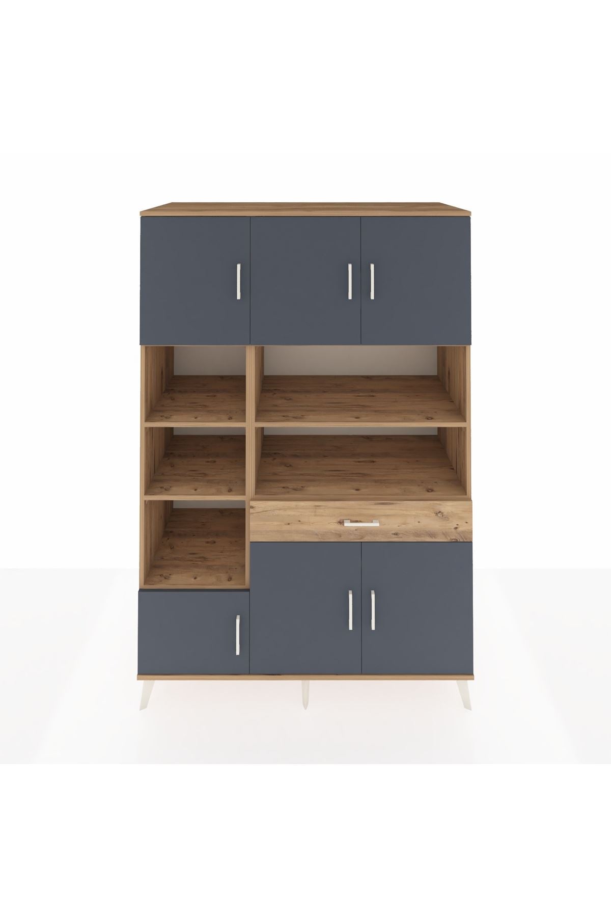 Kronos Dolap 10 Raflı Tek Çekmeceli 6 Kapaklı 132x59x195 Çam-Antrasit/Çam