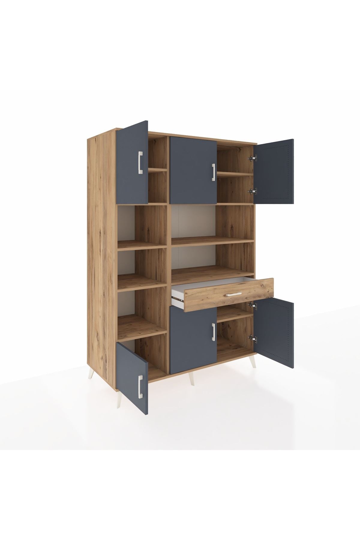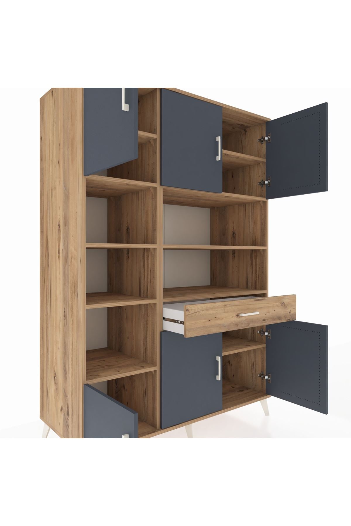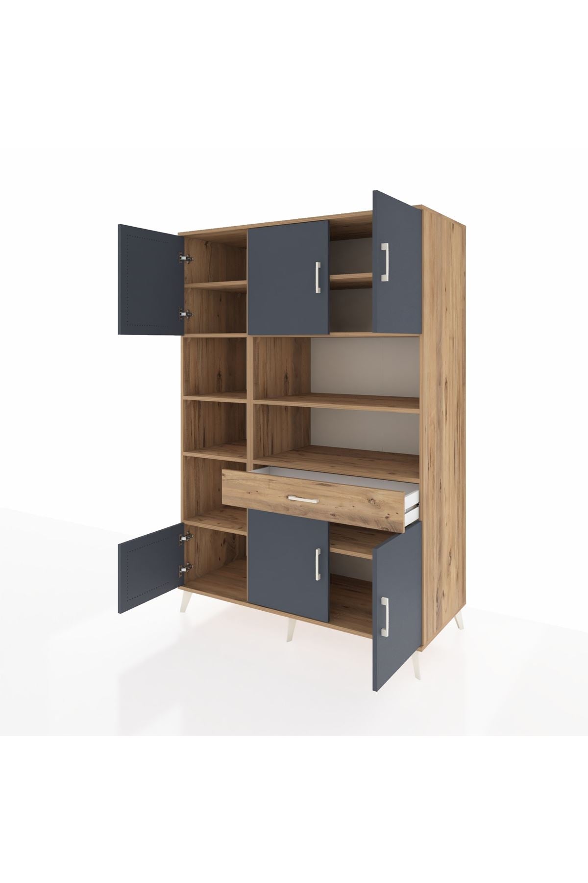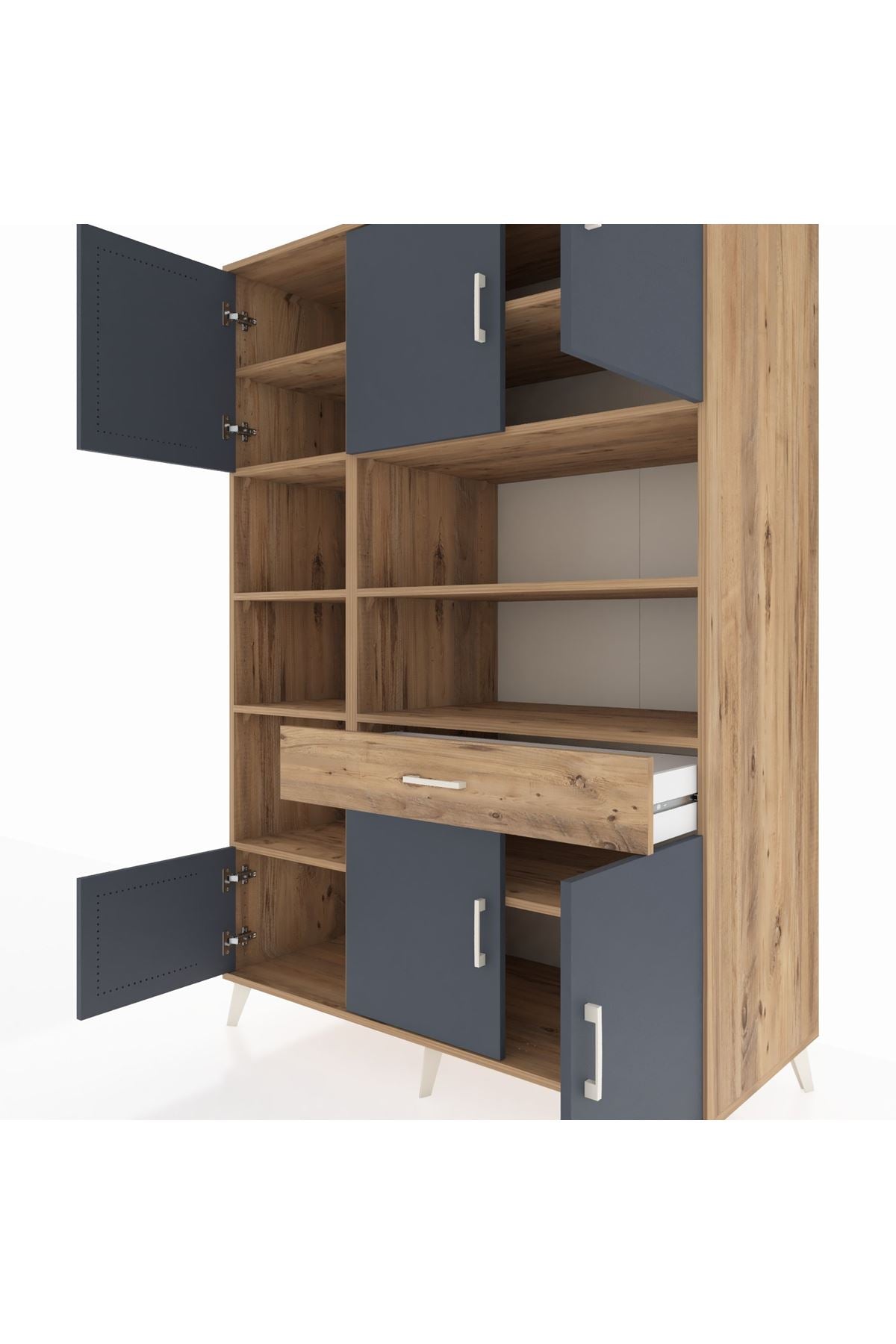 🌟 Kronos Dolap 10 Raflı Tek Çekmeceli 6 Kapaklı 132x59x195 Çam-Antrasit/Çam – Dienni