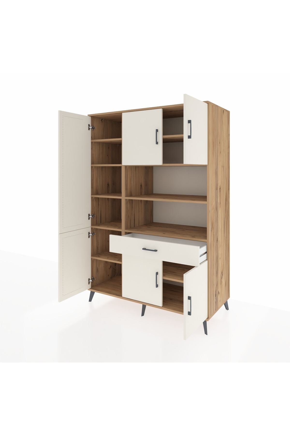 Kronos Dolap 10 Raflı Tek Çekmeceli 6 Kapaklı 132x59x195 Çam-Aytaşı/Aytaşı