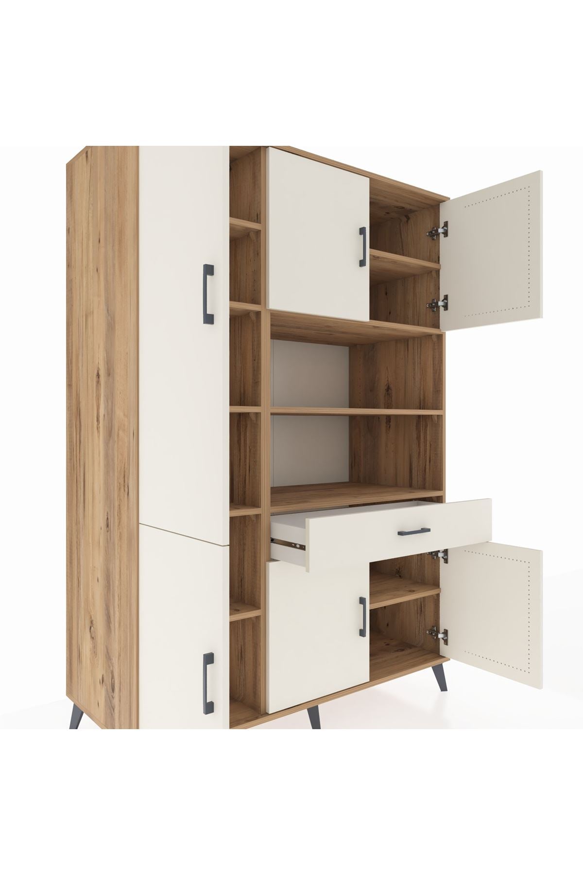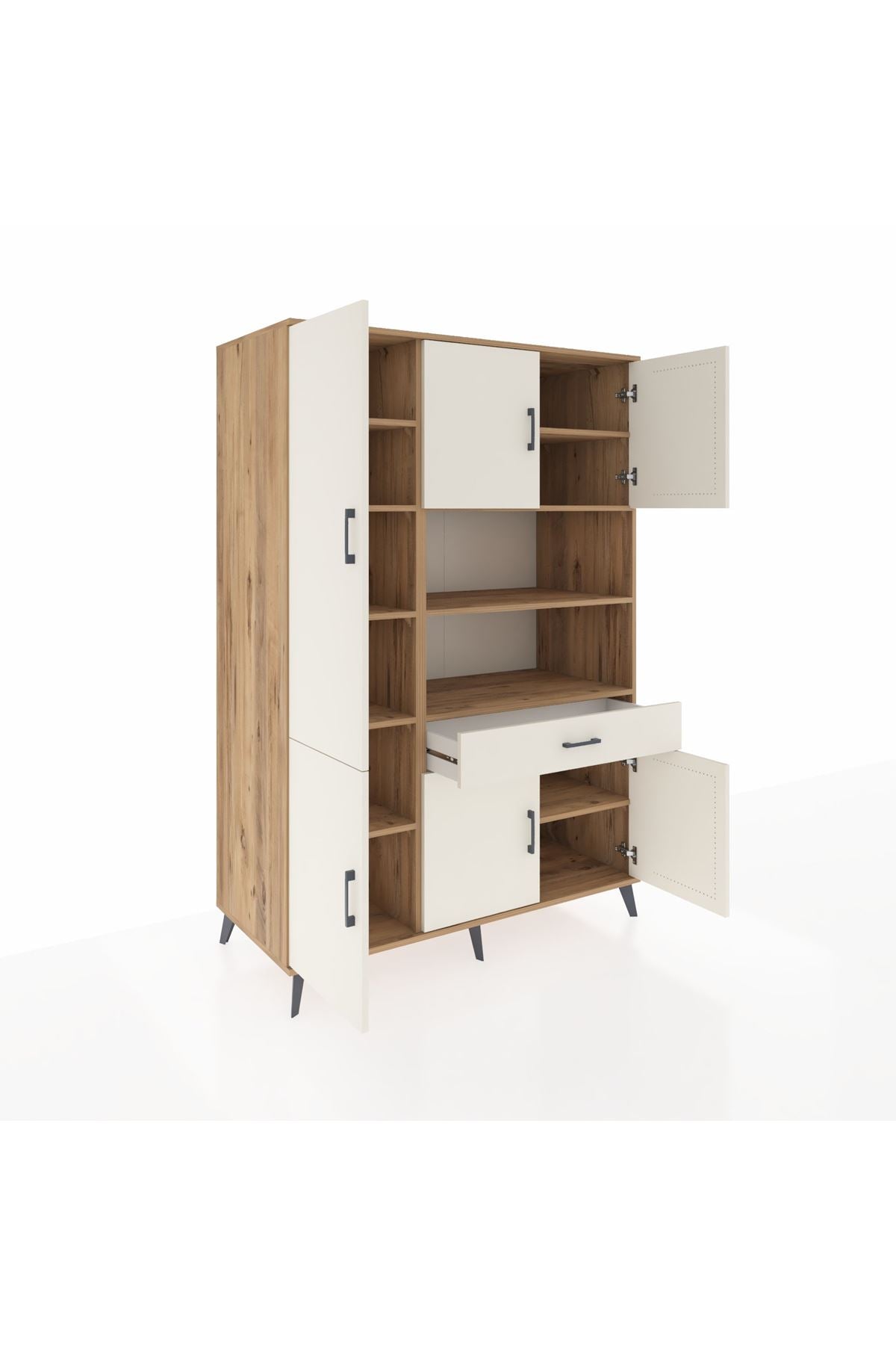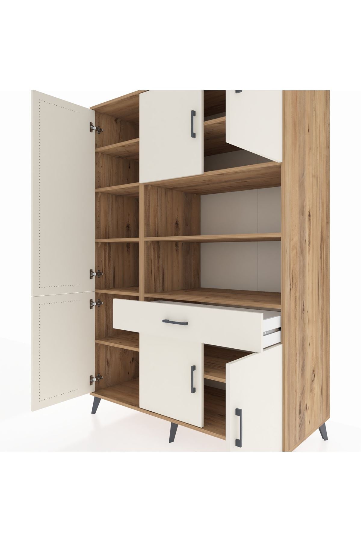 - 🗄️ 10 raflı, 6 kapaklı, 1 çekmeceli