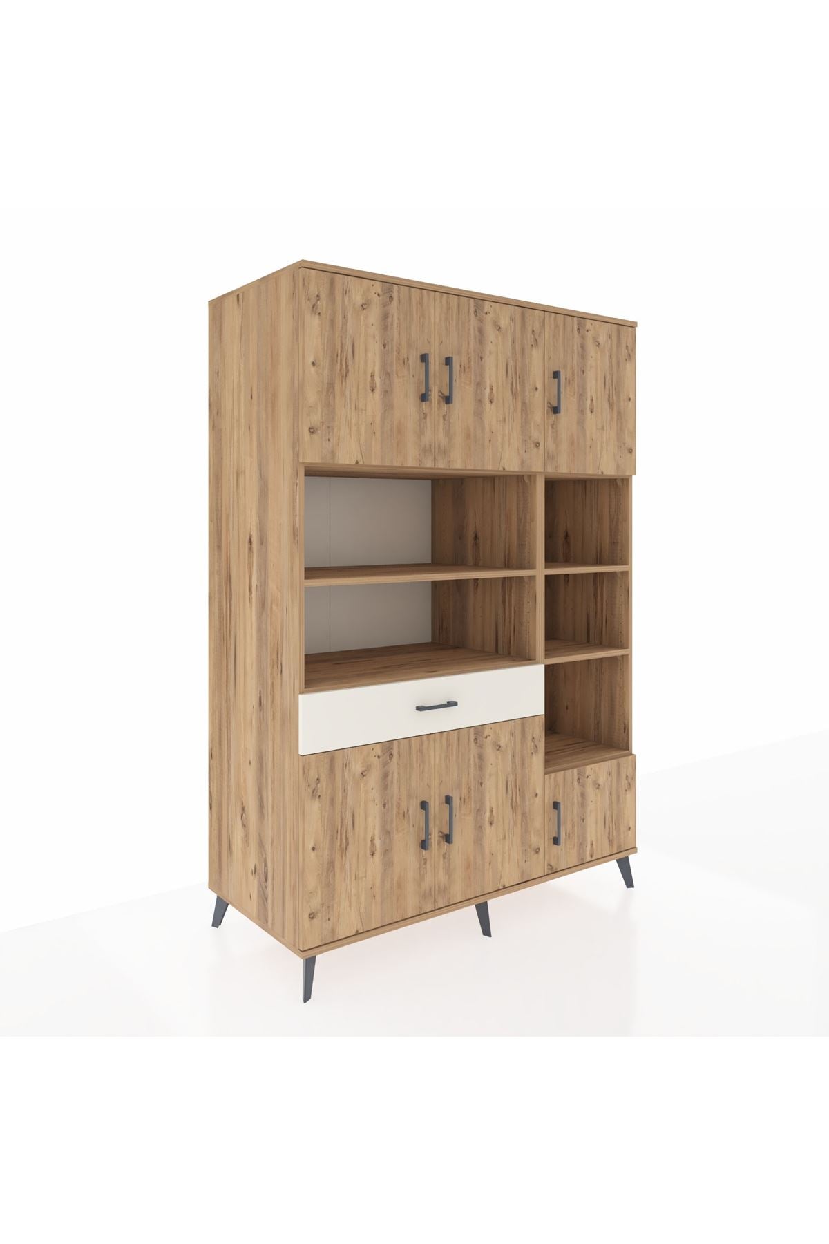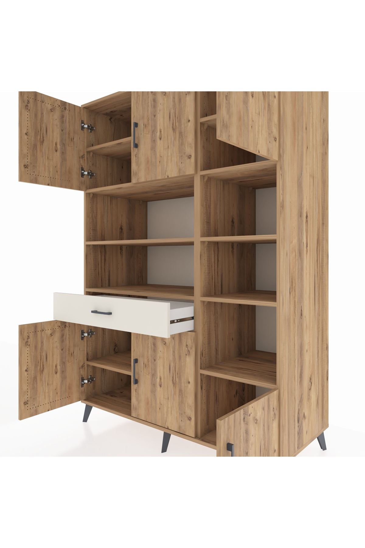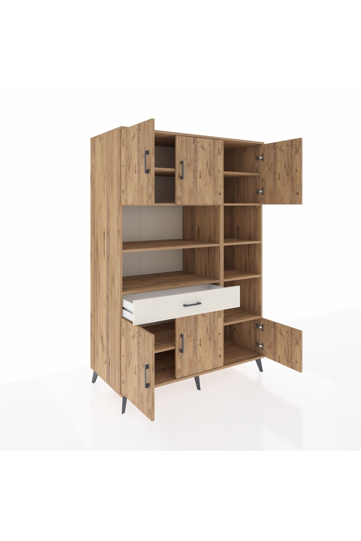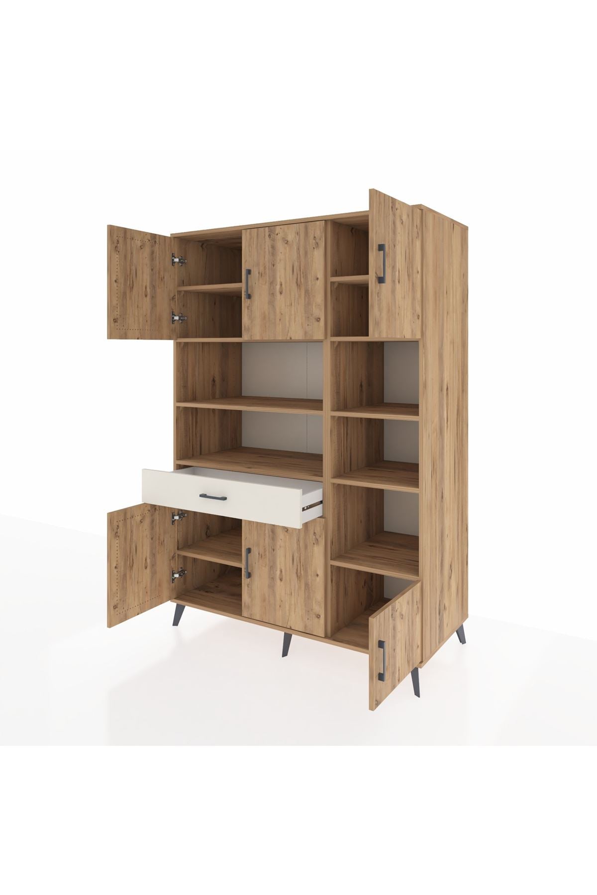 Kronos Dolap 10 Raflı Tek Çekmeceli 6 Kapaklı 132x59x195 Çam-Çam/Aytaşı