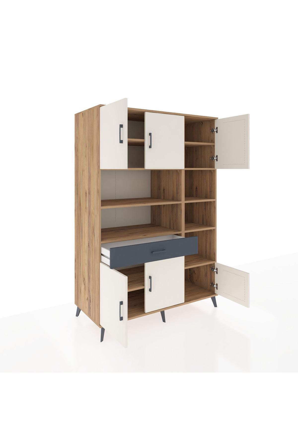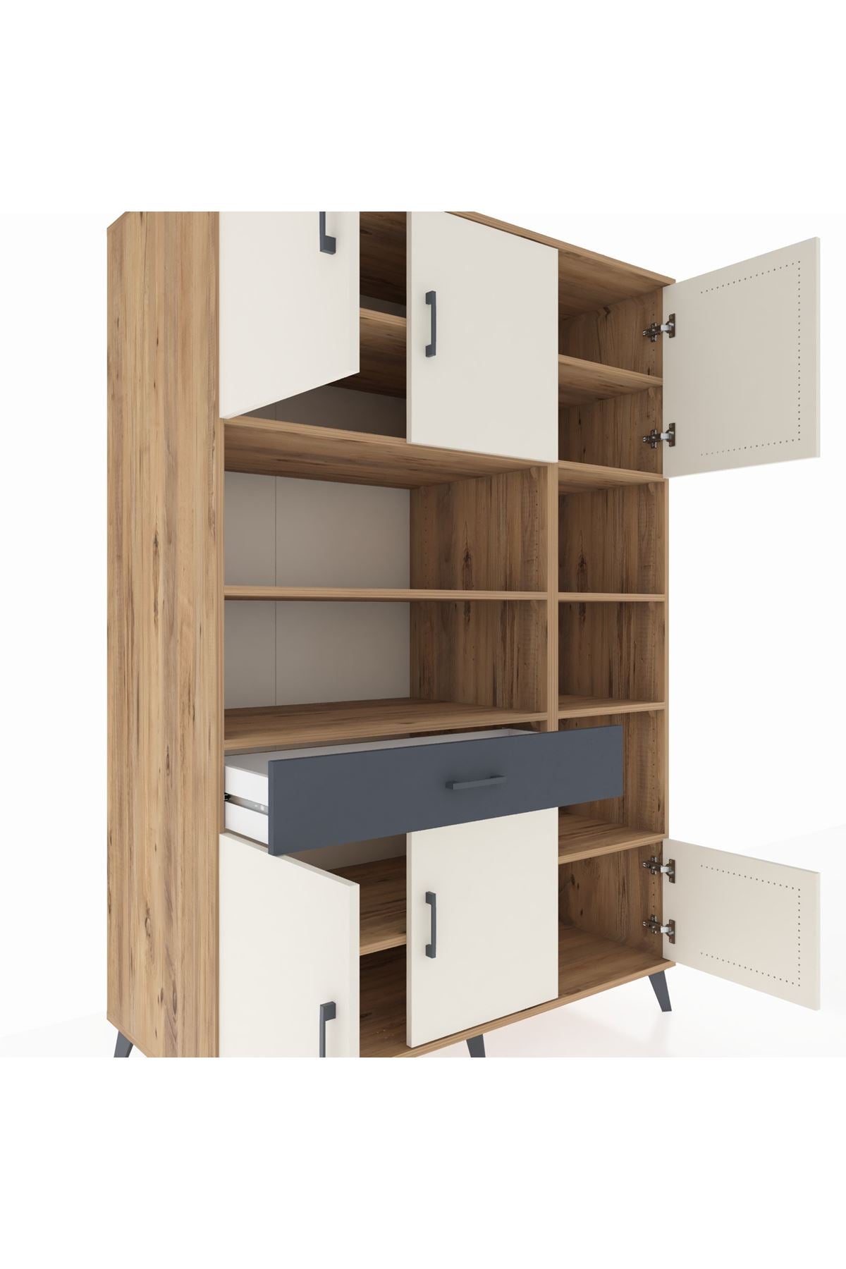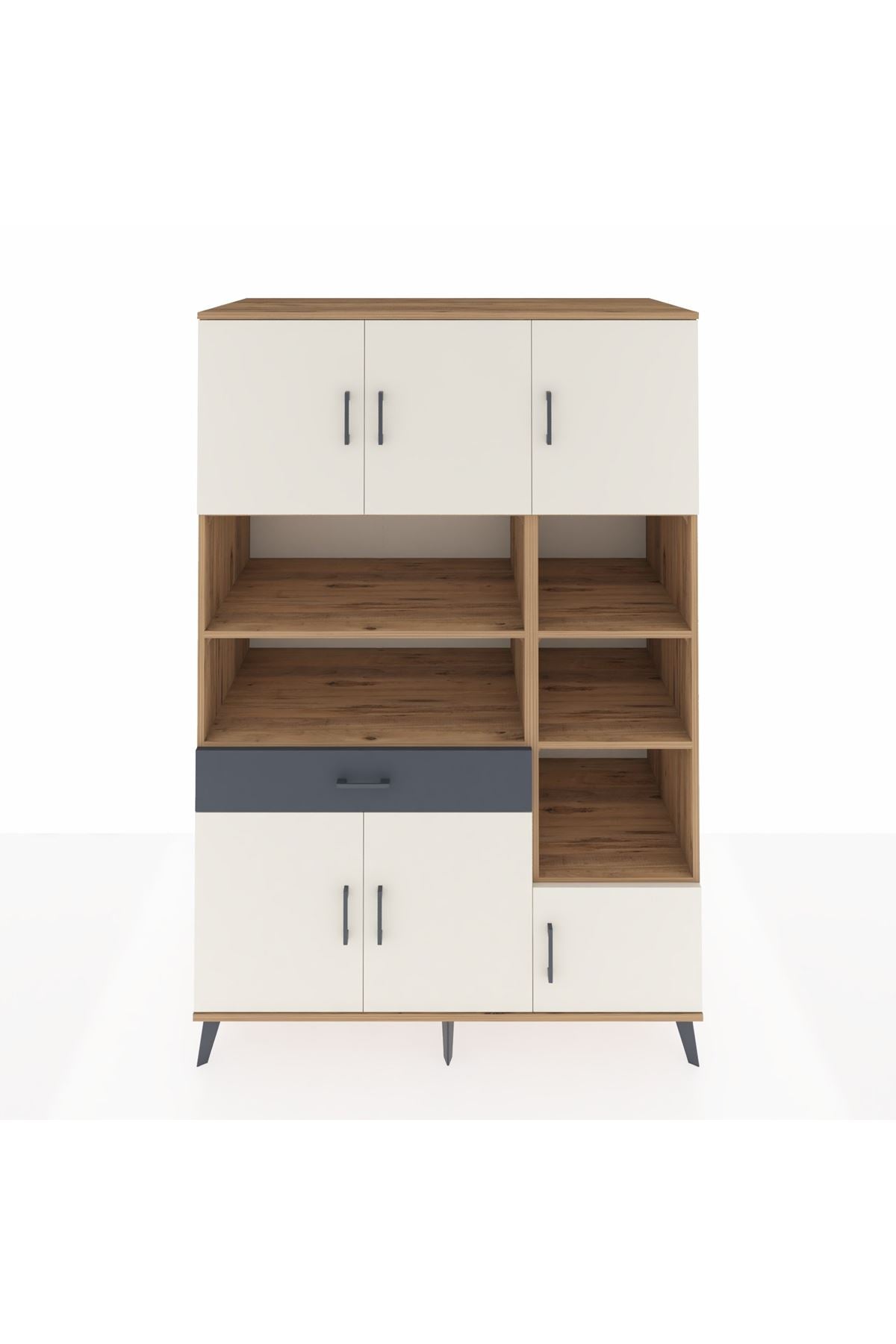 Kronos Dolap 10 Raflı Tek Çekmeceli 6 Kapaklı 132x59x195 Çam-Aytaşı/Antrasit