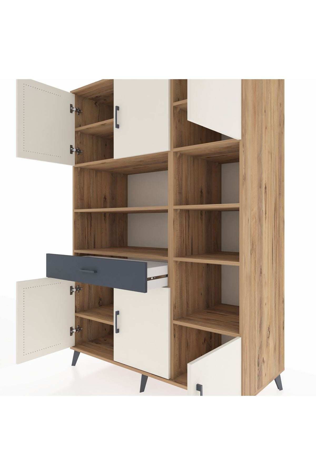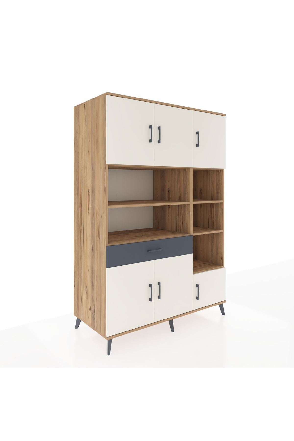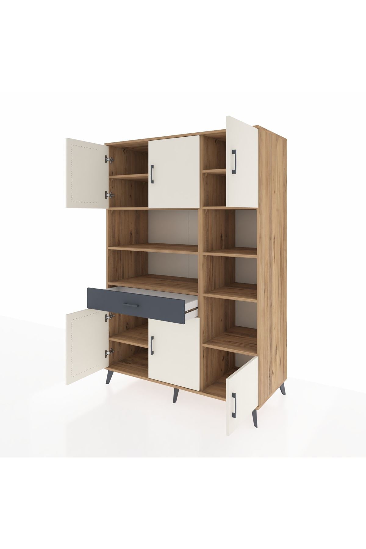 Kronos Dolap 10 Raflı Tek Çekmeceli 6 Kapaklı 132x59x195 Çam-Aytaşı/Antrasit