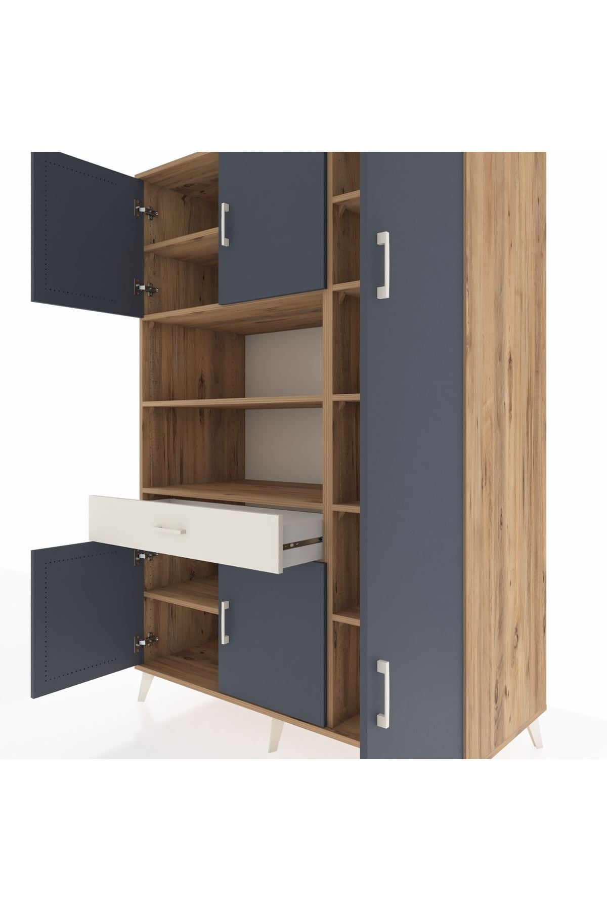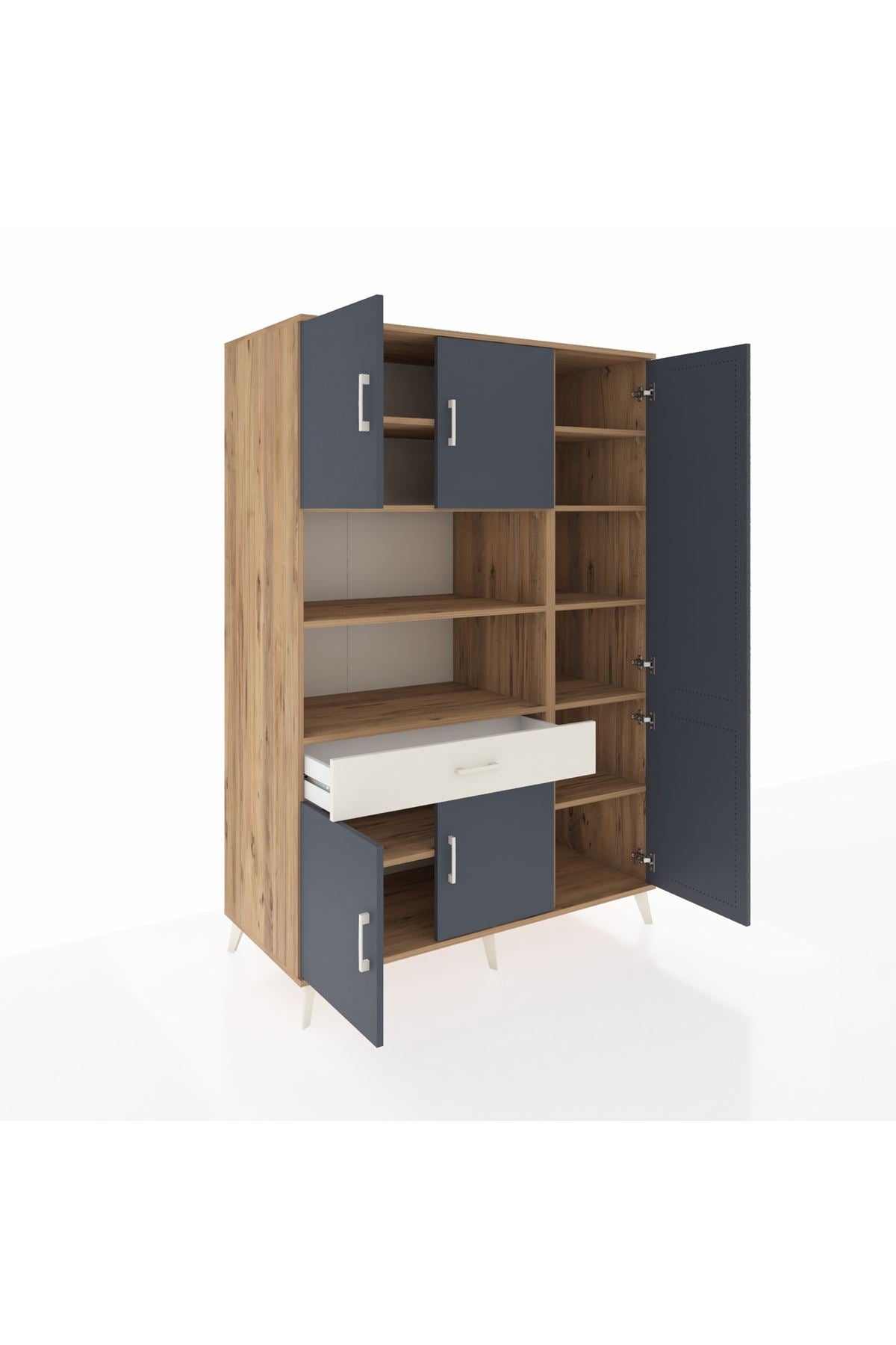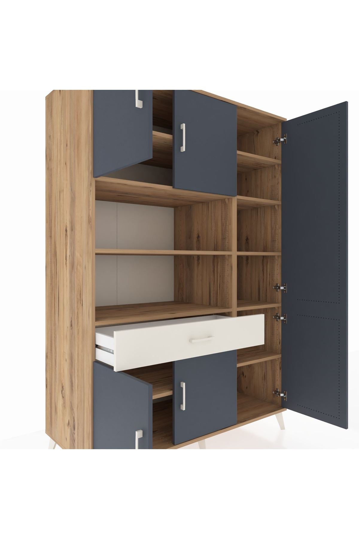 Kronos Dolap 10 Raflı Tek Çekmeceli 6 Kapaklı 132x59x195 Çam-Antrasit/Aytaşı