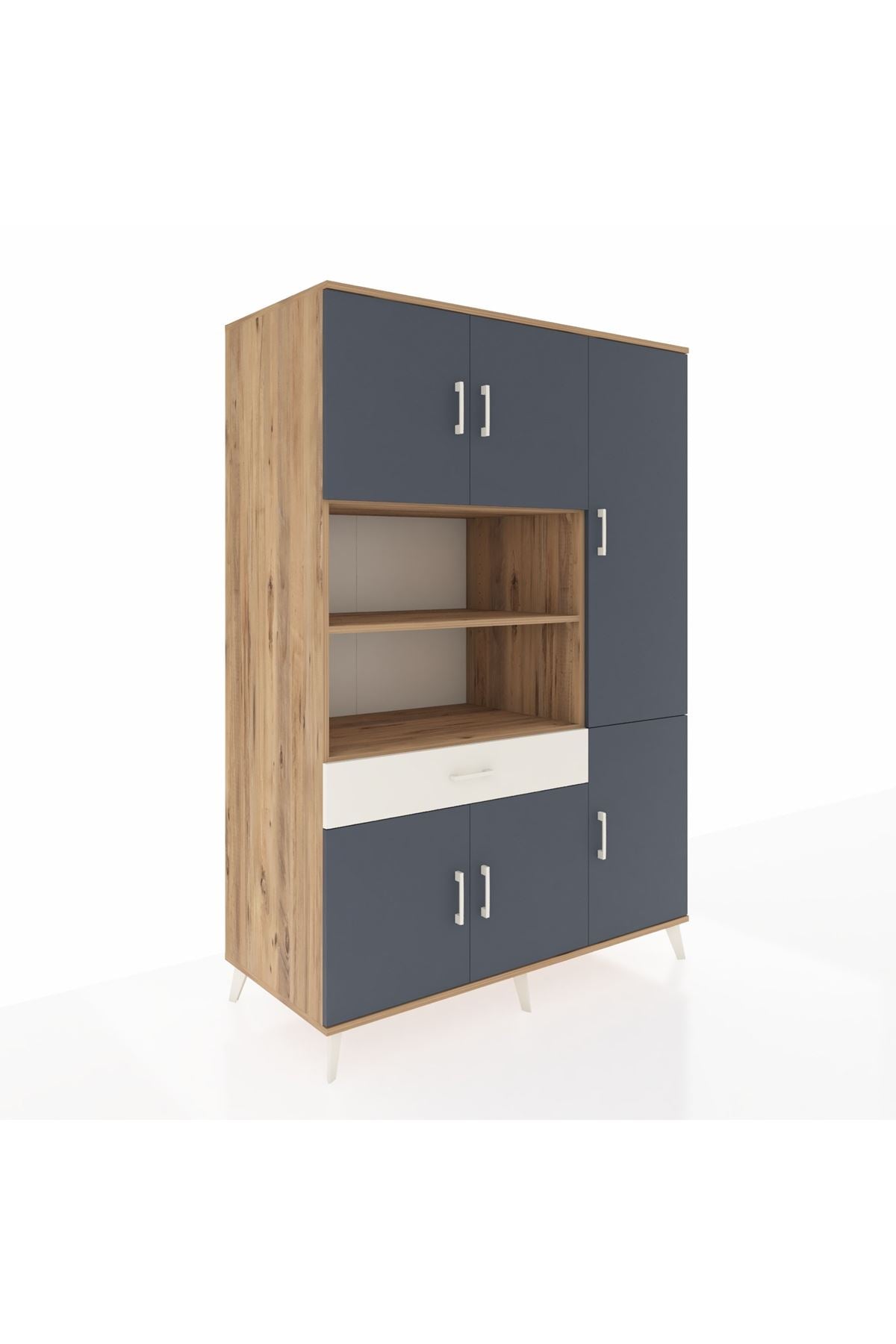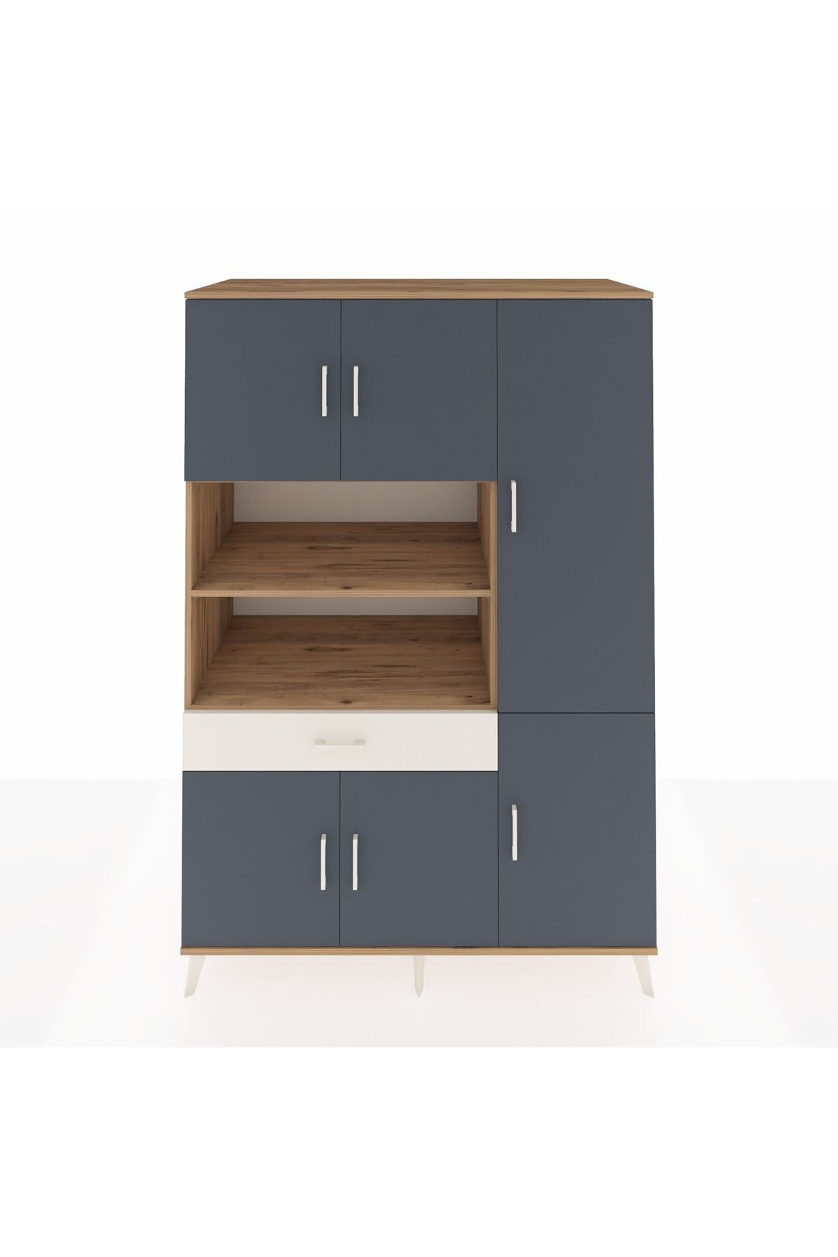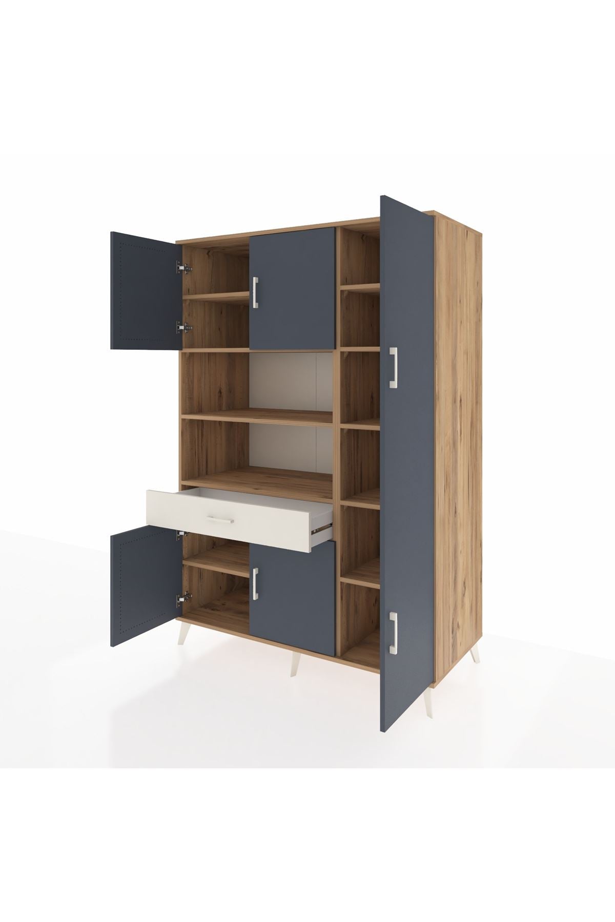 Kronos Dolap 10 Raflı Tek Çekmeceli 6 Kapaklı 132x59x195 Çam-Antrasit/Aytaşı