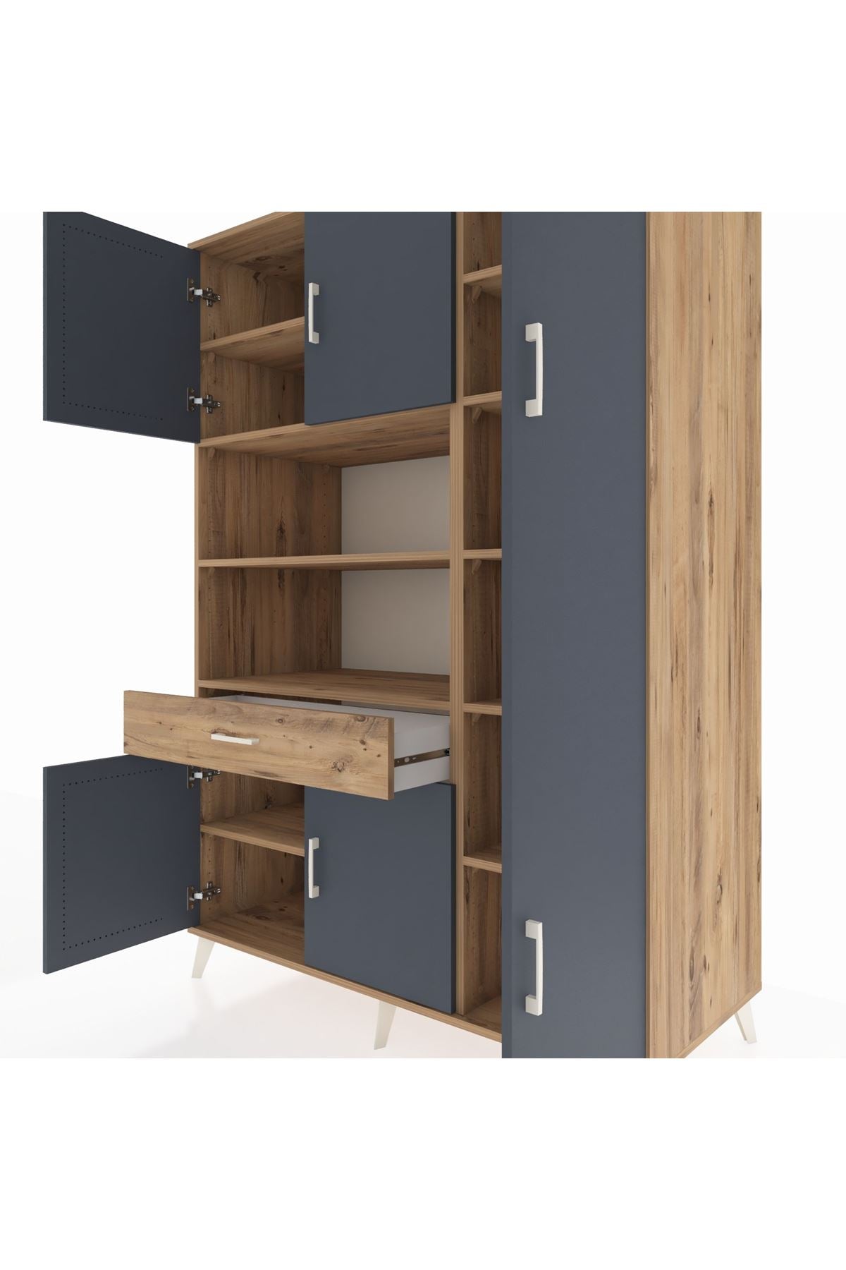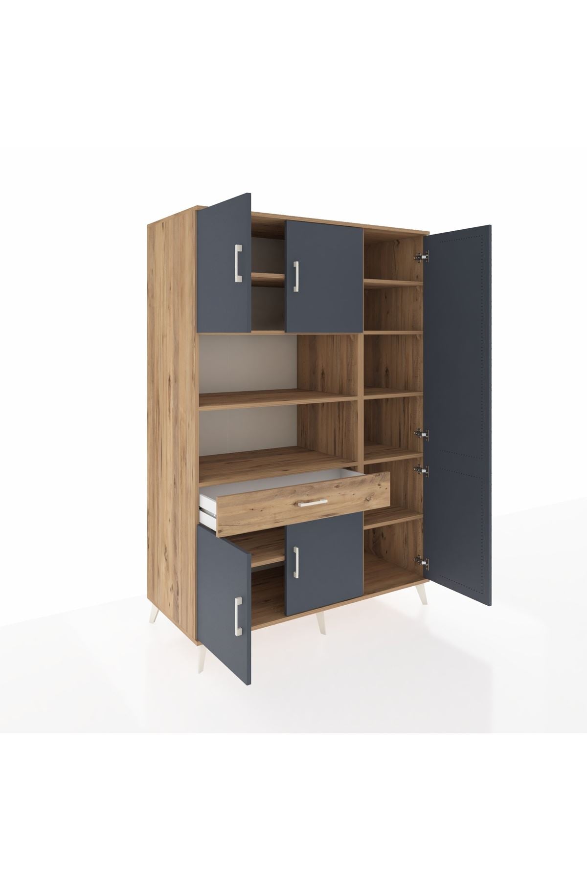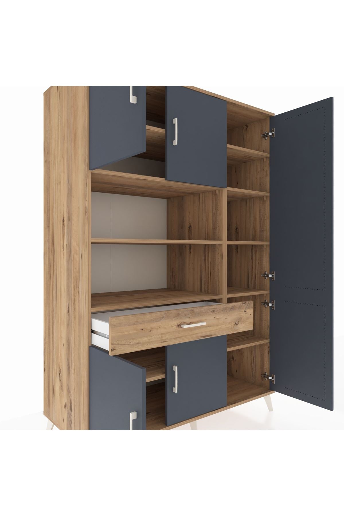 Kronos Dolap 10 Raflı Tek Çekmeceli 6 Kapaklı 132x59x195 Çam-Antrasit/Çam