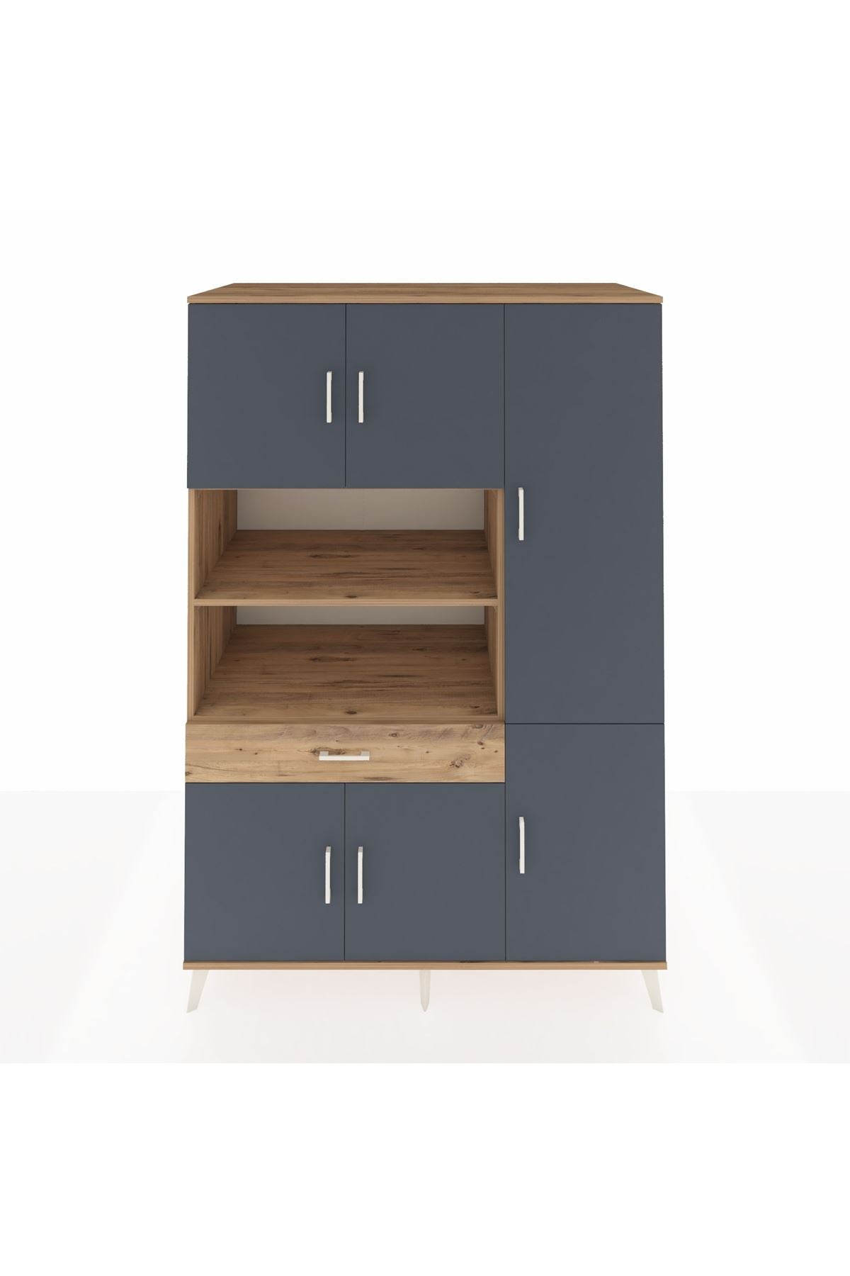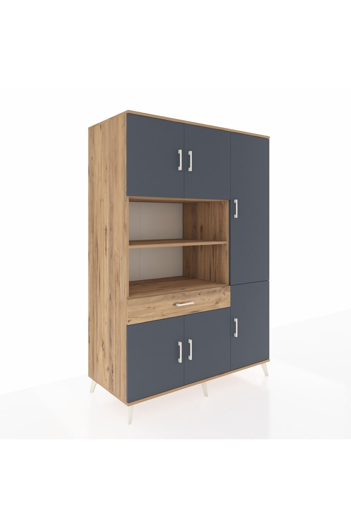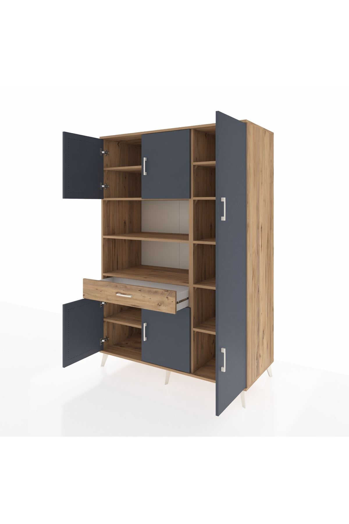 Kronos Dolap 10 Raflı Tek Çekmeceli 6 Kapaklı 132x59x195 Çam-Antrasit/Çam