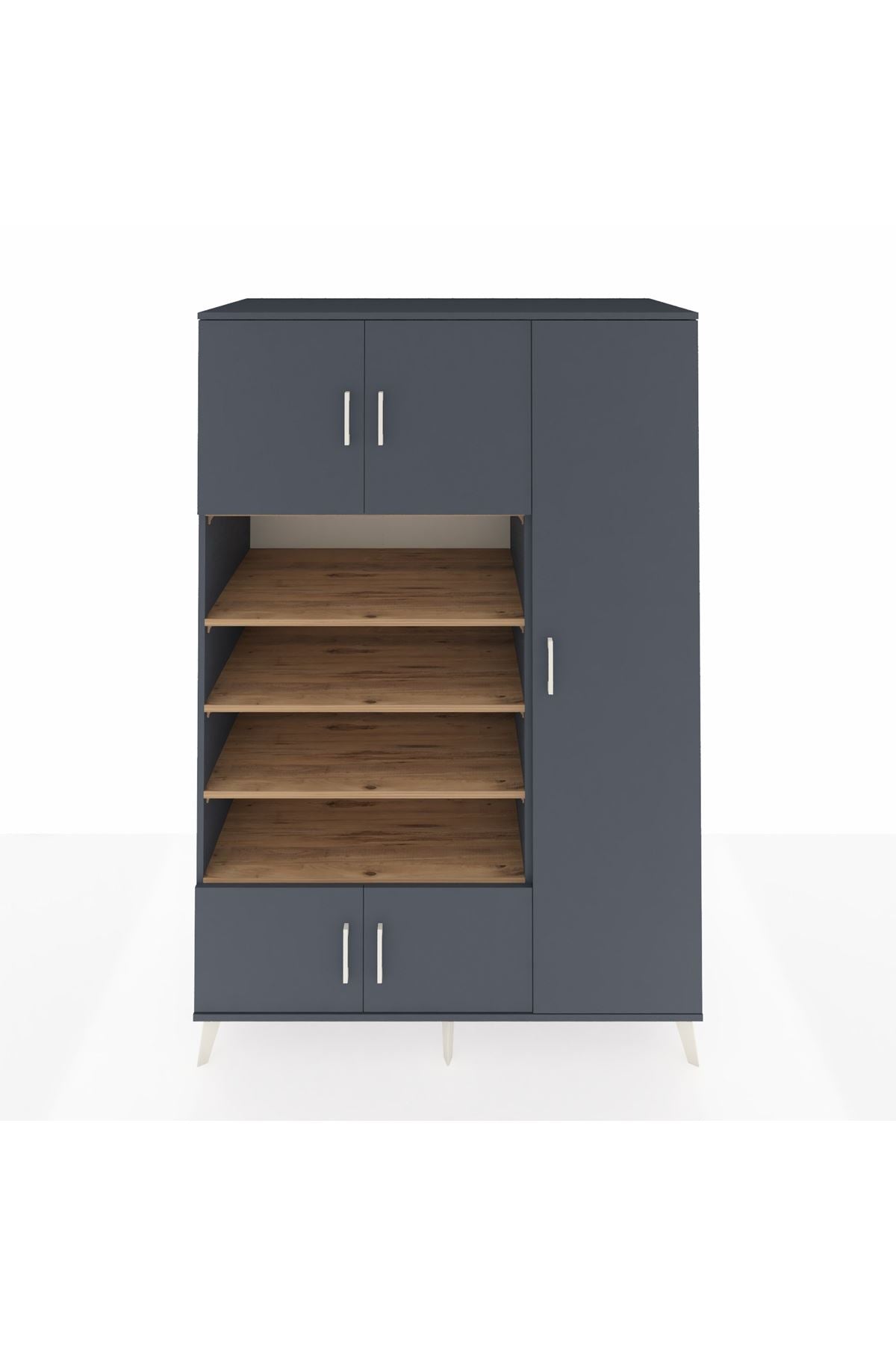 Kronos Dolap 11 Raflı 5 Kapaklı 132x59x195 Antrasit-Antrasit/Çam
