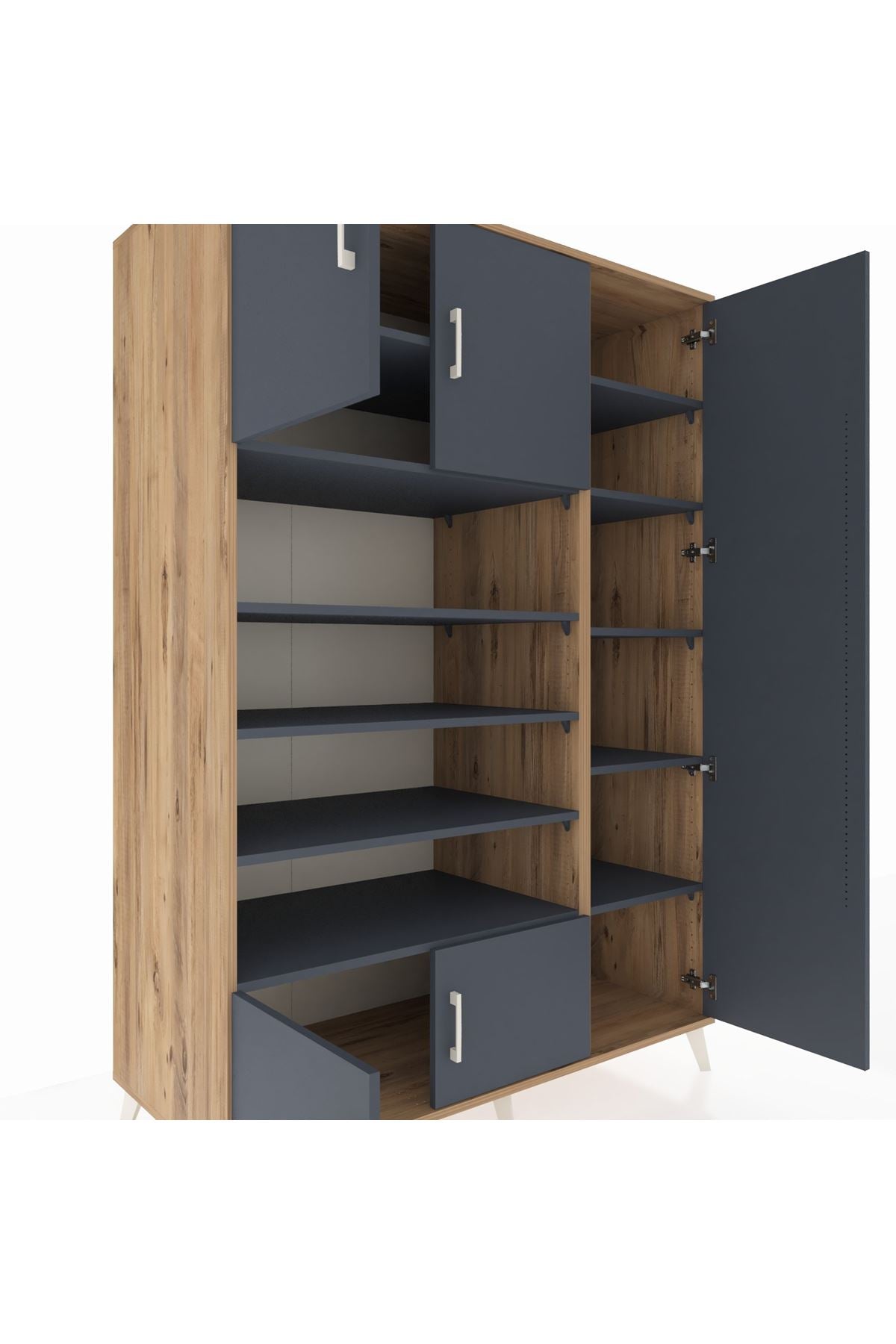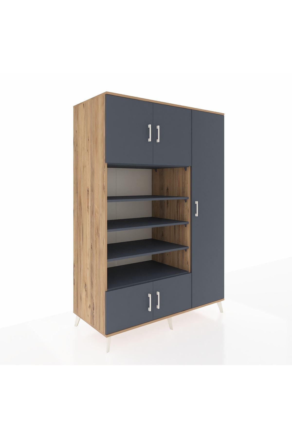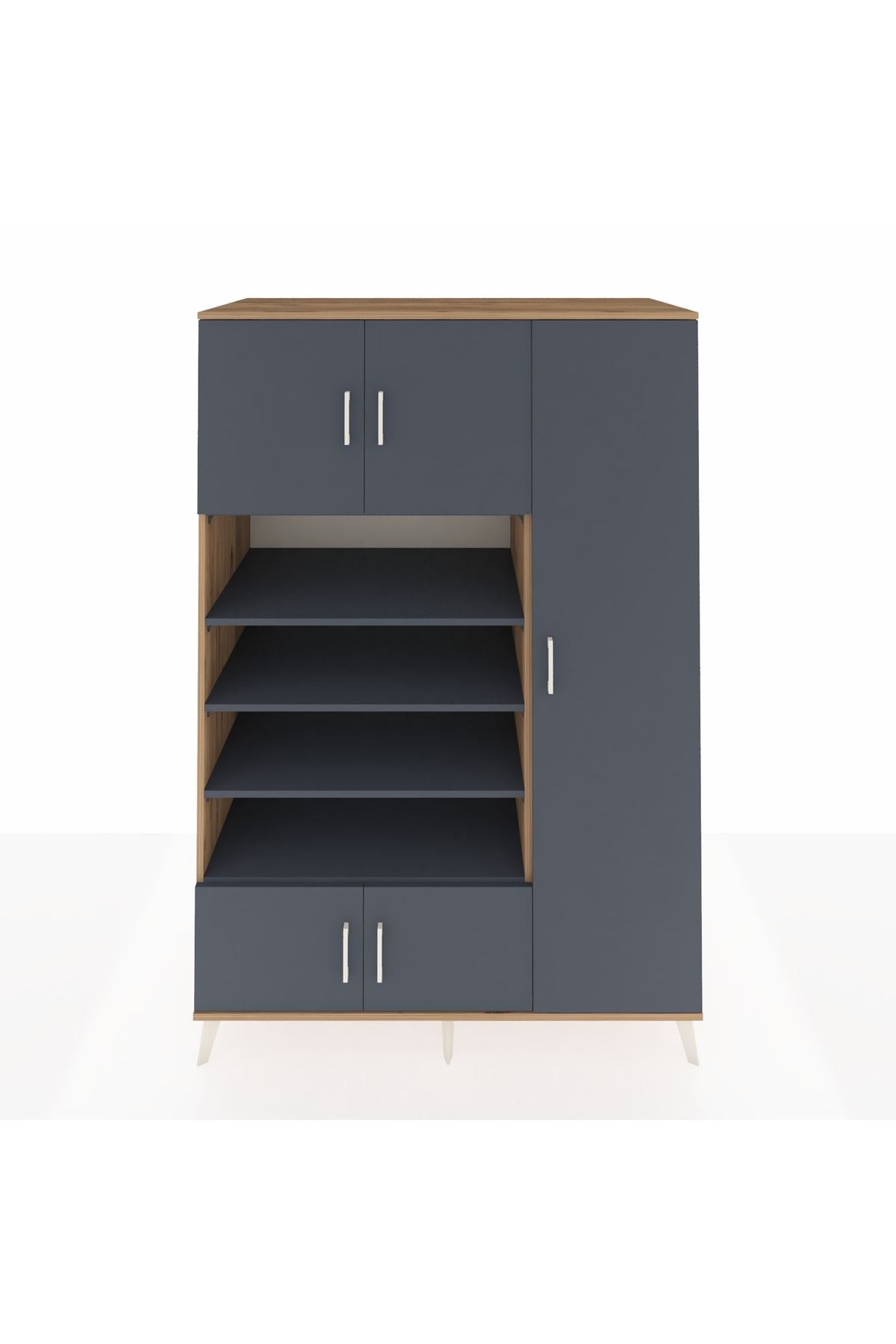 Kronos Dolap 11 Raflı 5 Kapaklı 132x59x195 Çam-Antrasit/Antrasit