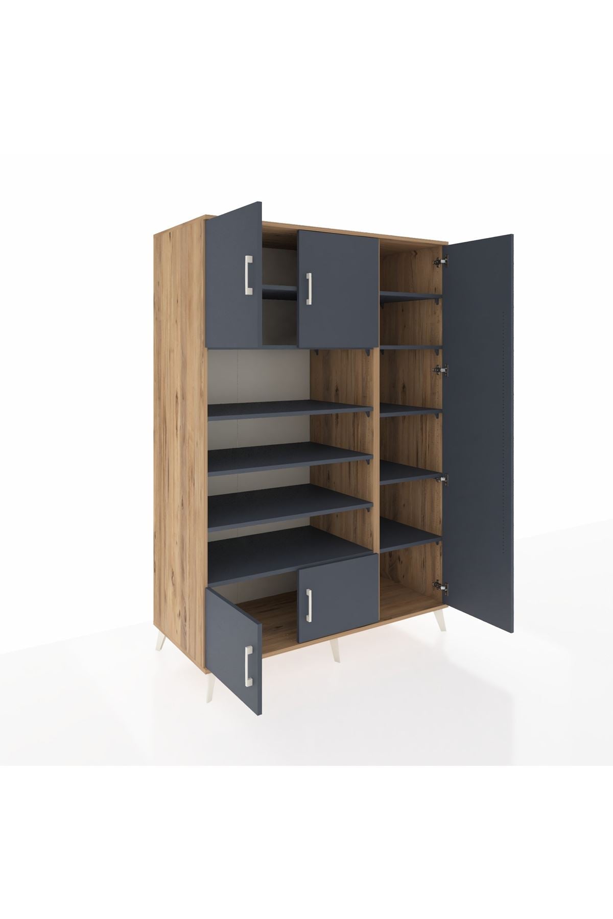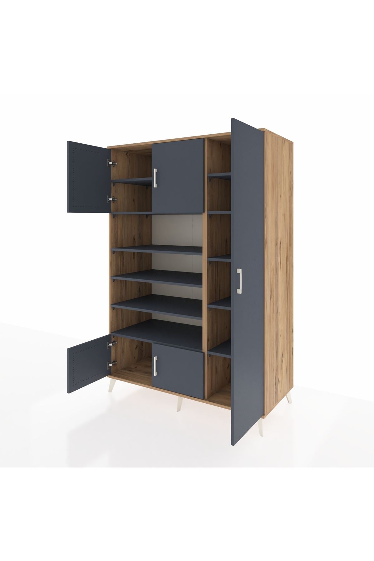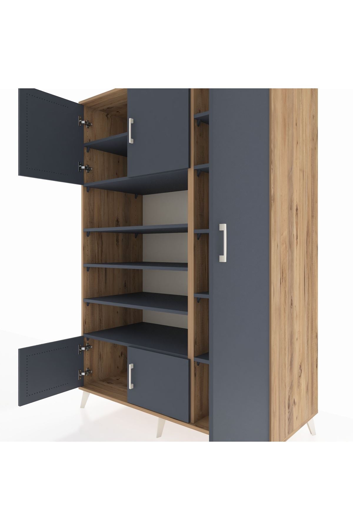 Kronos Dolap 11 Raflı 5 Kapaklı 132x59x195 Çam-Antrasit/Antrasit