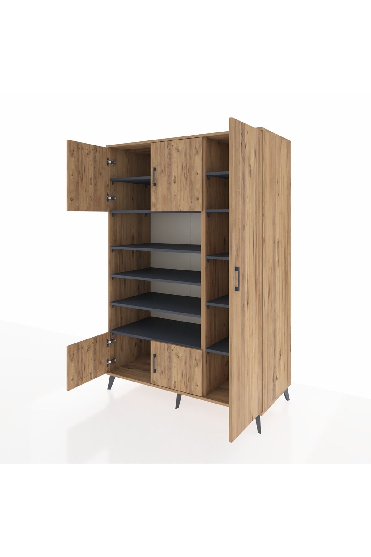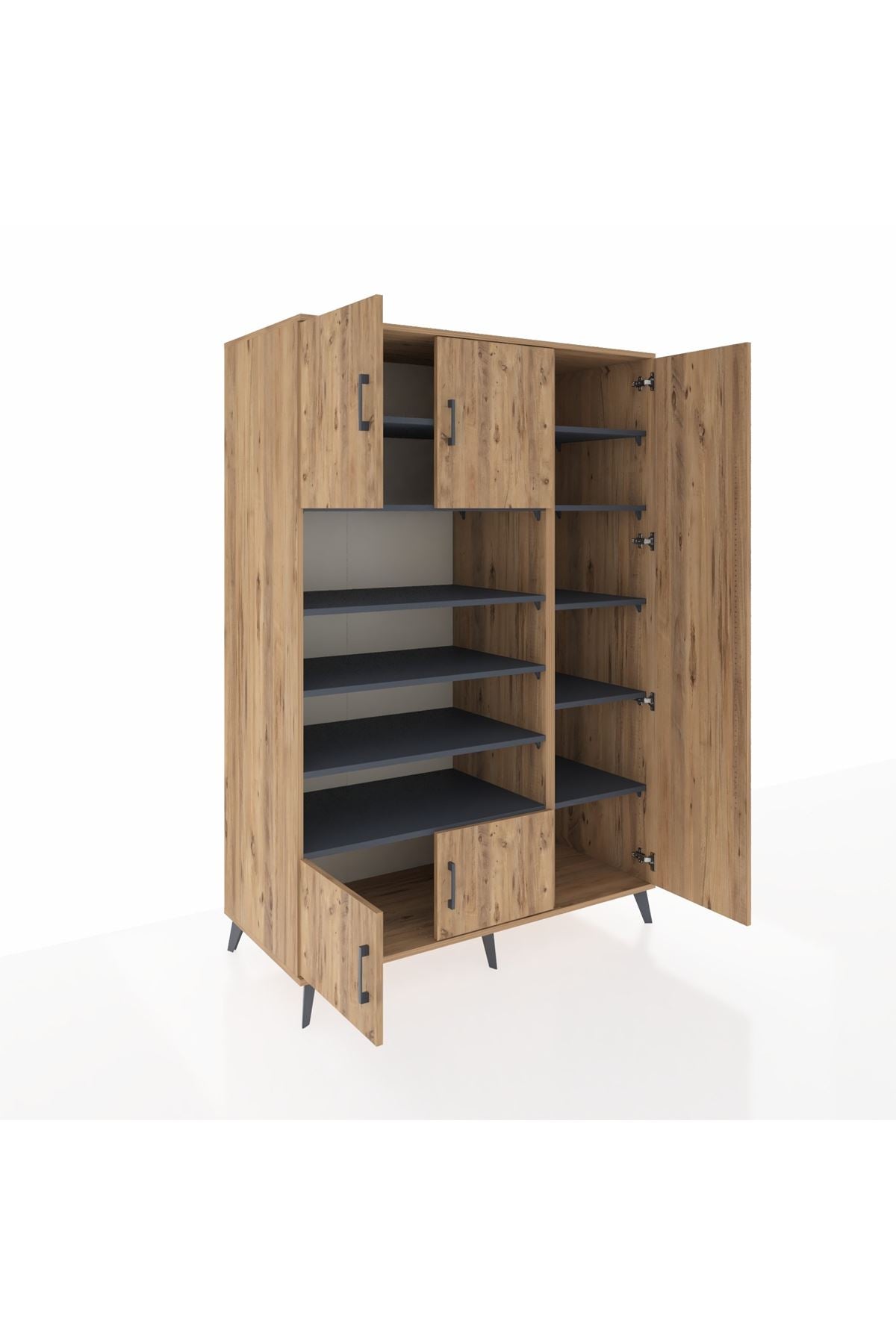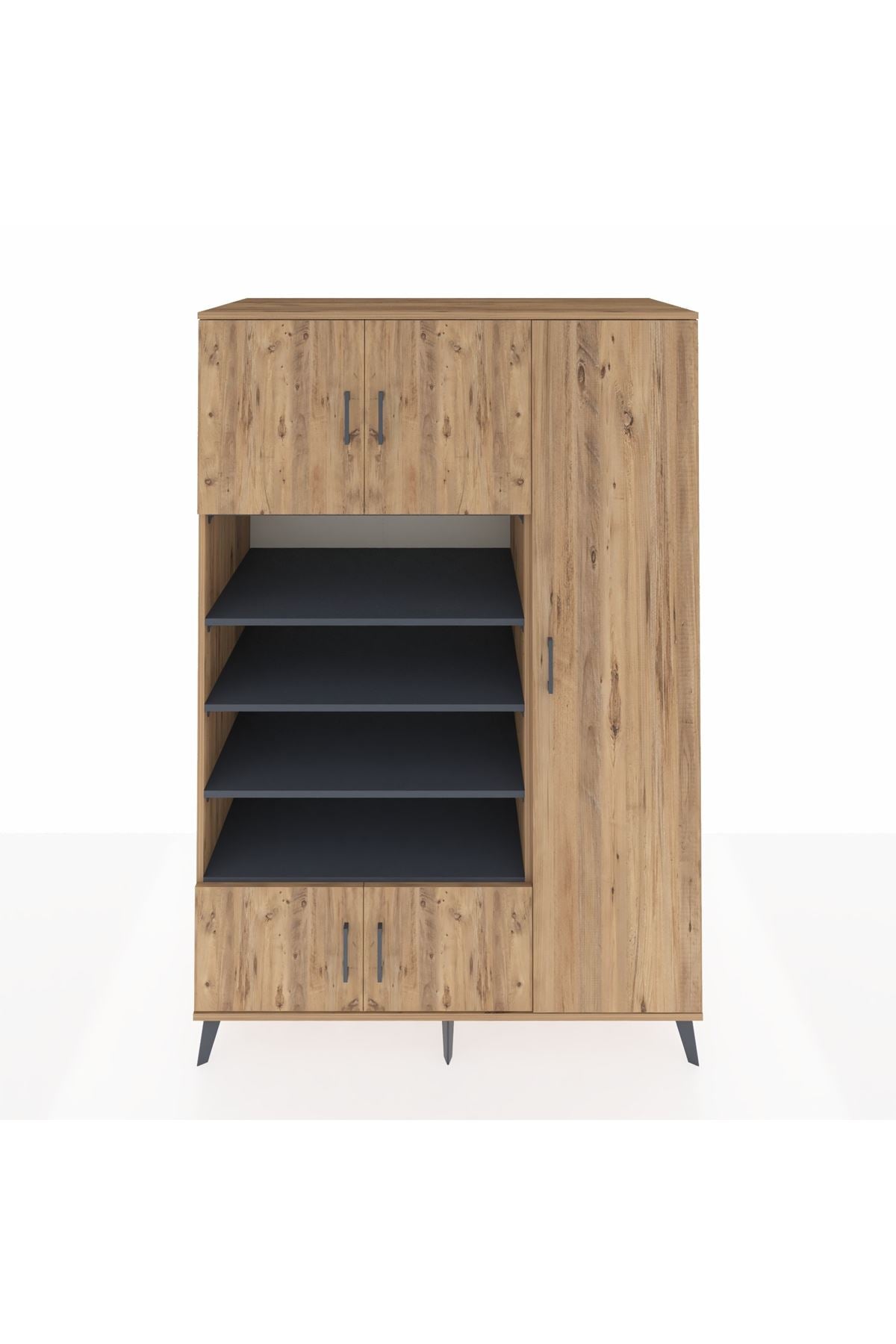 Kronos Dolap 11 Raflı 5 Kapaklı 132x59x195 Çam-Çam/Antrasit