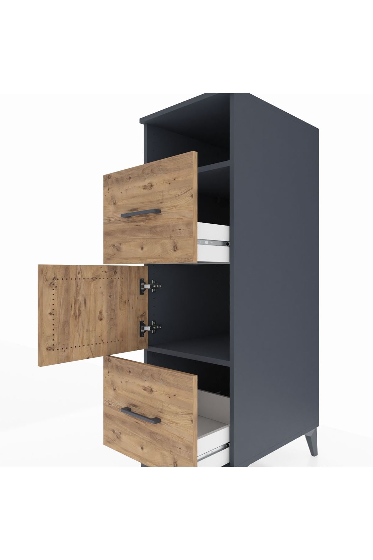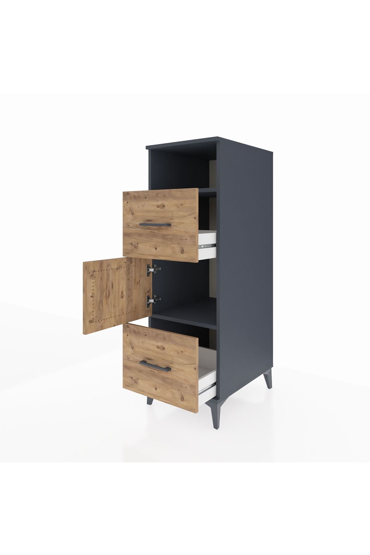 Kronos Dolap 2 Raflı 2 Çekmeceli Tek Kapaklı 44x59x134 Antrasit-Çam