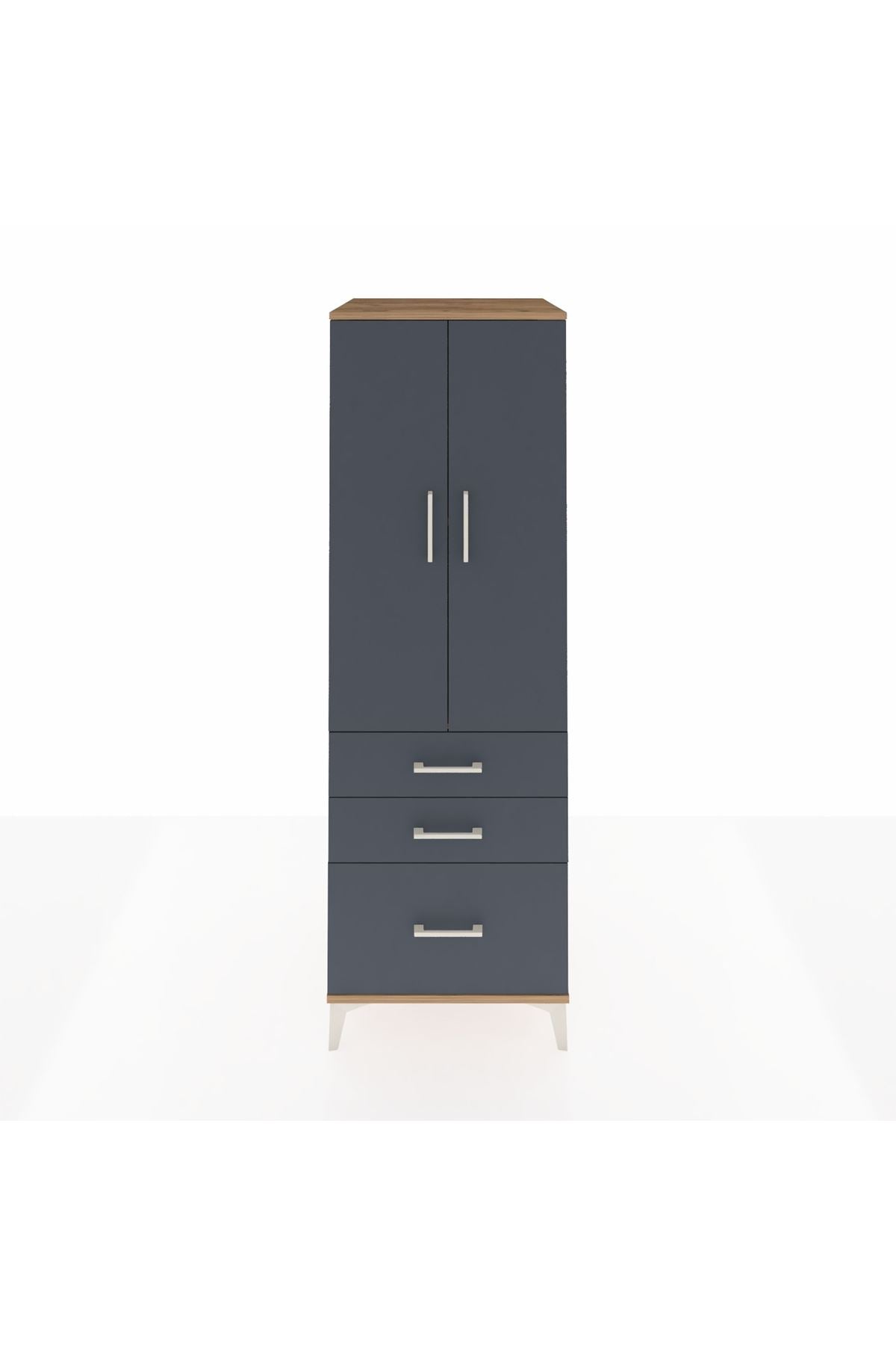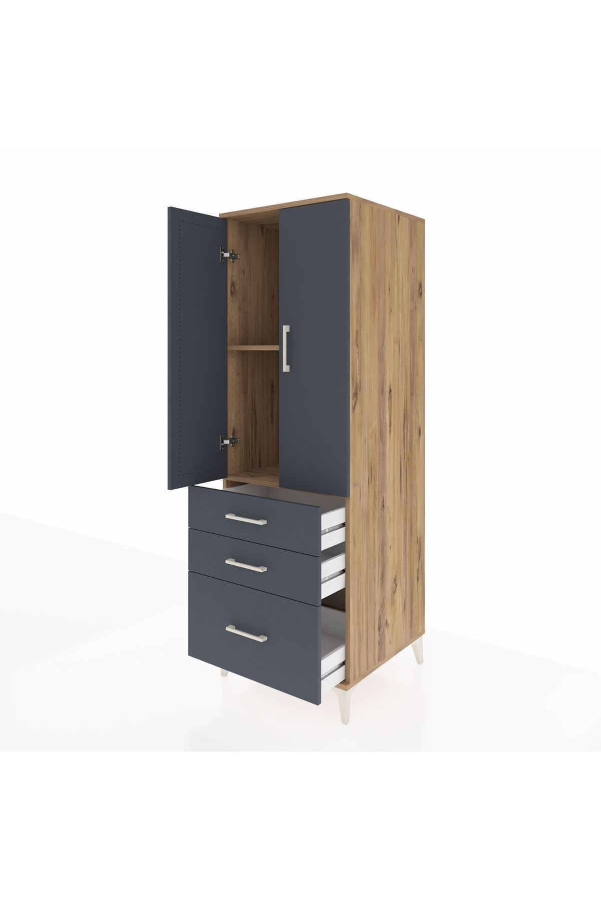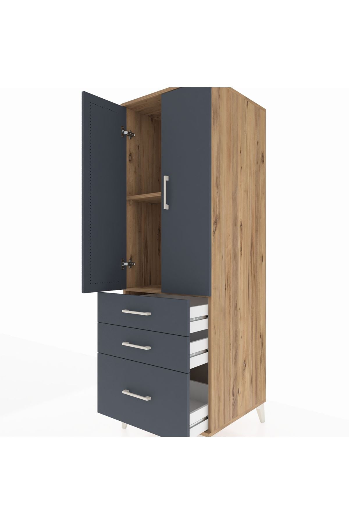 Kronos Dolap 2 Raflı 3 Çekmeceli 2 Kapaklı 60x59x182 Çam-Antrasit