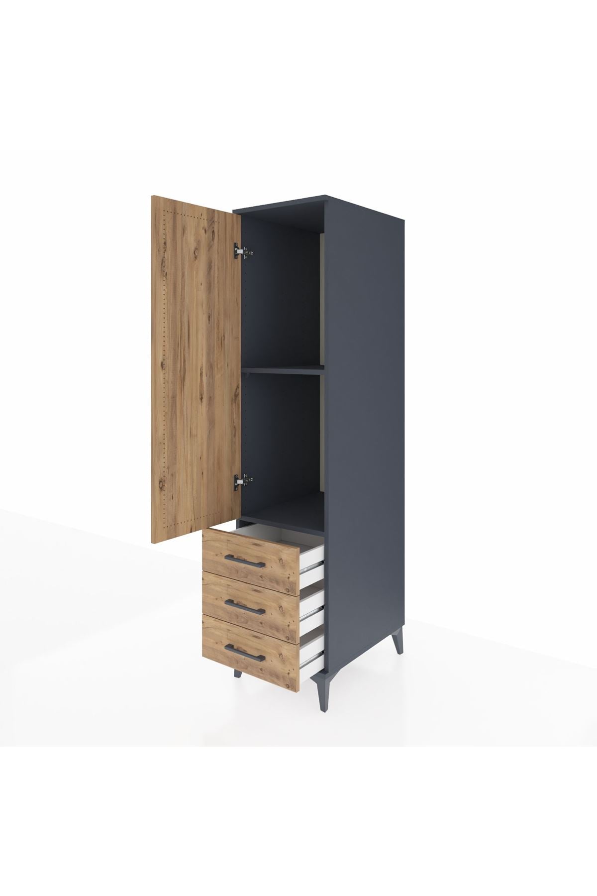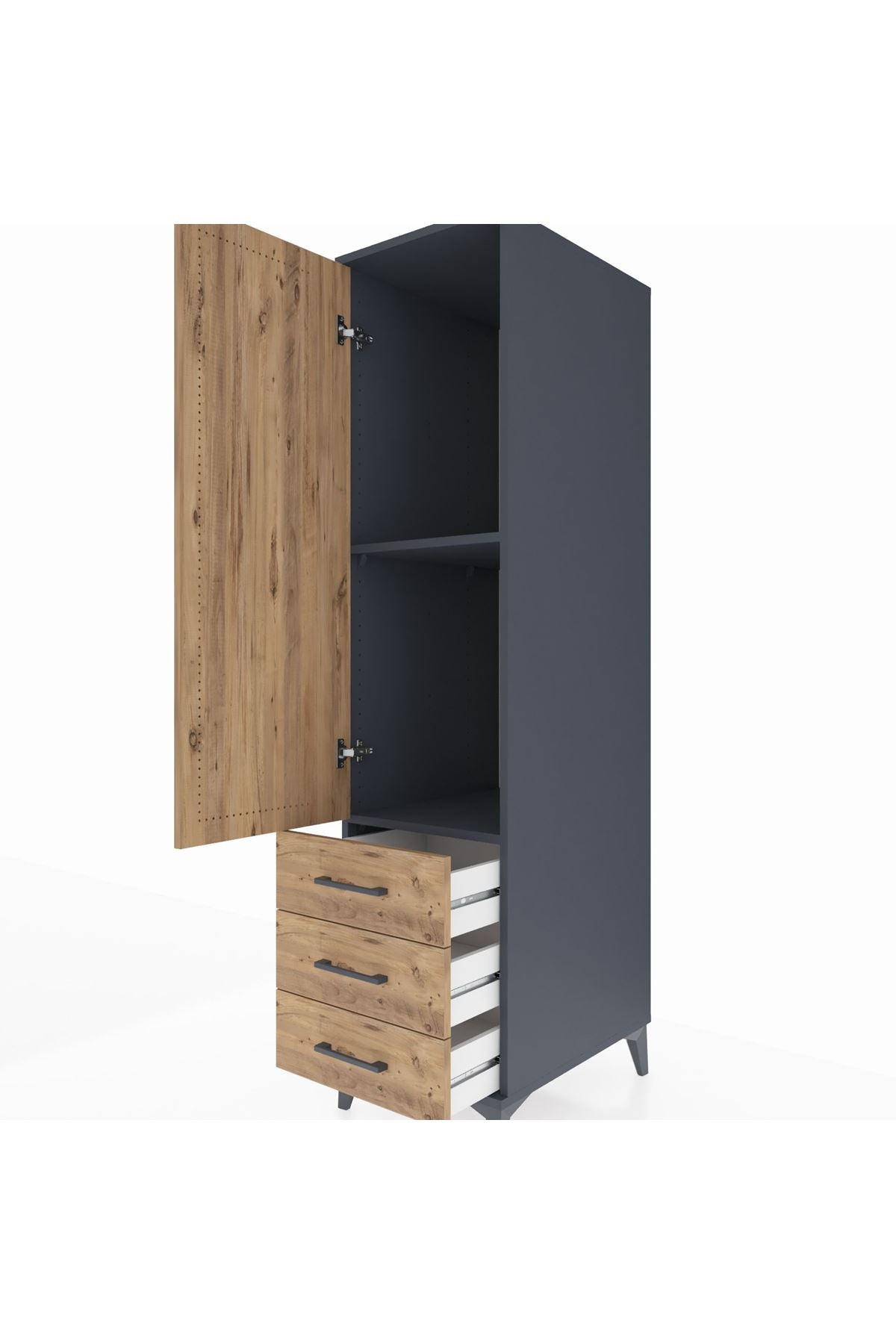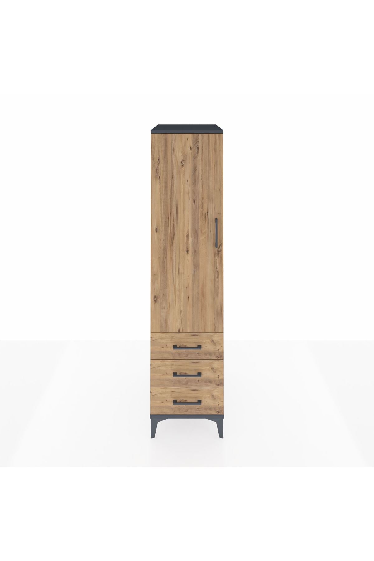 Kronos Dolap 2 Raflı 3 Çekmeceli Tek Kapaklı 44x59x182 Antrasit-Çam