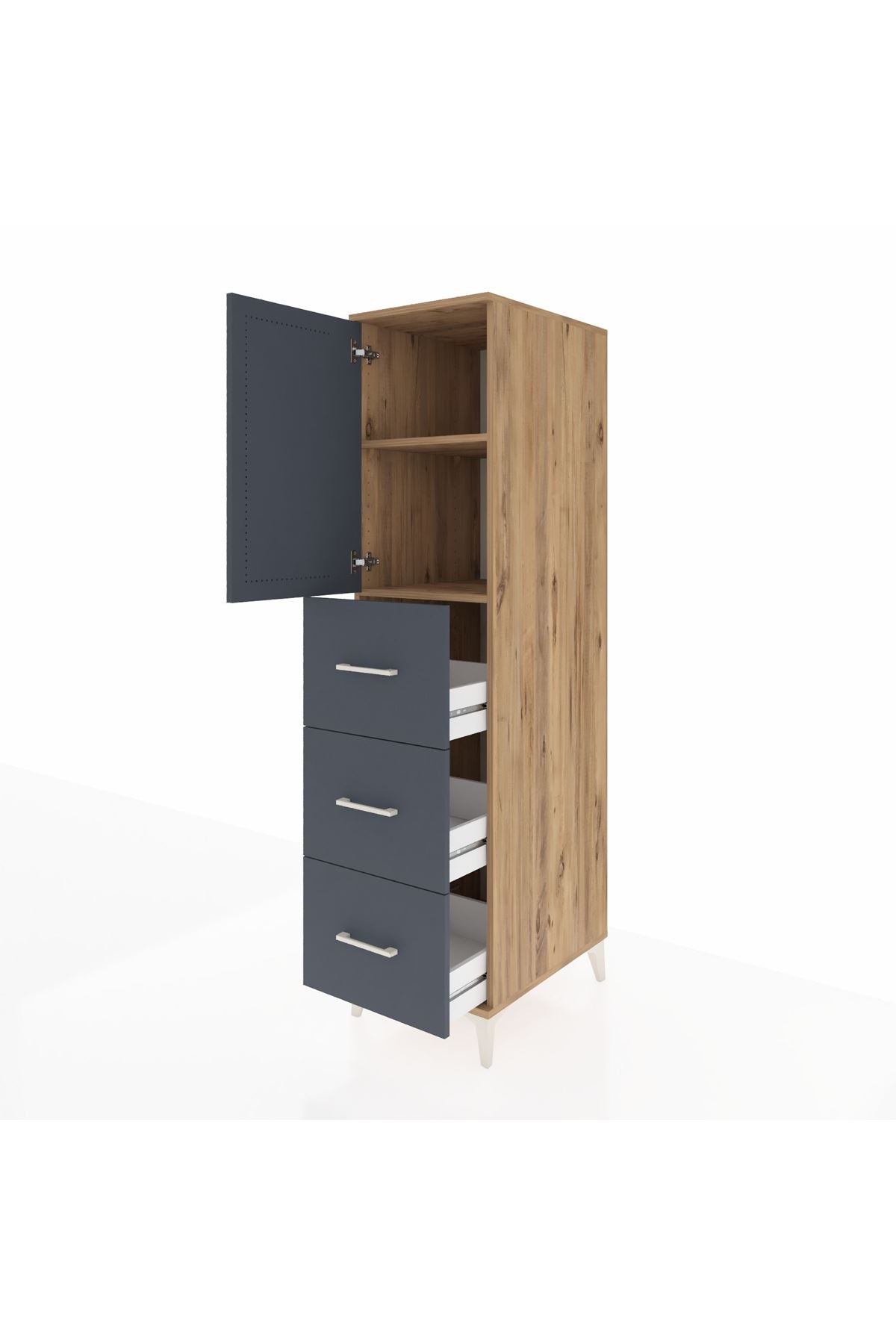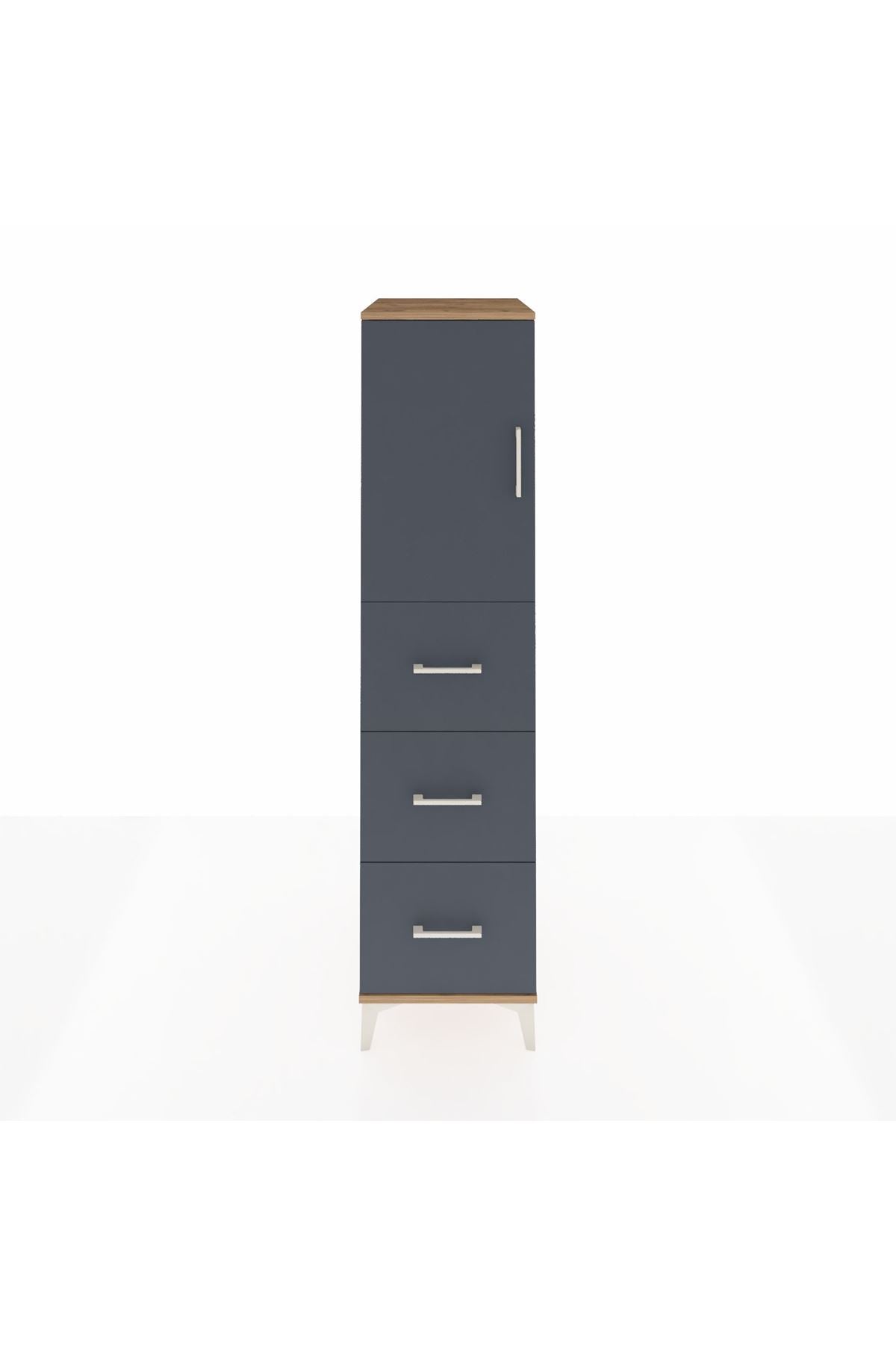 Kronos Dolap 2 Raflı 3 Çekmeceli Tek Kapaklı 44x59x182 Çam-Antrasit