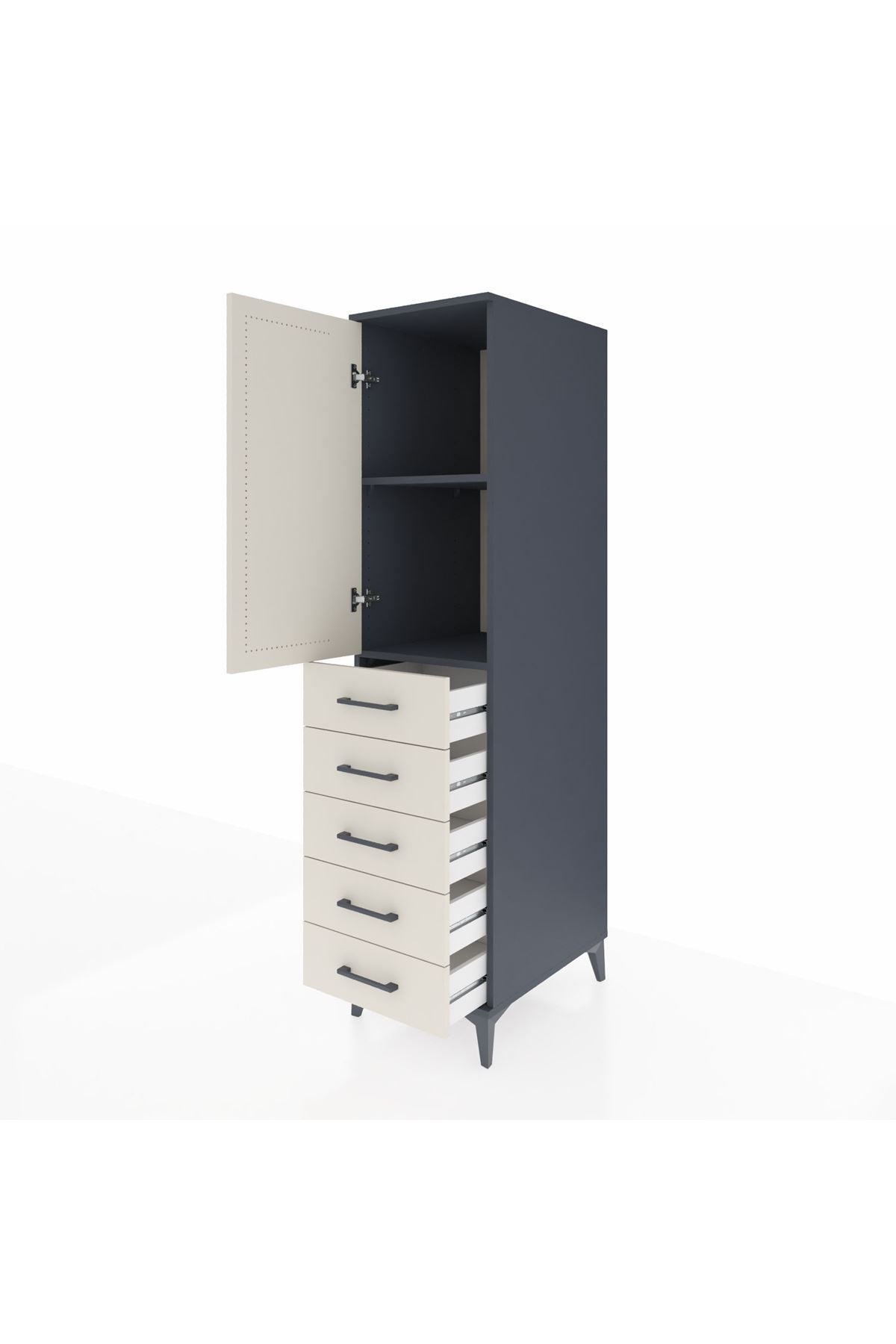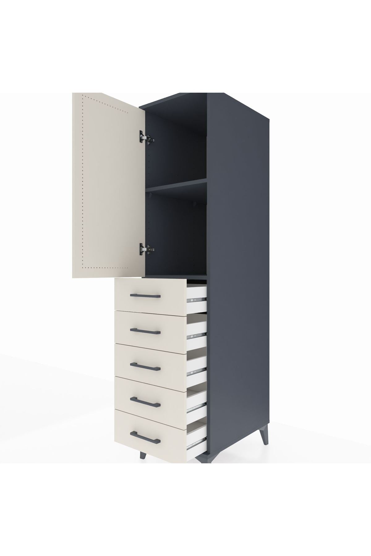 Kronos Dolap 2 Raflı 5 Çekmeceli Tek Kapaklı 44x59x182 Antrasit-Aytaşı