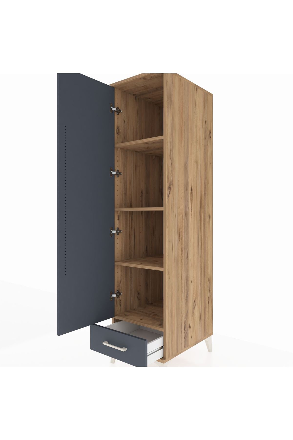Kronos Dolap 4 Raflı Tek Çekmeceli Tek Kapaklı 44x59x182 Çam-Antrasit