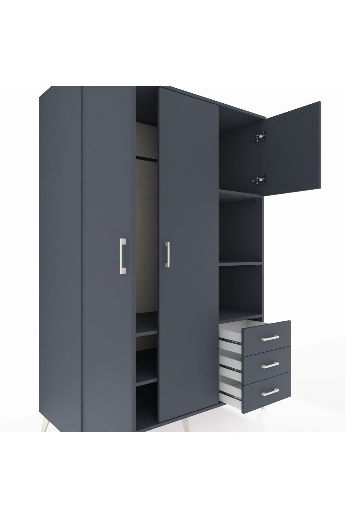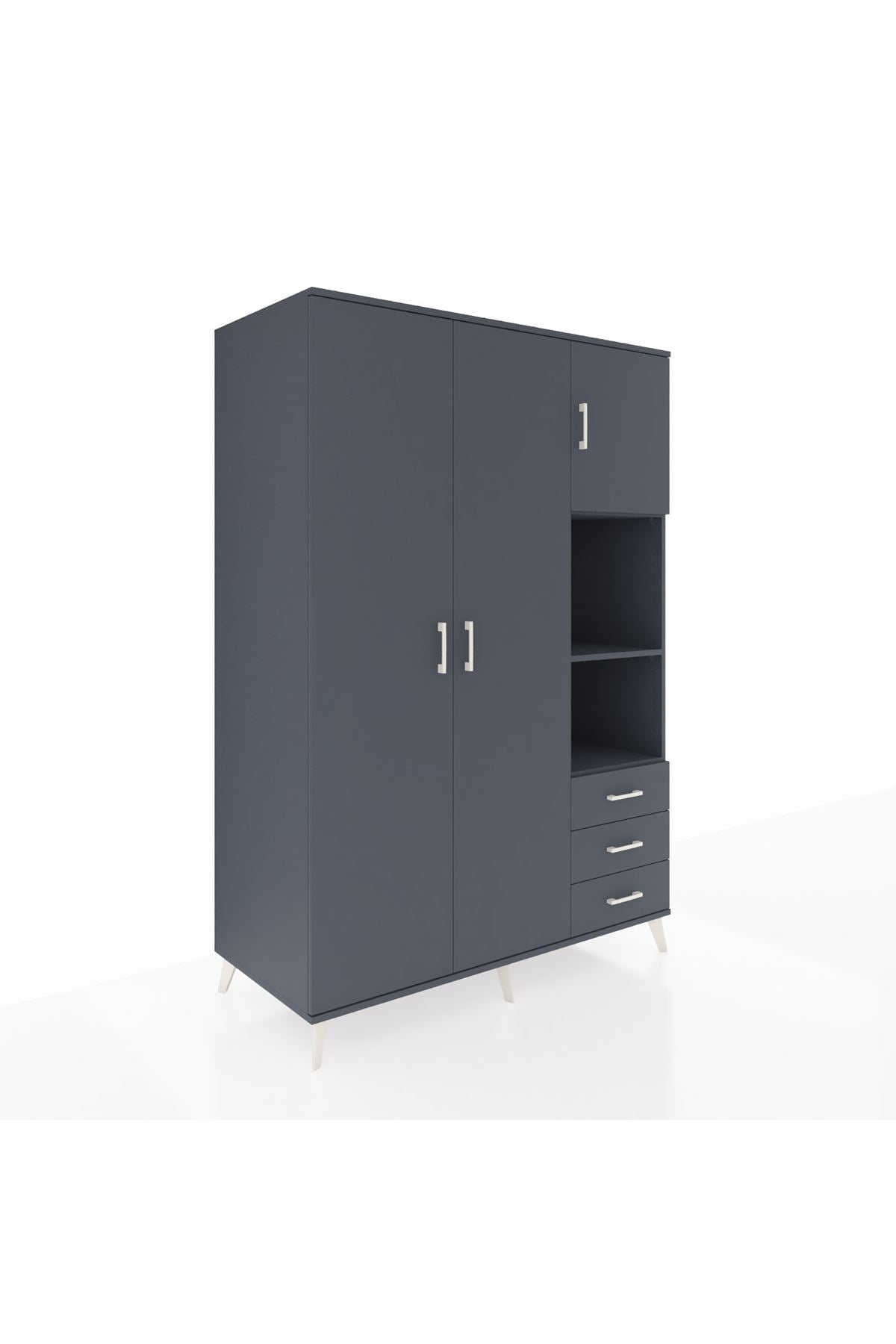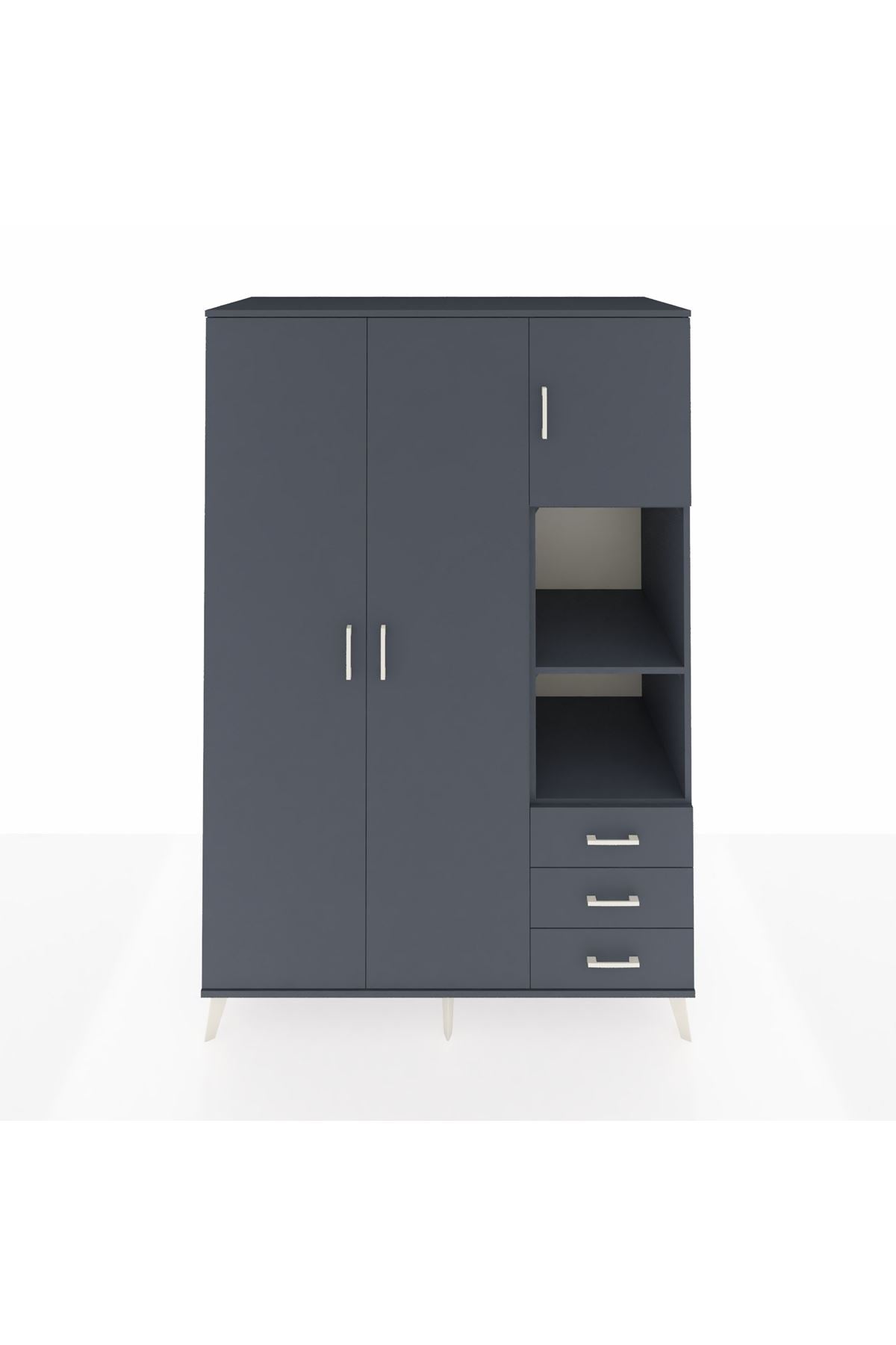Kronos Dolap 5 Raflı 3 Çekmeceli Tek Askılı 132x59x195 Antrasit-Antrasit/Antrasit – Düzen ve Zarafetin Buluşması