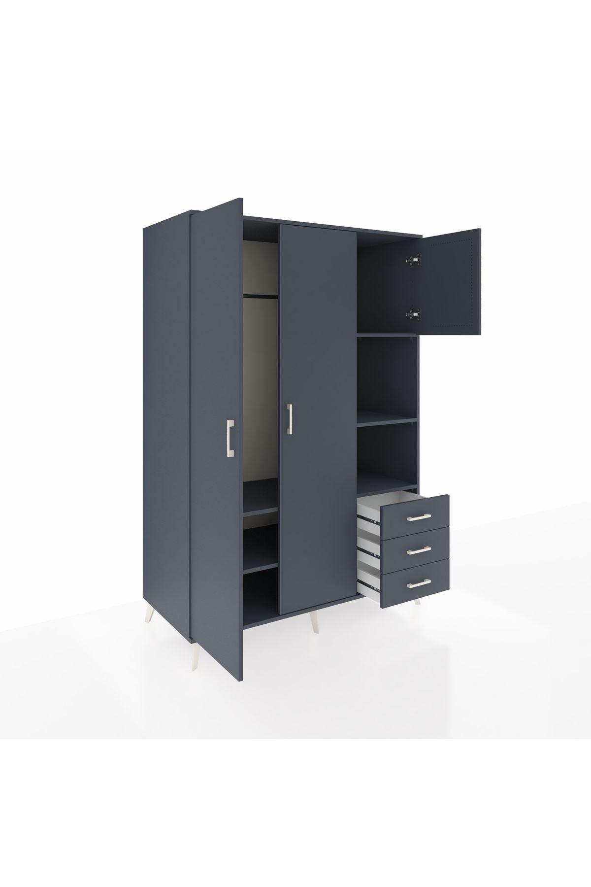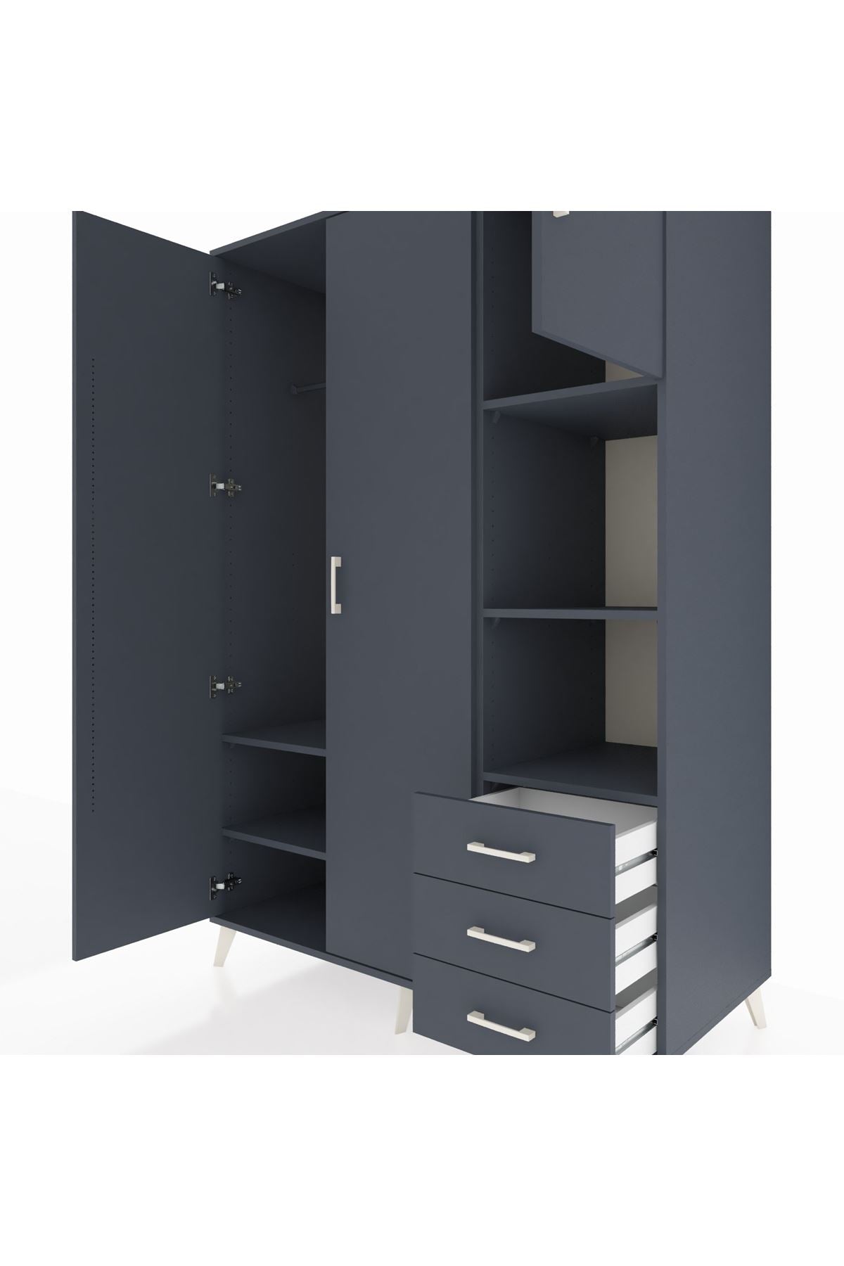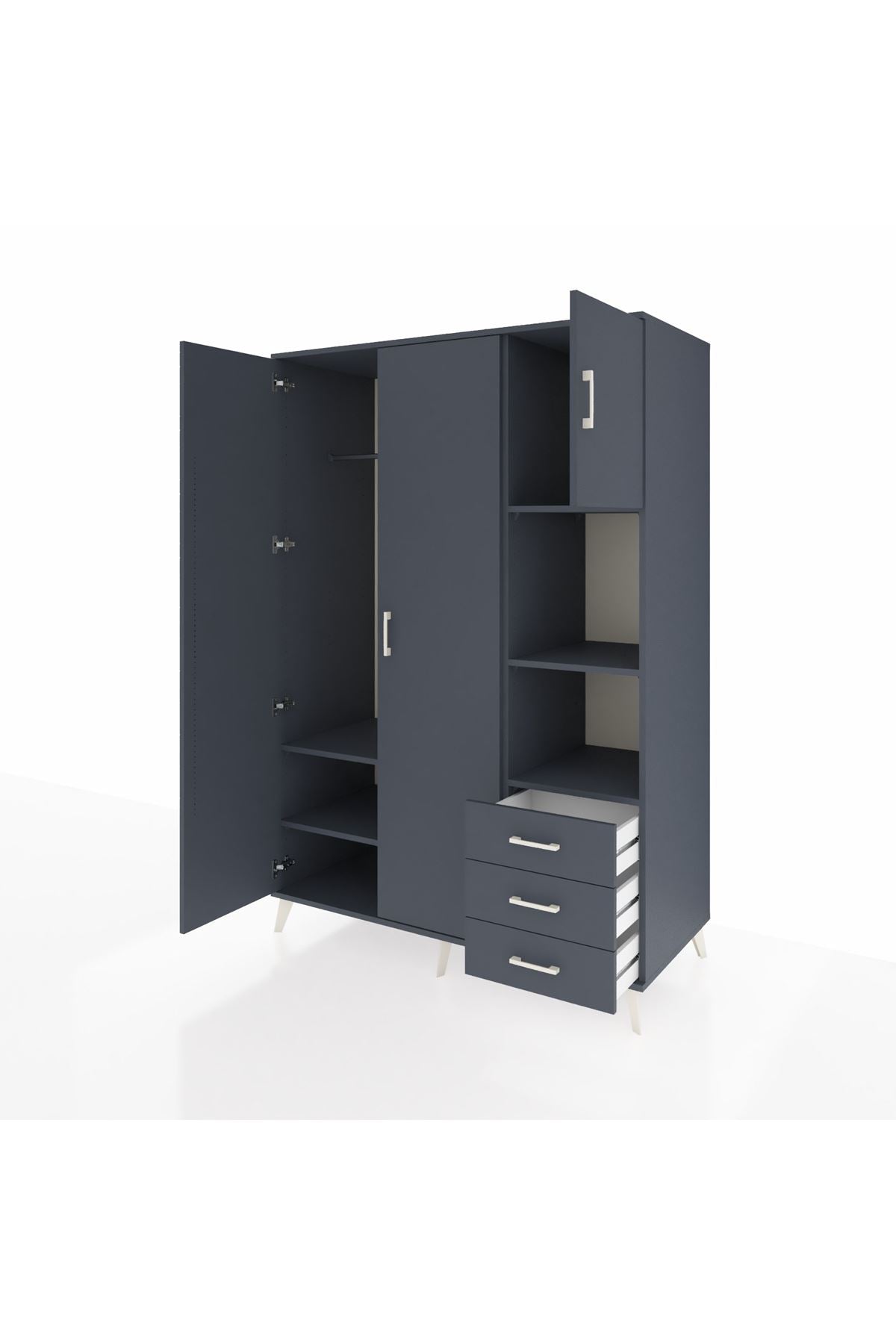 Kronos Dolap 5 Raflı 3 Çekmeceli Tek Askılı 132x59x195 Antrasit-Antrasit/Antrasit – Düzen ve Zarafetin Buluşması