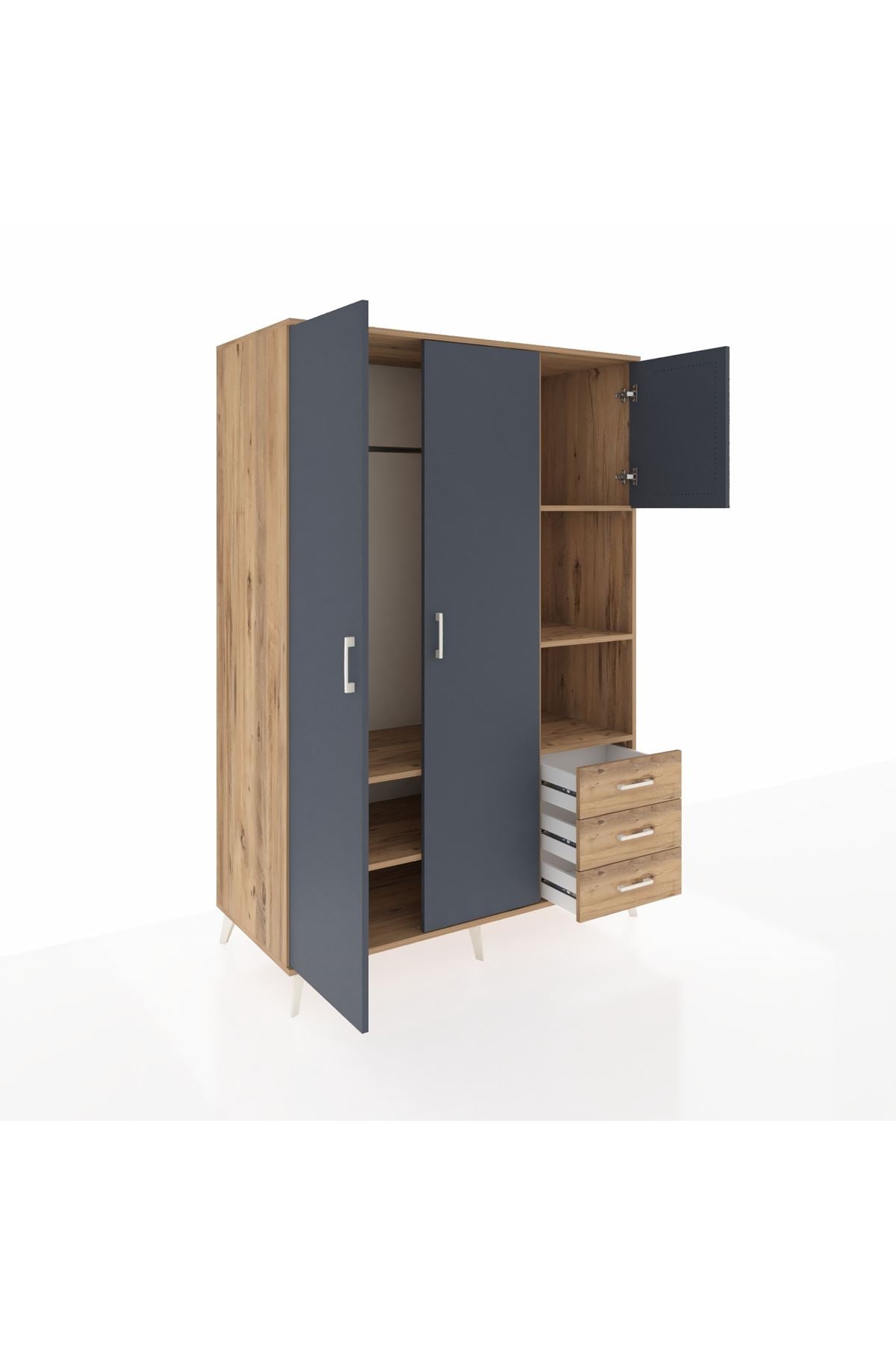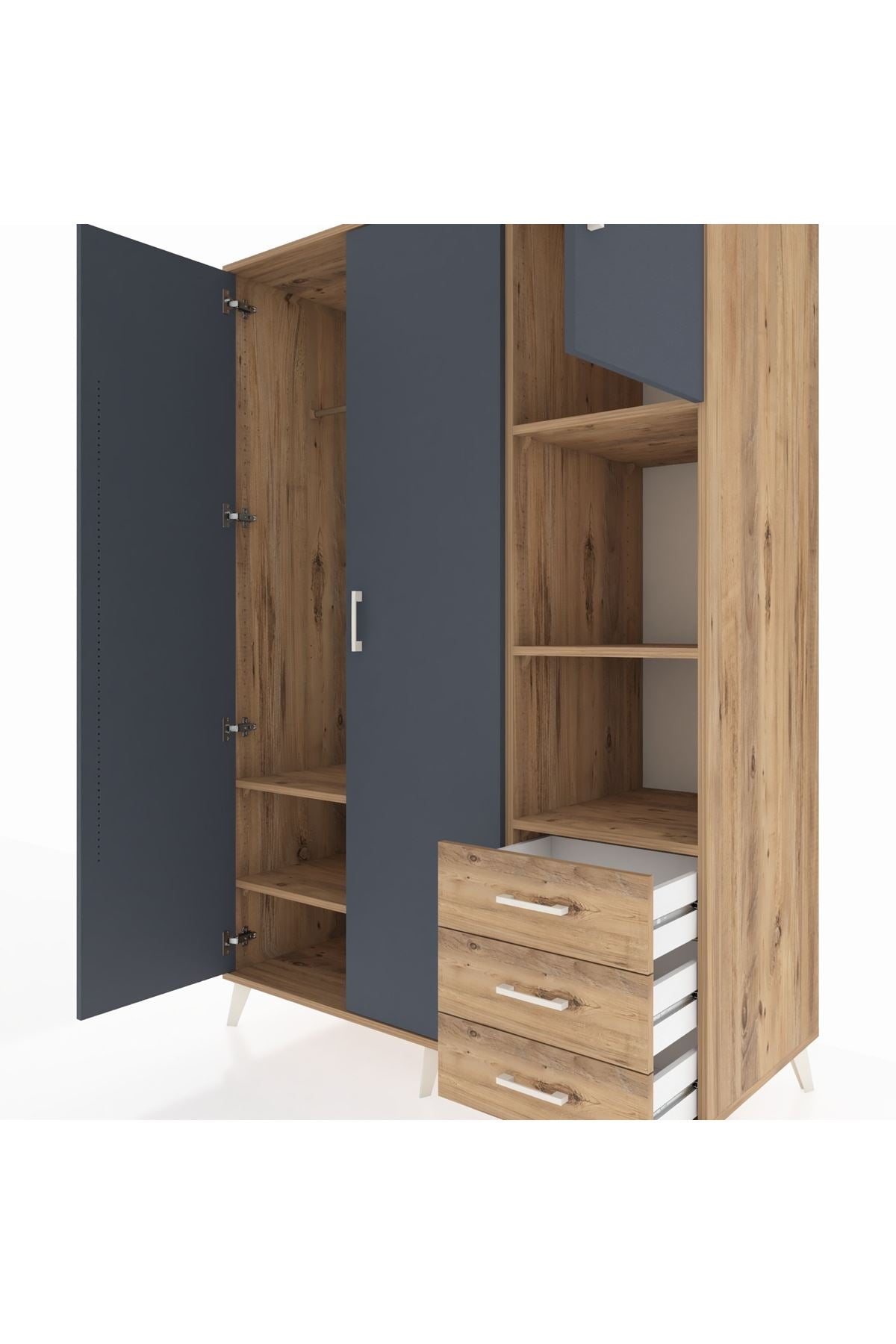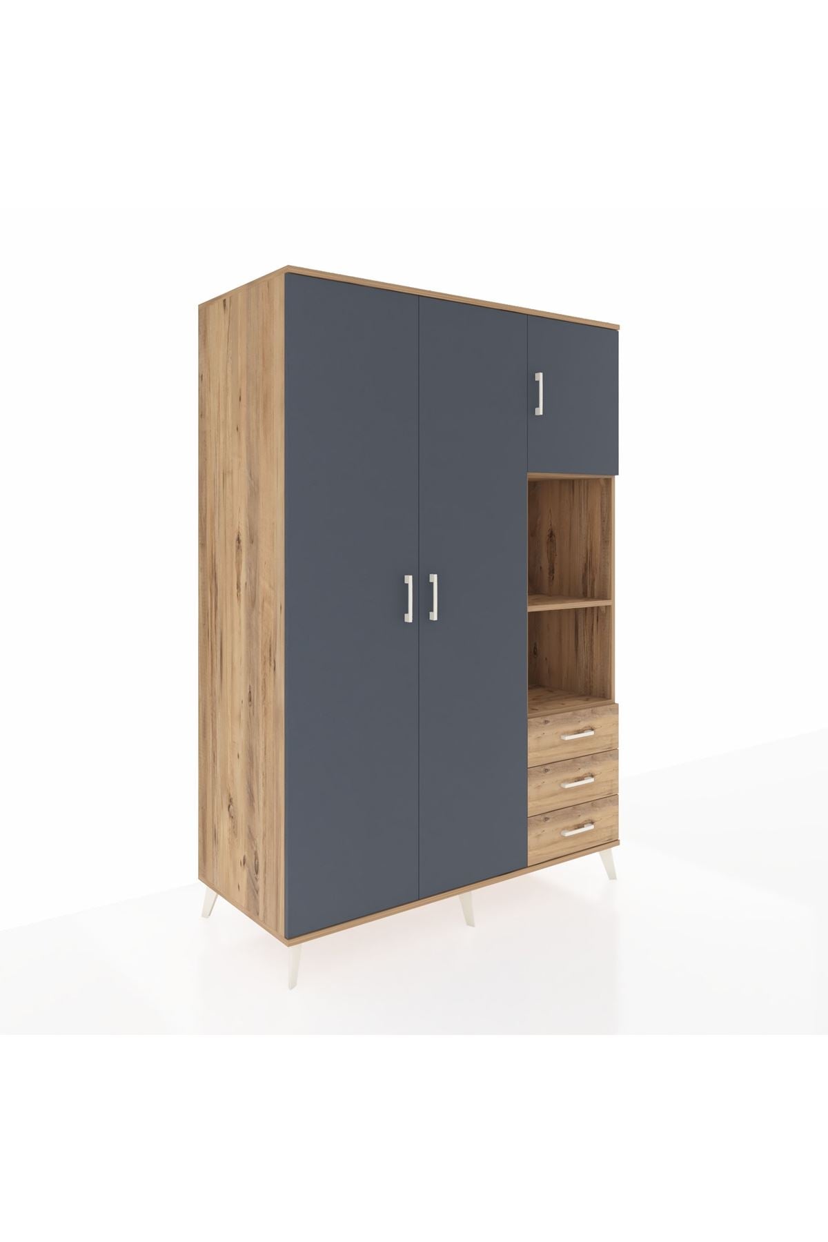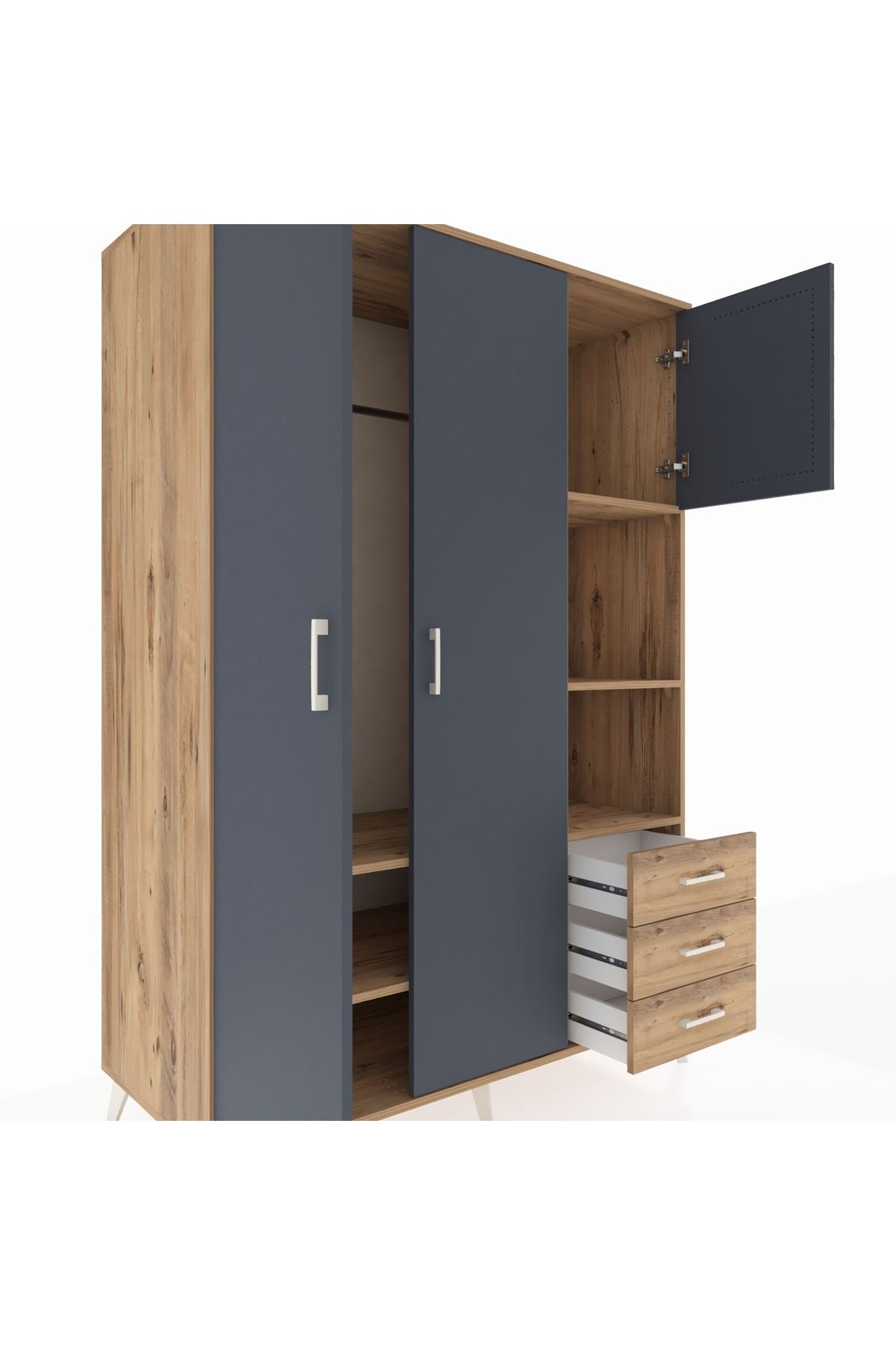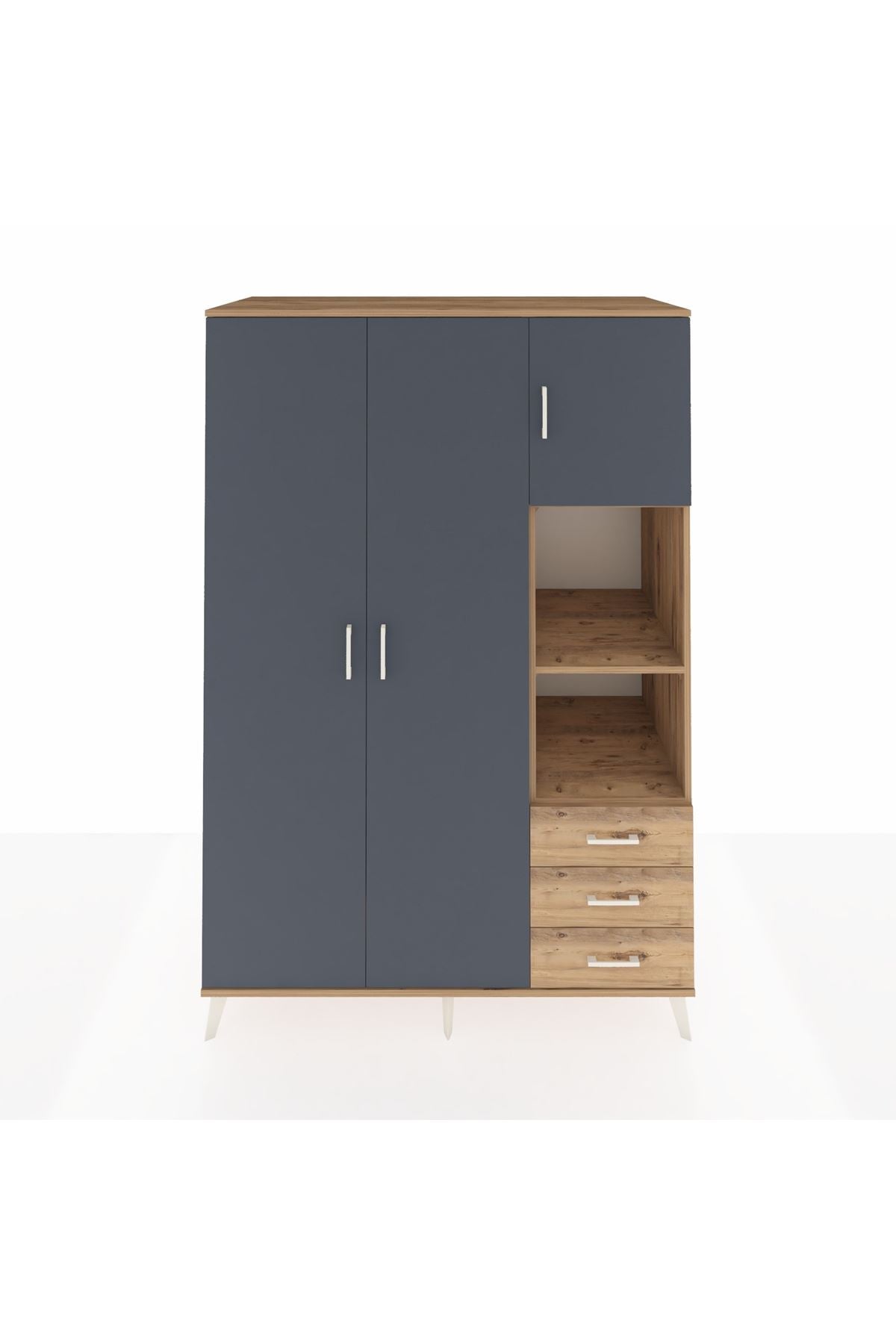 Kronos Dolap 5 Raflı 3 Çekmeceli Tek Askılı 132x59x195 Çam-Antrasit/Çam