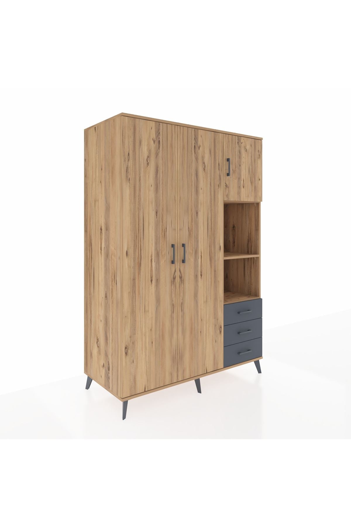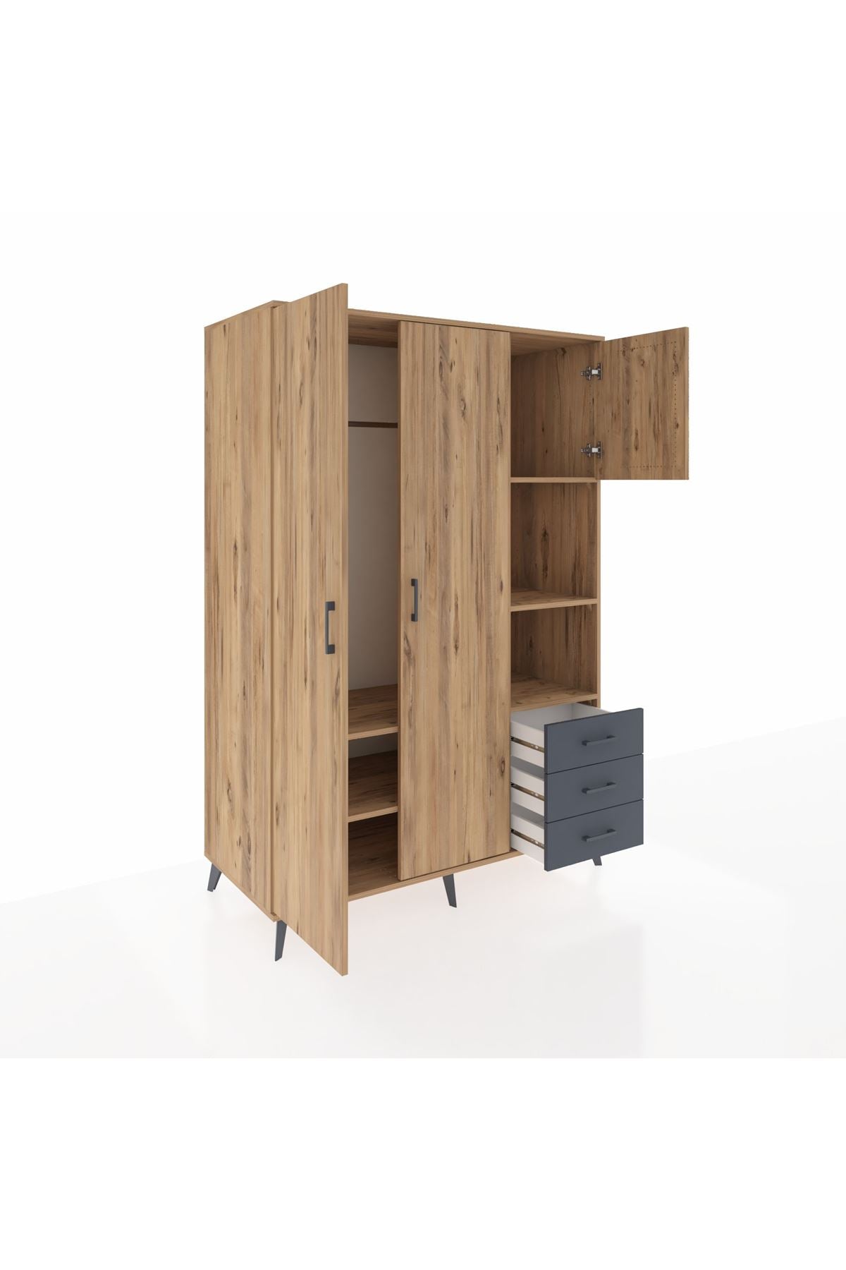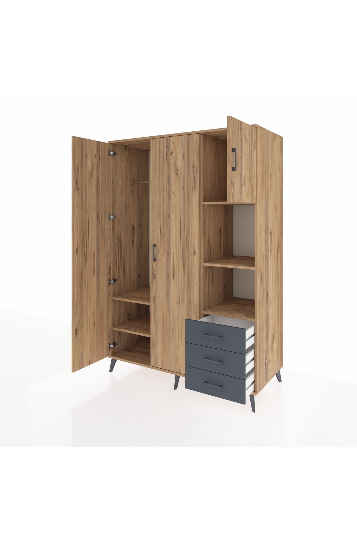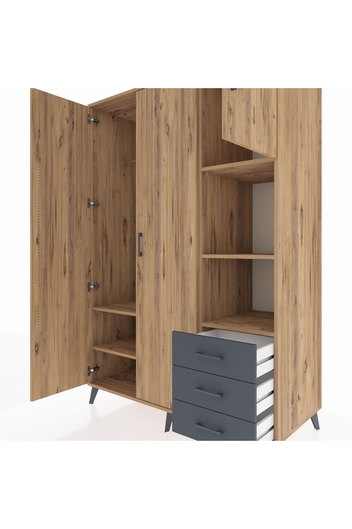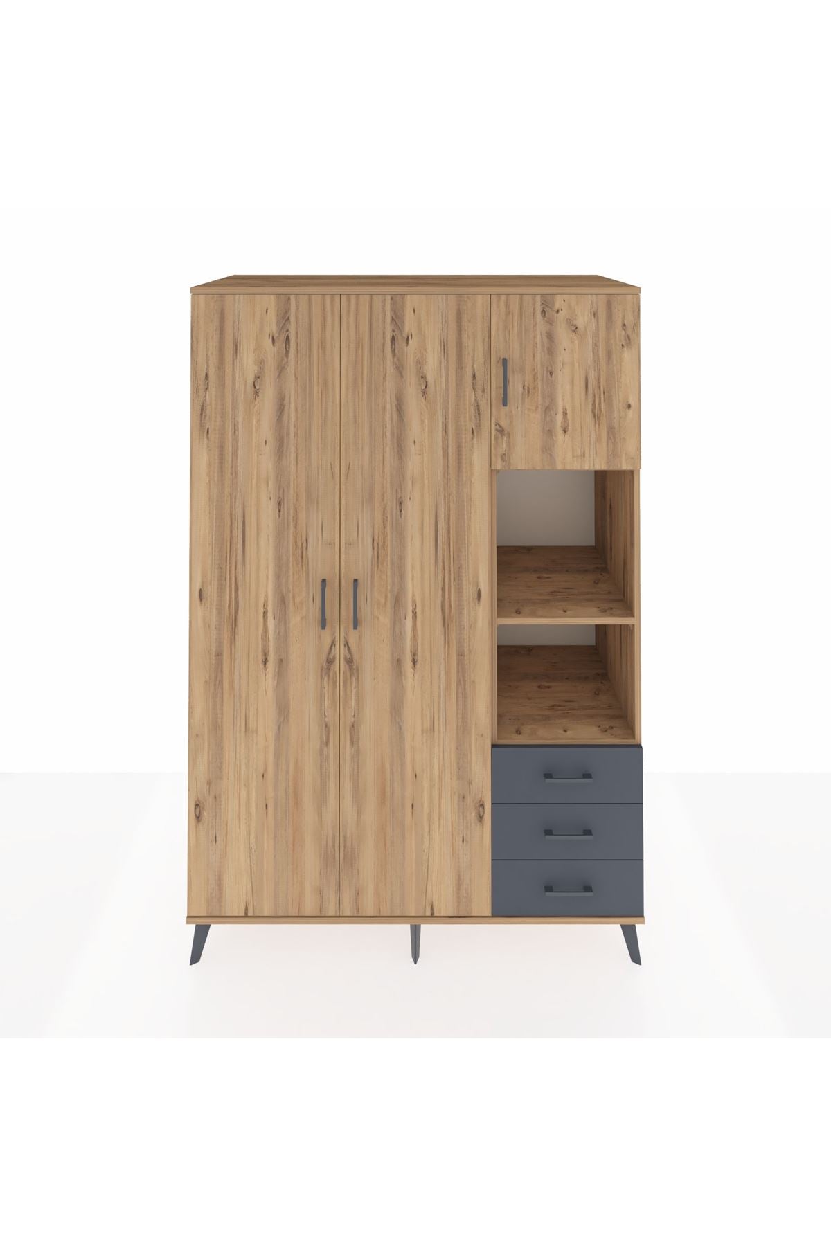 Kronos Dolap 5 Raflı 3 Çekmeceli Tek Askılı 132x59x195 Çam-Çam/Antrasit