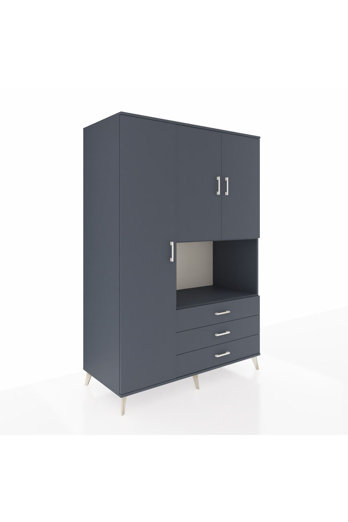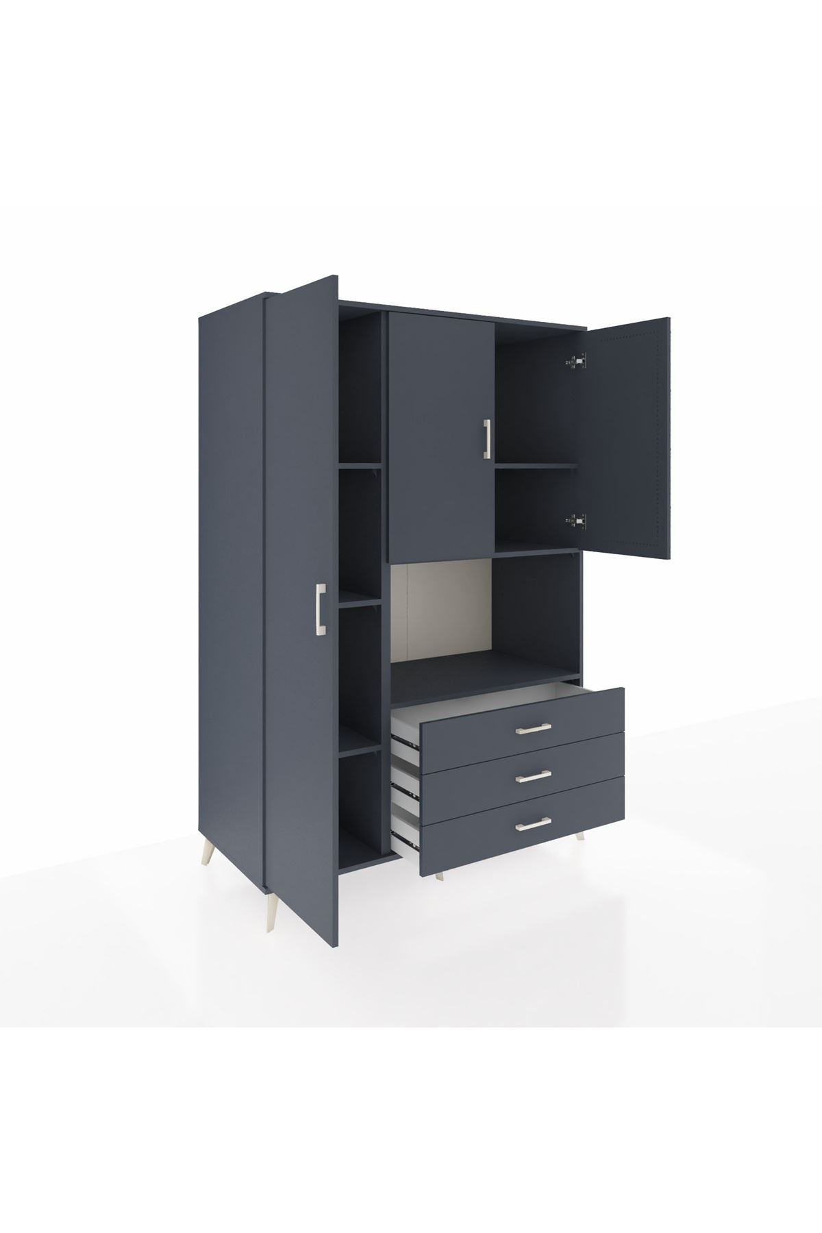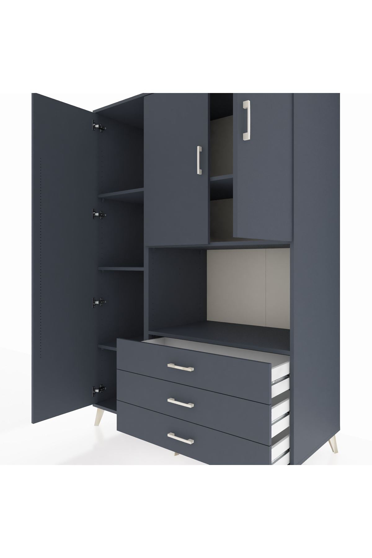 Kronos Dolap 6 Raflı 3 Çekmeceli 3 Kapaklı 132x59x195 Antrasit-Antrasit/Antrasit