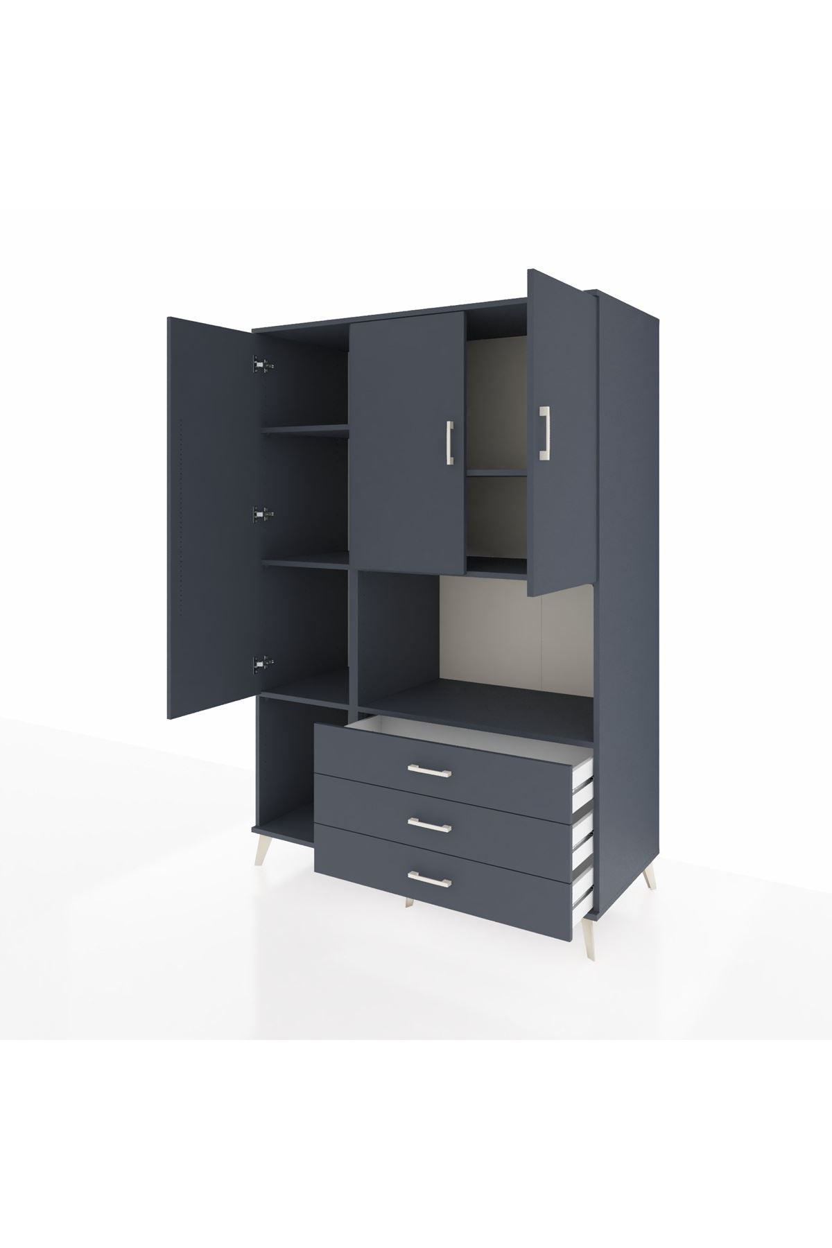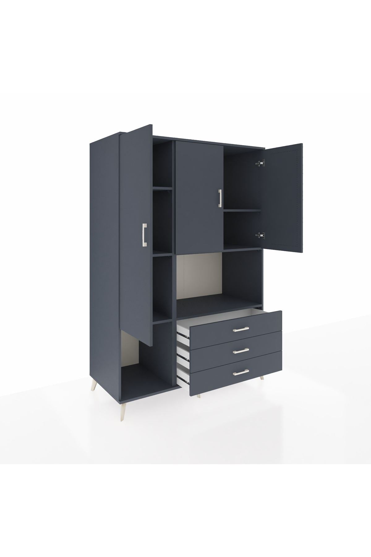 Modern yaşam alanlarınız için tasarlanan Kronos Dolap, şık antrasit tonları ve zamansız dizaynı ile dikkat çekiyor 🖤 Geniş iç hacmiyle hem ferah hem de düzenli bir ortam yaratmanıza yardımcı olur Üstelik 3 kapaklı, 3 çekmeceli ve 6 raflı yapısı sayesinde tüm eşyalarınız için pratik bir depolama sunar 📦