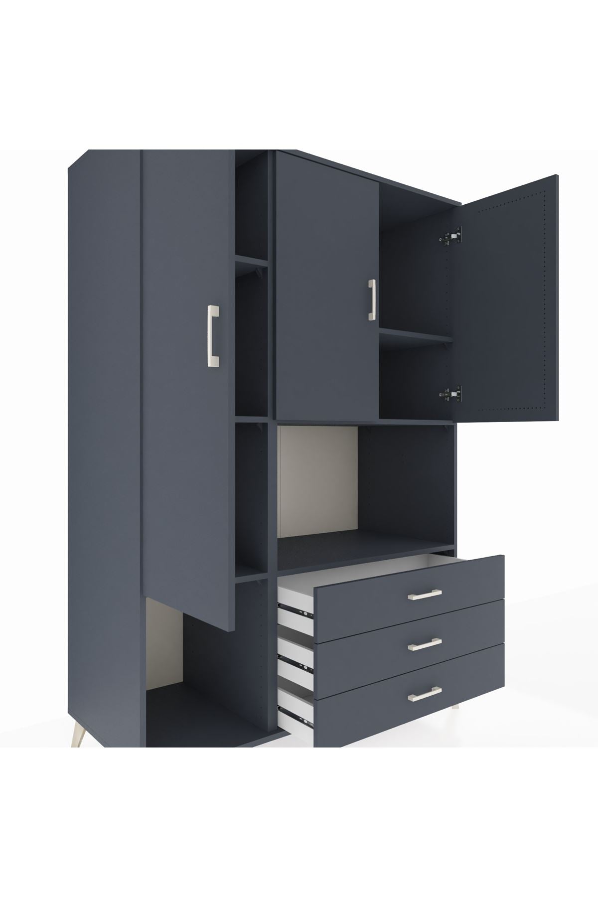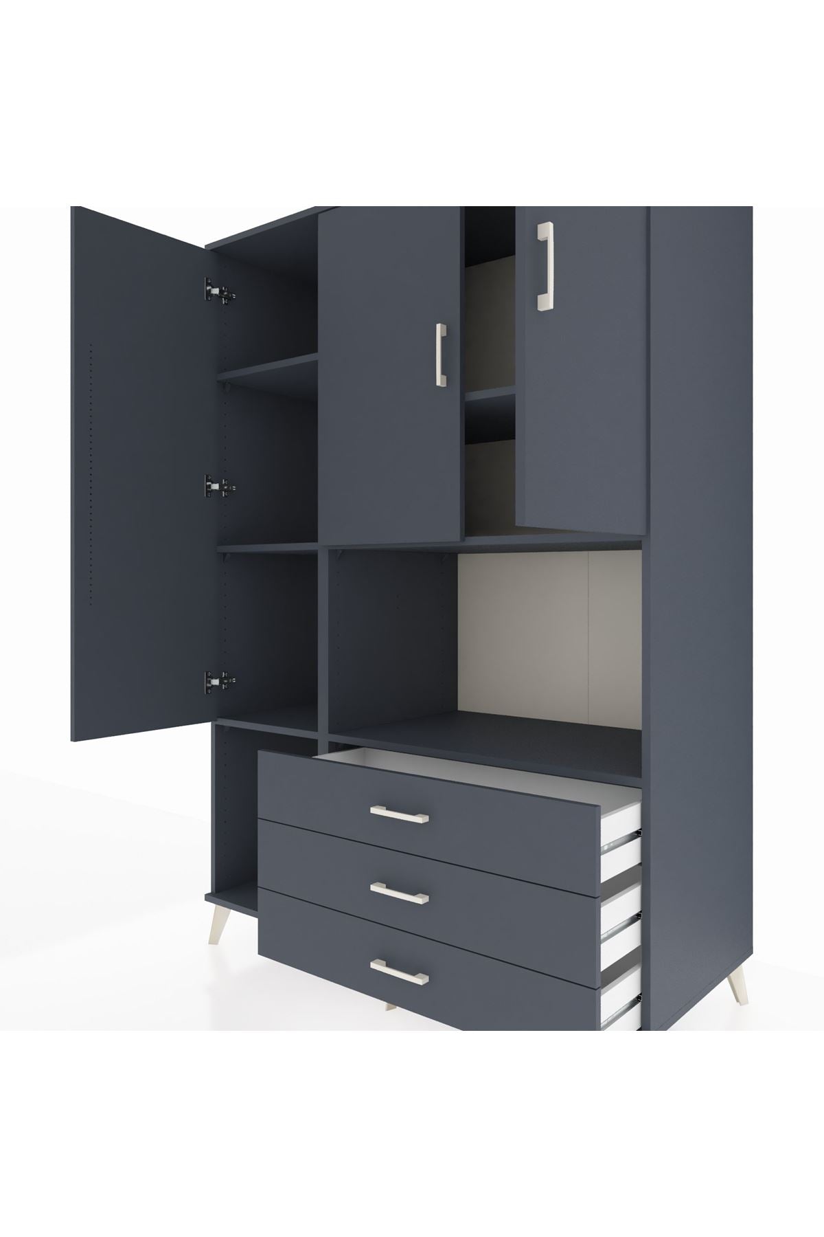 Kronos Dolap 6 Raflı 3 Çekmeceli 3 Kapaklı 132x59x195 Antrasit-Antrasit/Antrasit