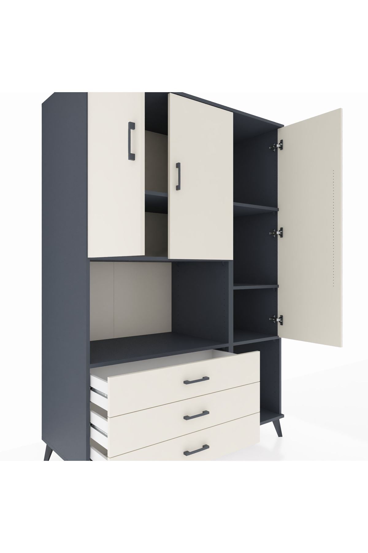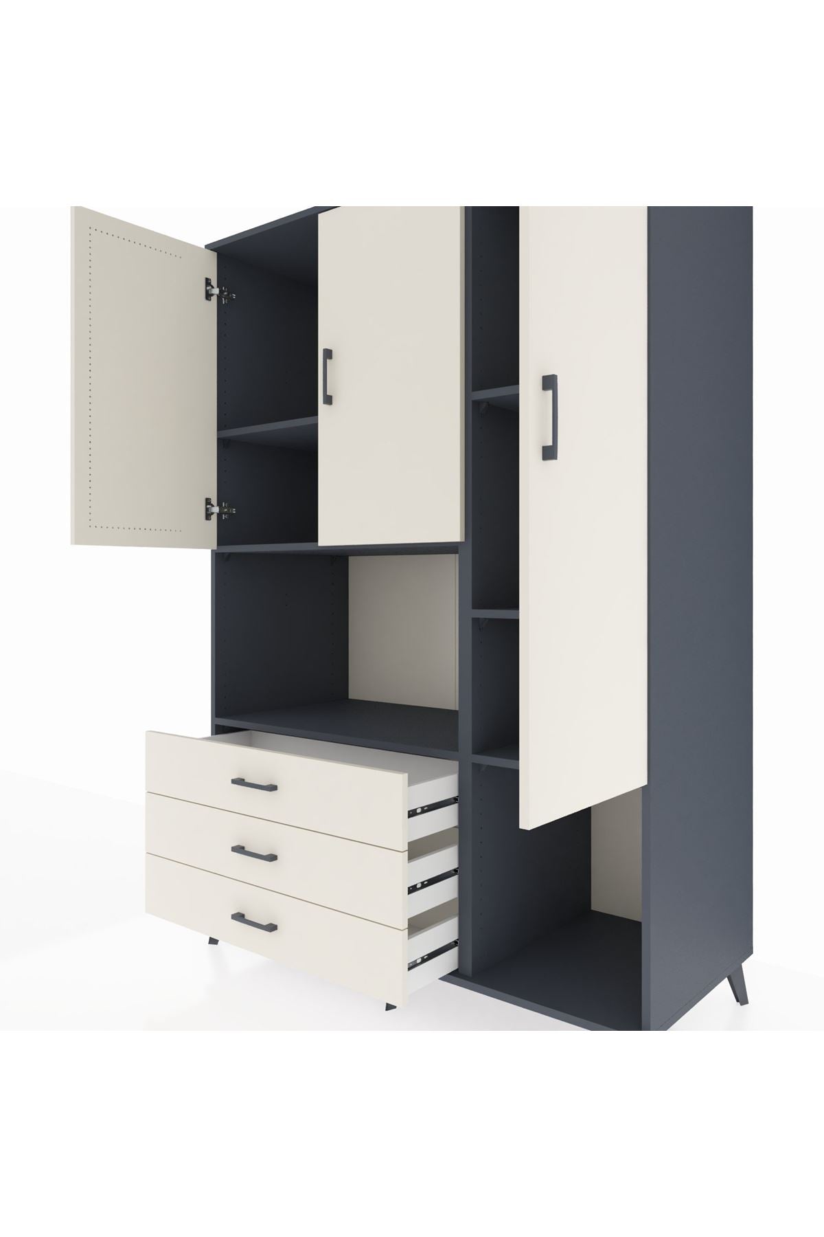Kronos Dolap 6 Raflı 3 Çekmeceli 3 Kapaklı 132x59x195 Antrasit-Aytaşı/Aytaşı