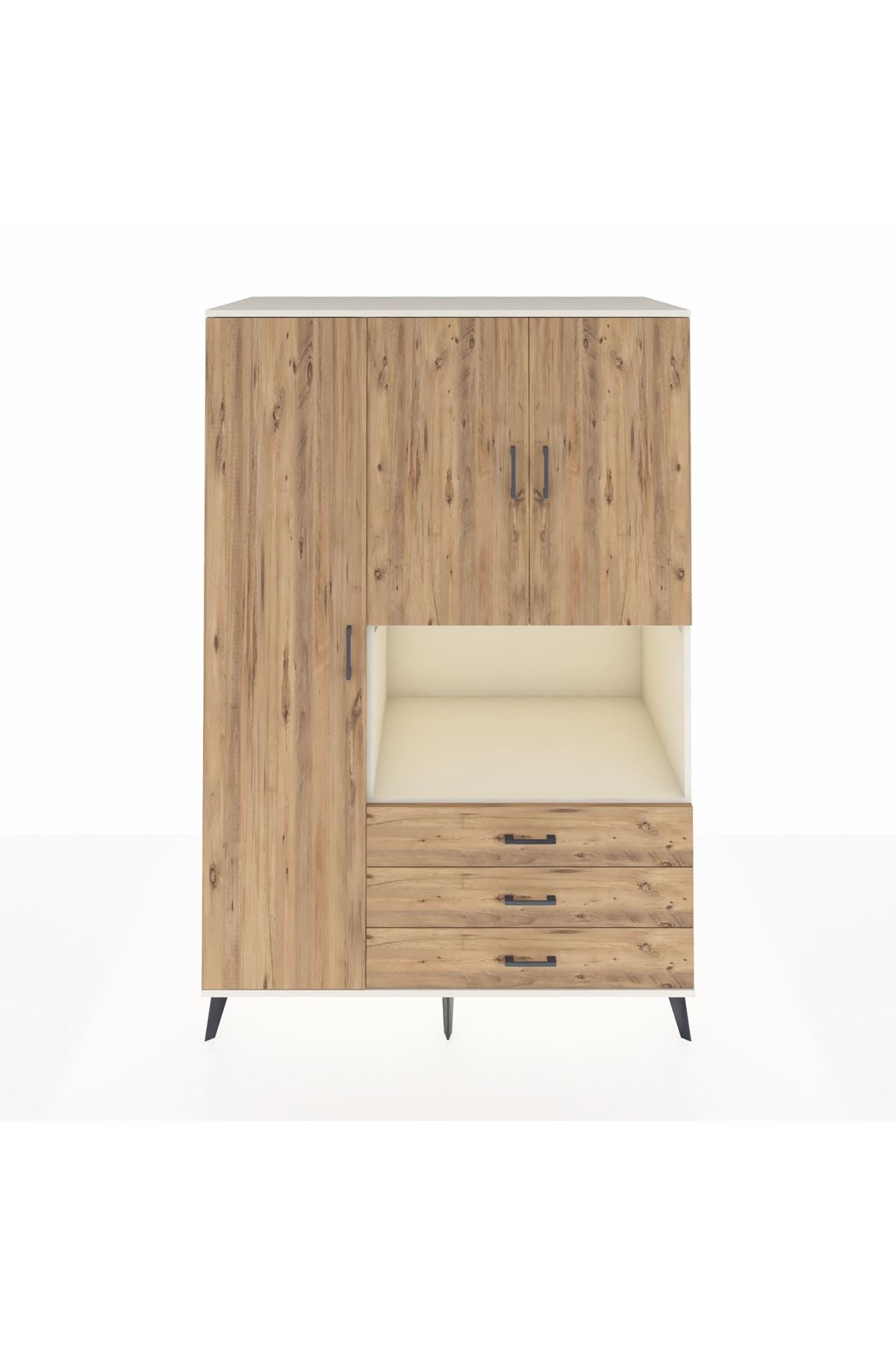 Kronos Dolap 6 Raflı 3 Çekmeceli 3 Kapaklı 132x59x195 Aytaşı-Çam/Çam