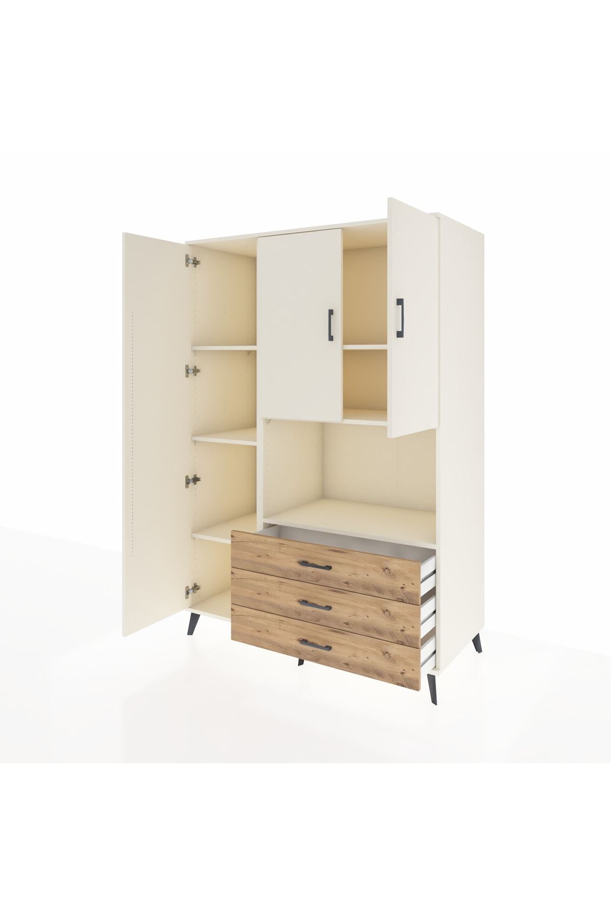 Kronos Dolap 6 Raflı 3 Çekmeceli 3 Kapaklı 132x59x195 Aytaşı-Aytaşı/Çam