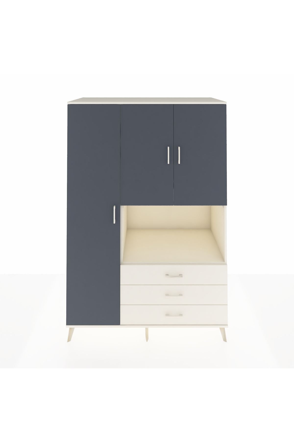 🕰️ Kronos Dolap 6 Raflı 3 Çekmeceli 3 Kapaklı 132x59x195 Aytaşı-Antrasit/Aytaşı