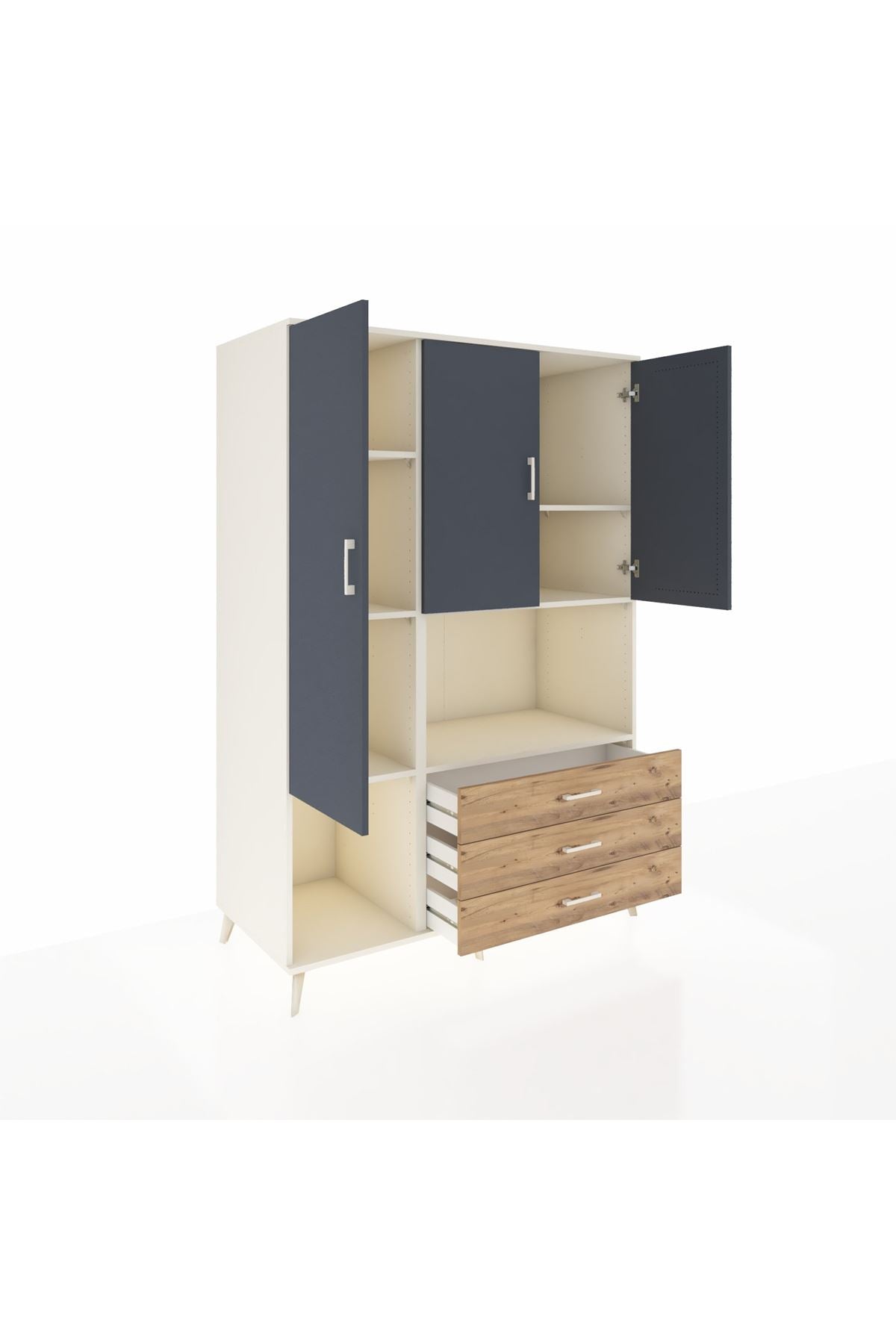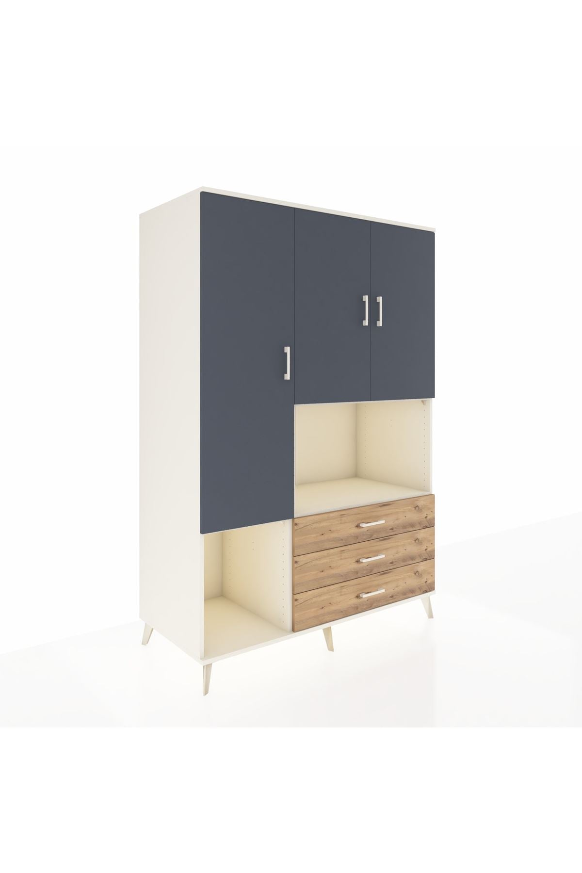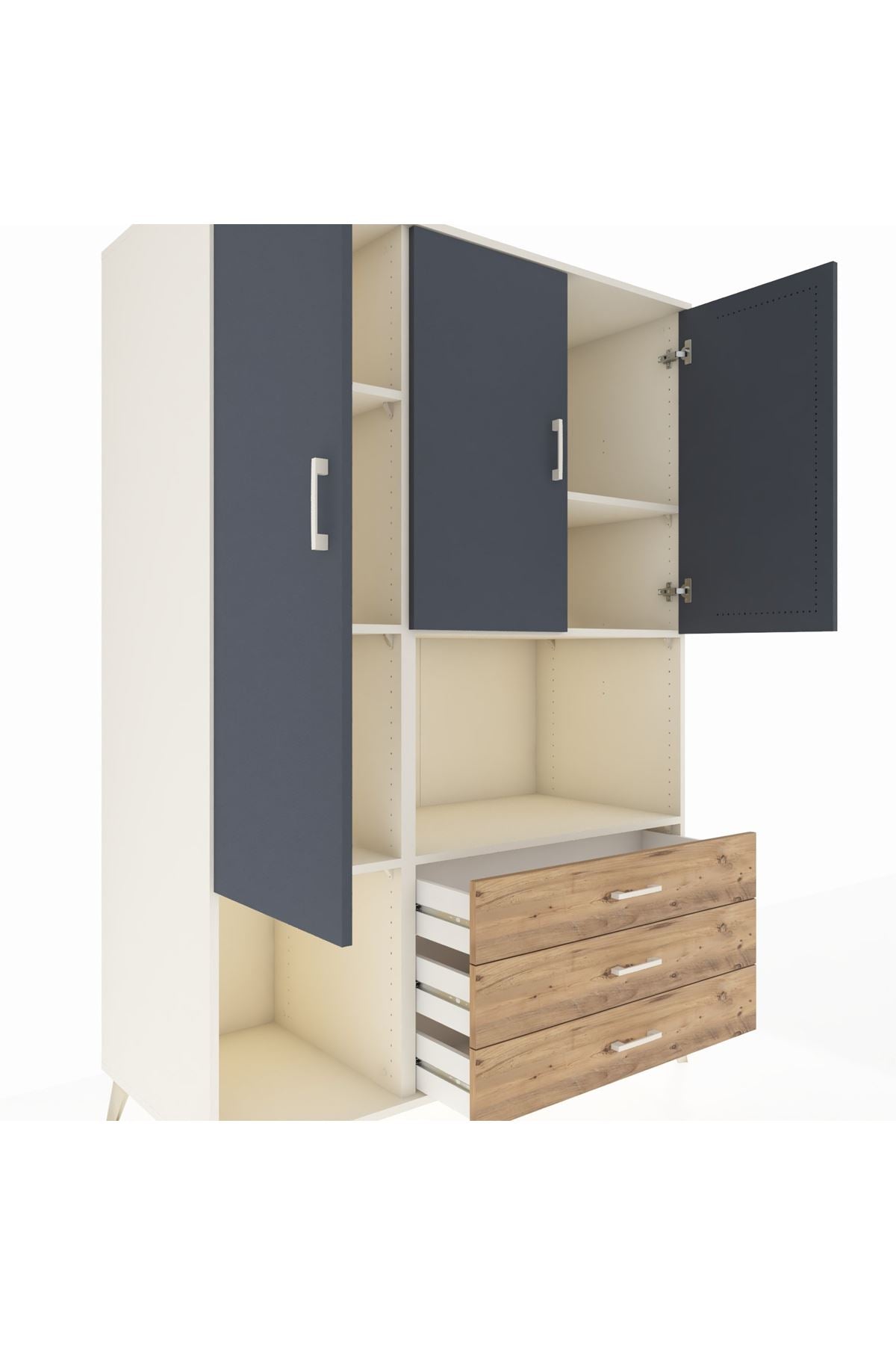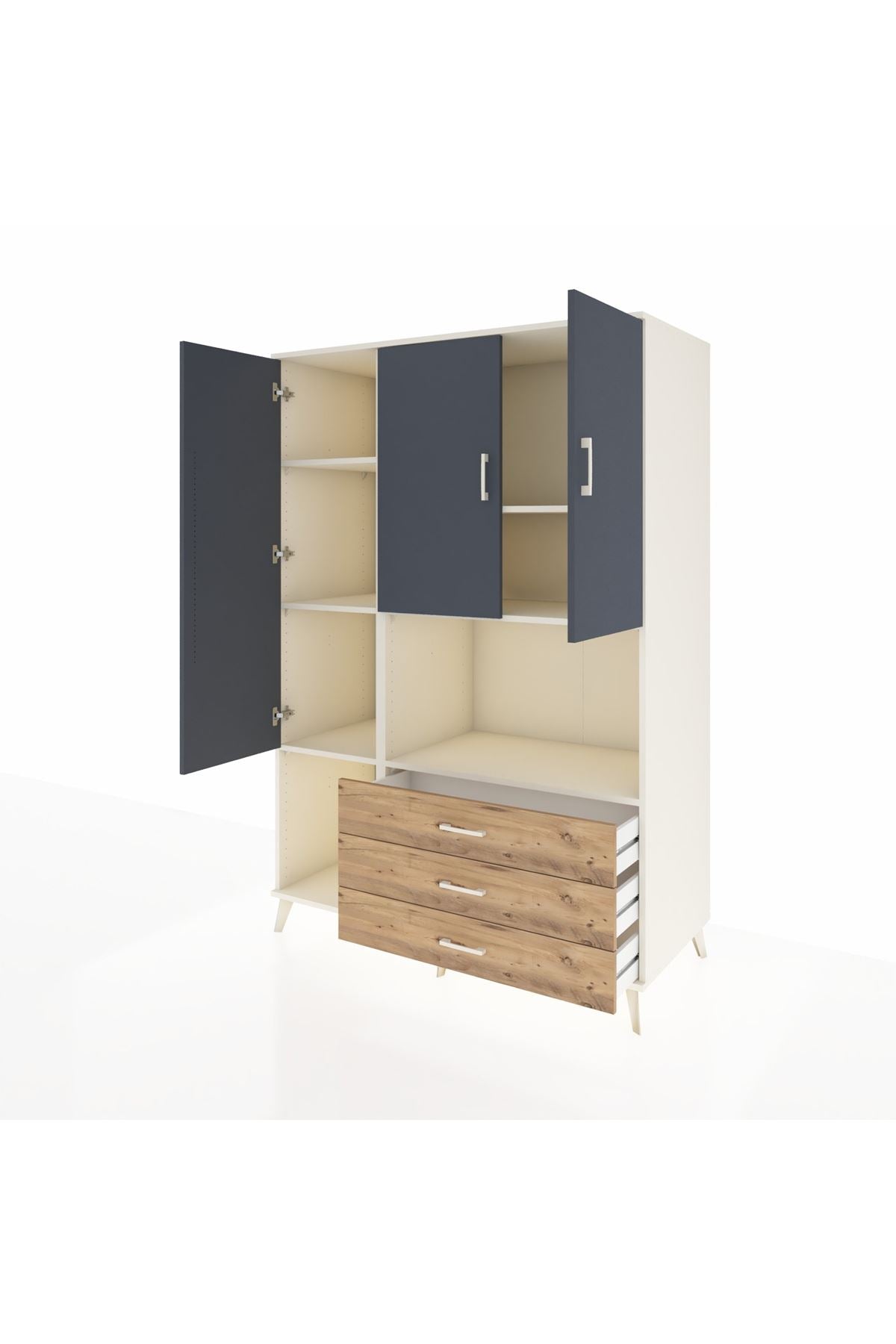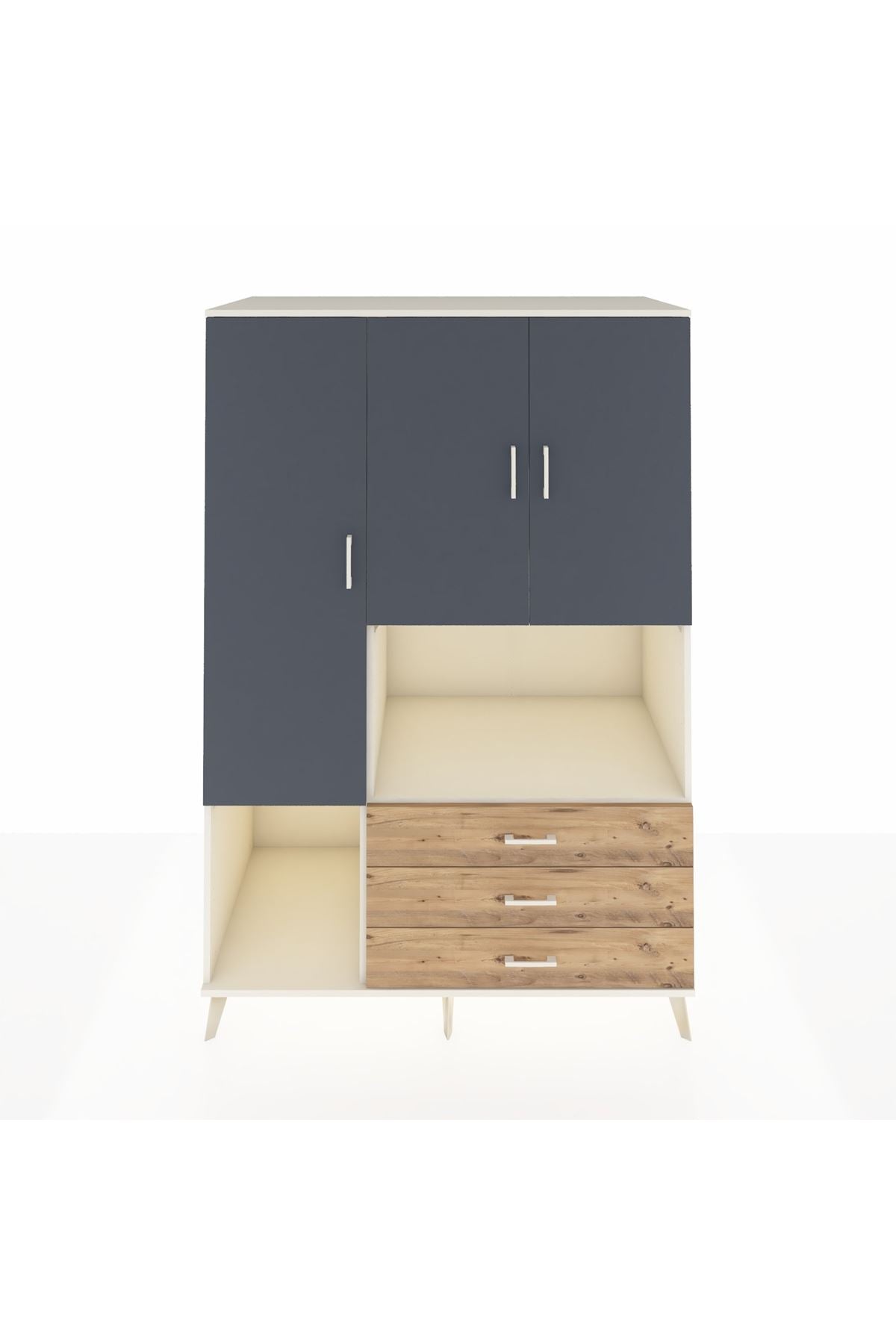 Kronos Dolap 6 Raflı 3 Çekmeceli 3 Kapaklı 132x59x195 Aytaşı-Antrasit/Çam