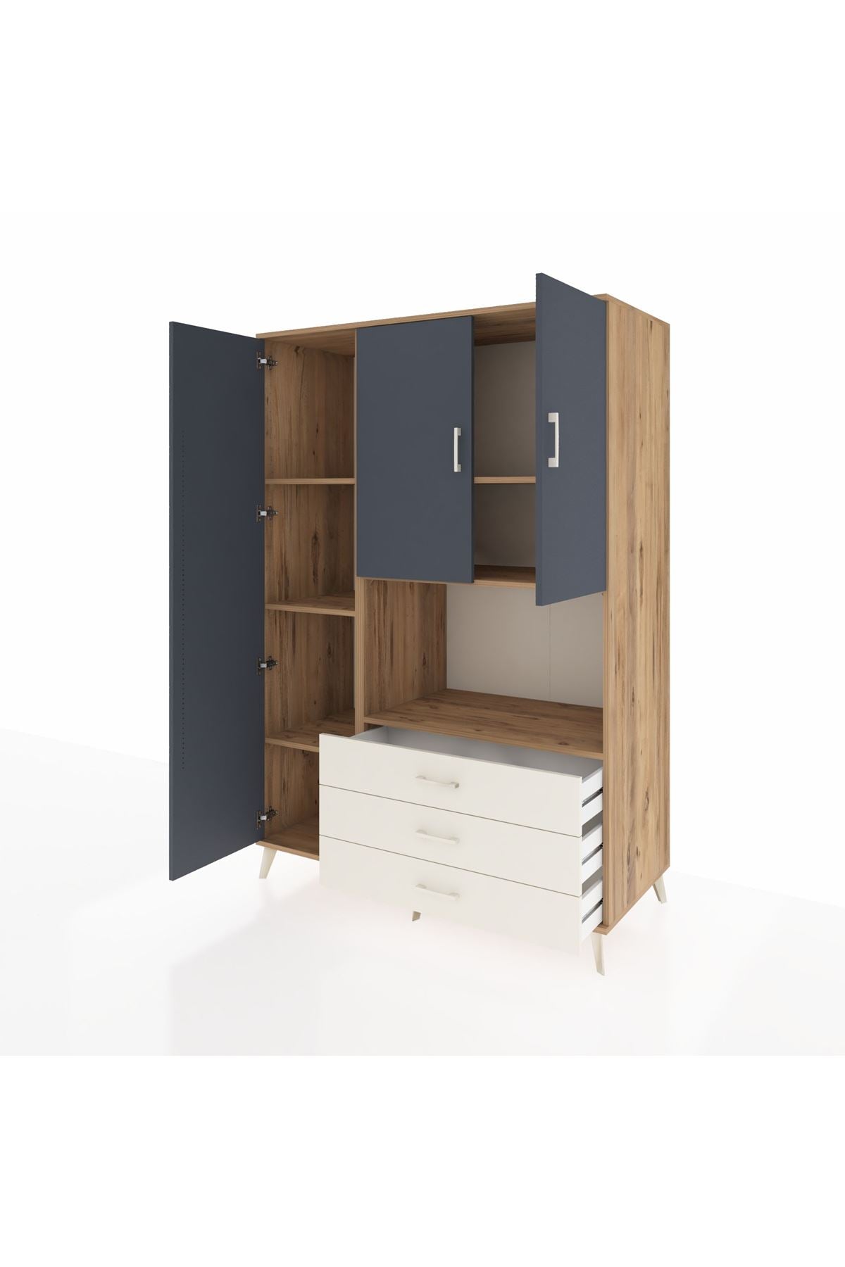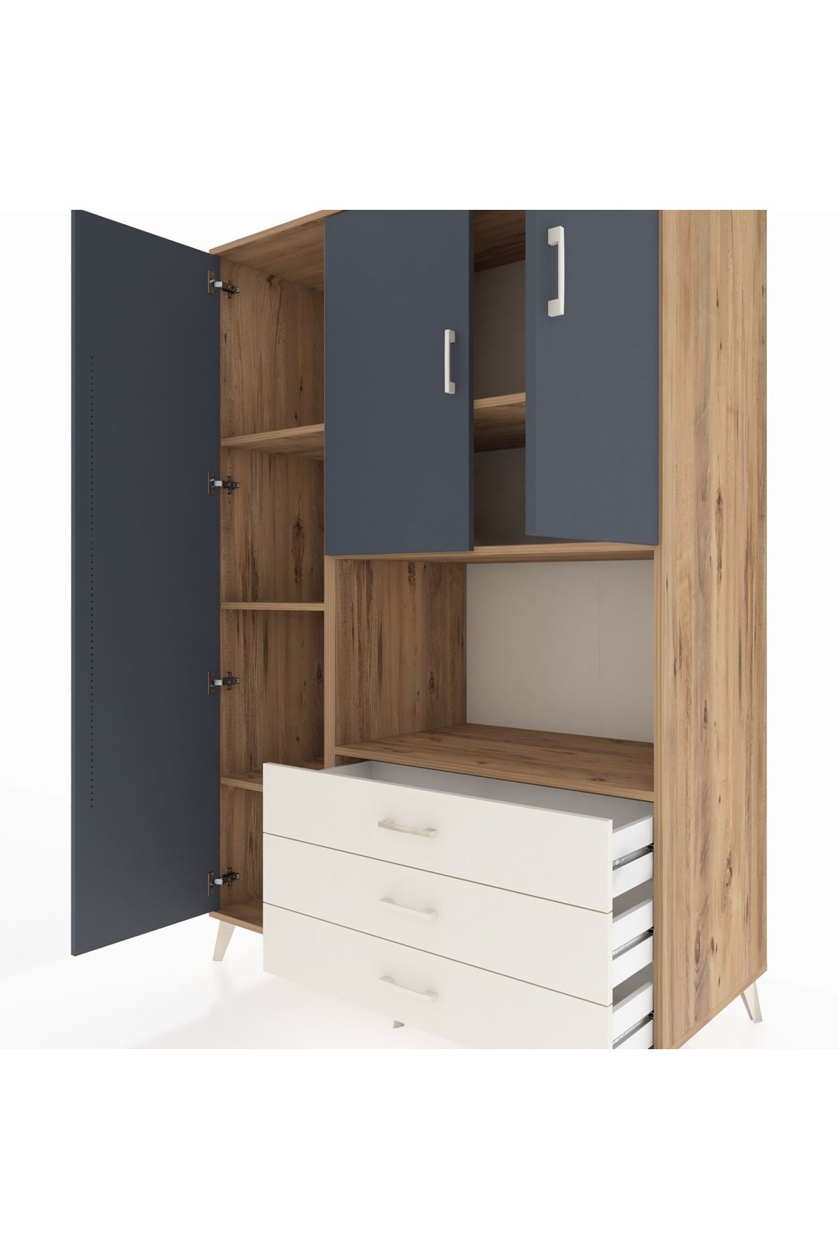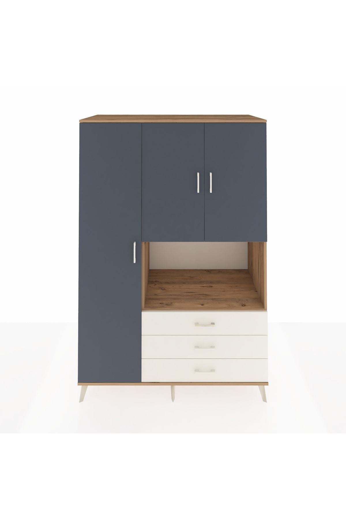 Kronos Dolap 6 Raflı 3 Çekmeceli 3 Kapaklı 132x59x195 Çam-Antrasit/Aytaşı