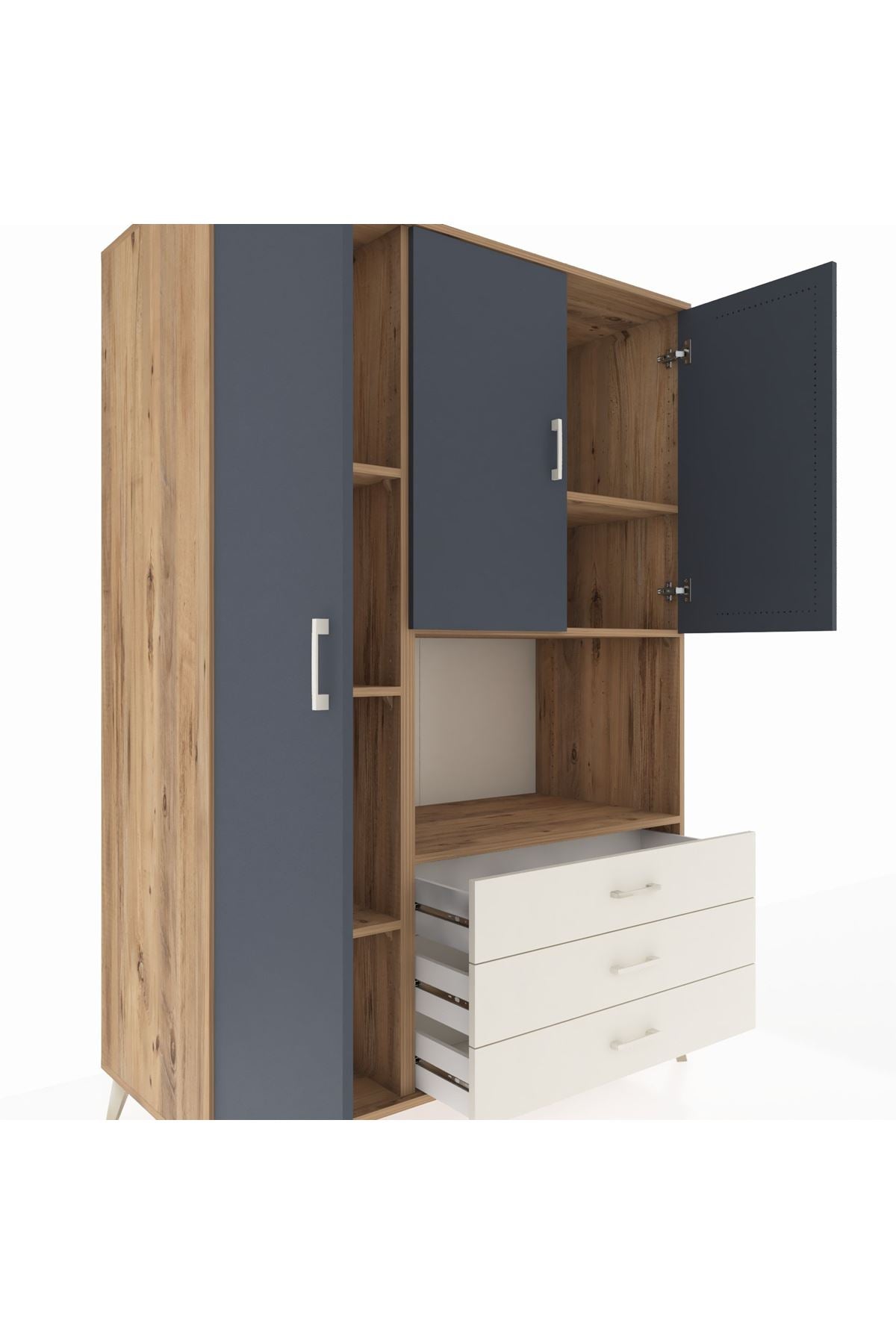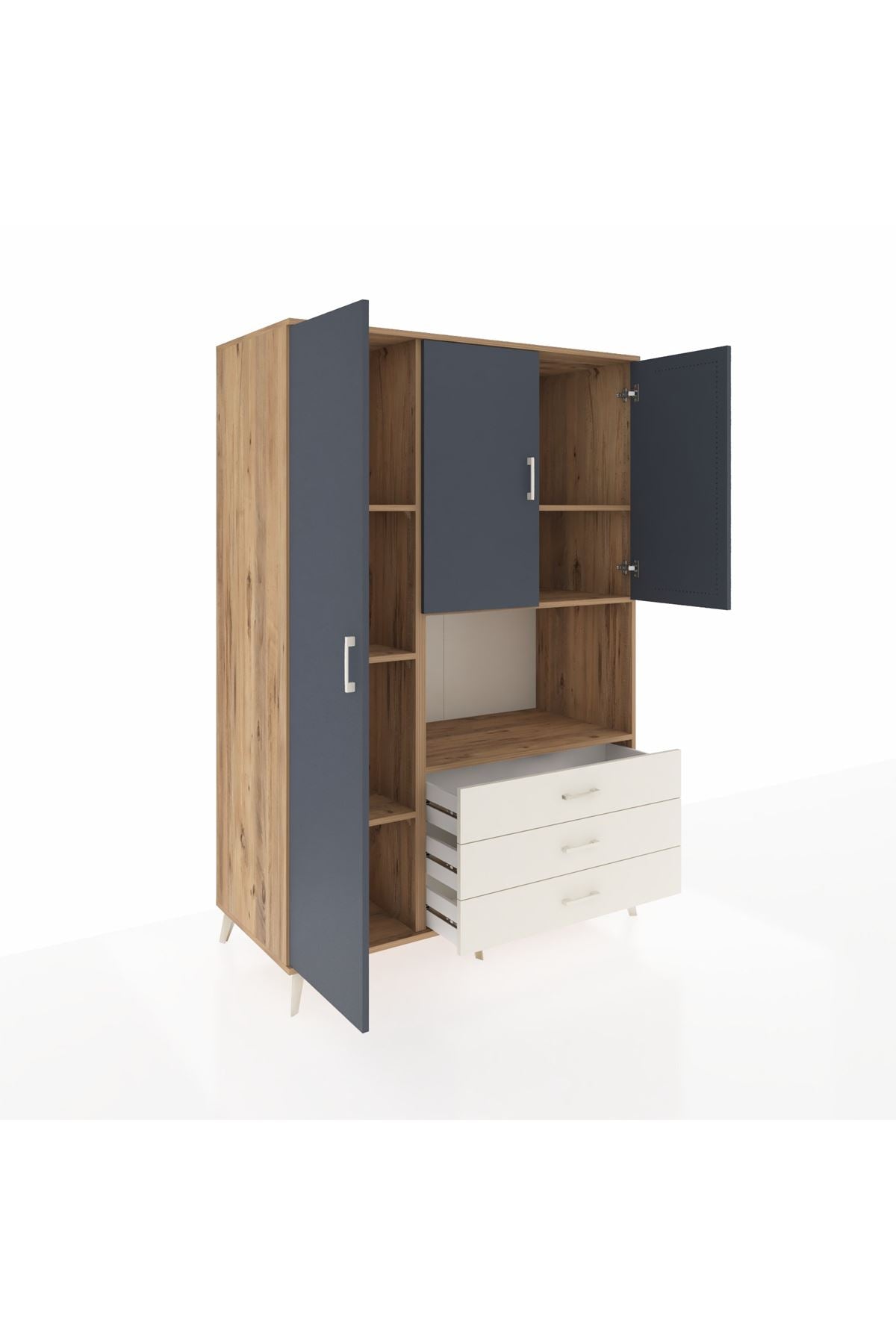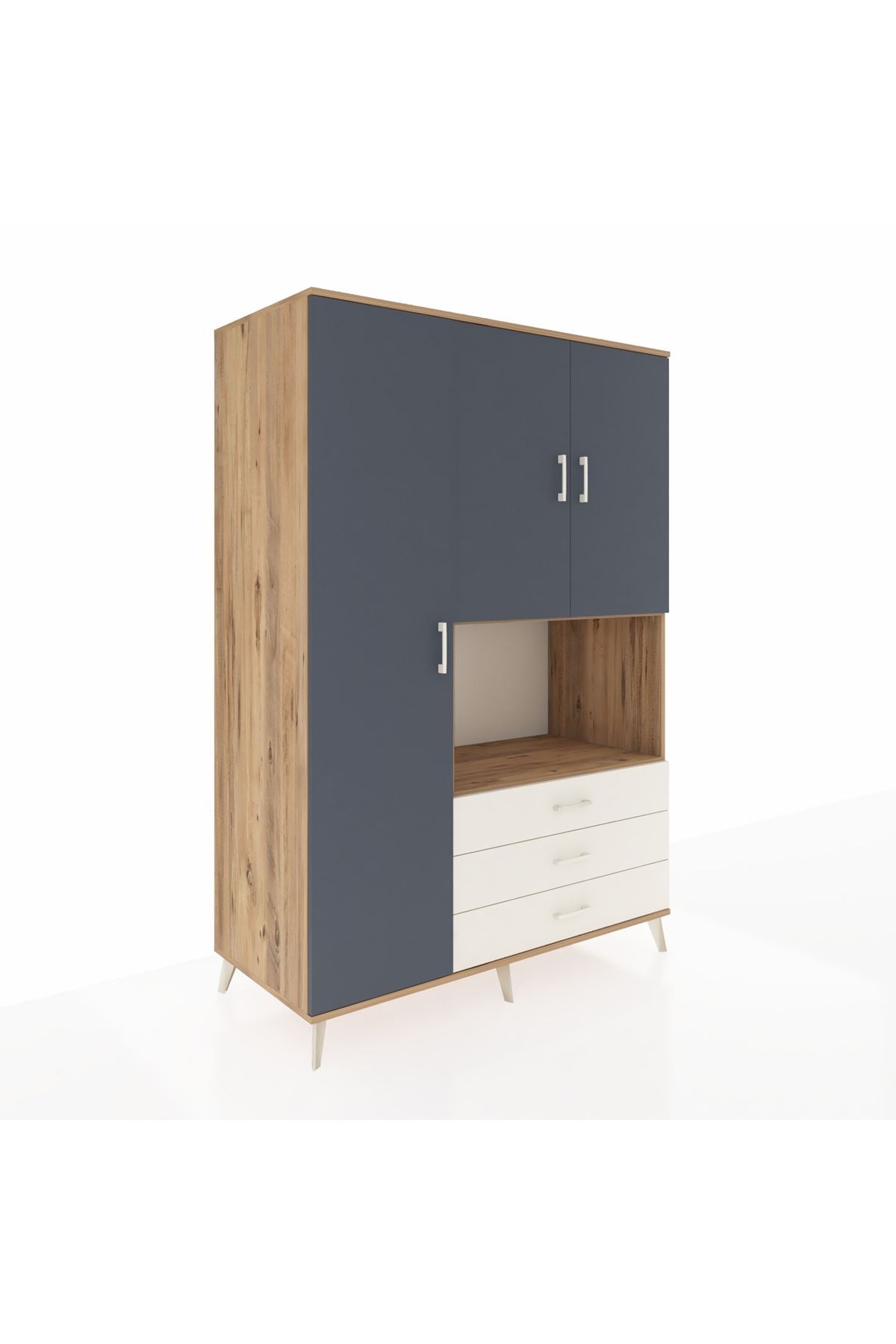 Kronos Dolap 6 Raflı 3 Çekmeceli 3 Kapaklı 132x59x195 Çam-Antrasit/Aytaşı