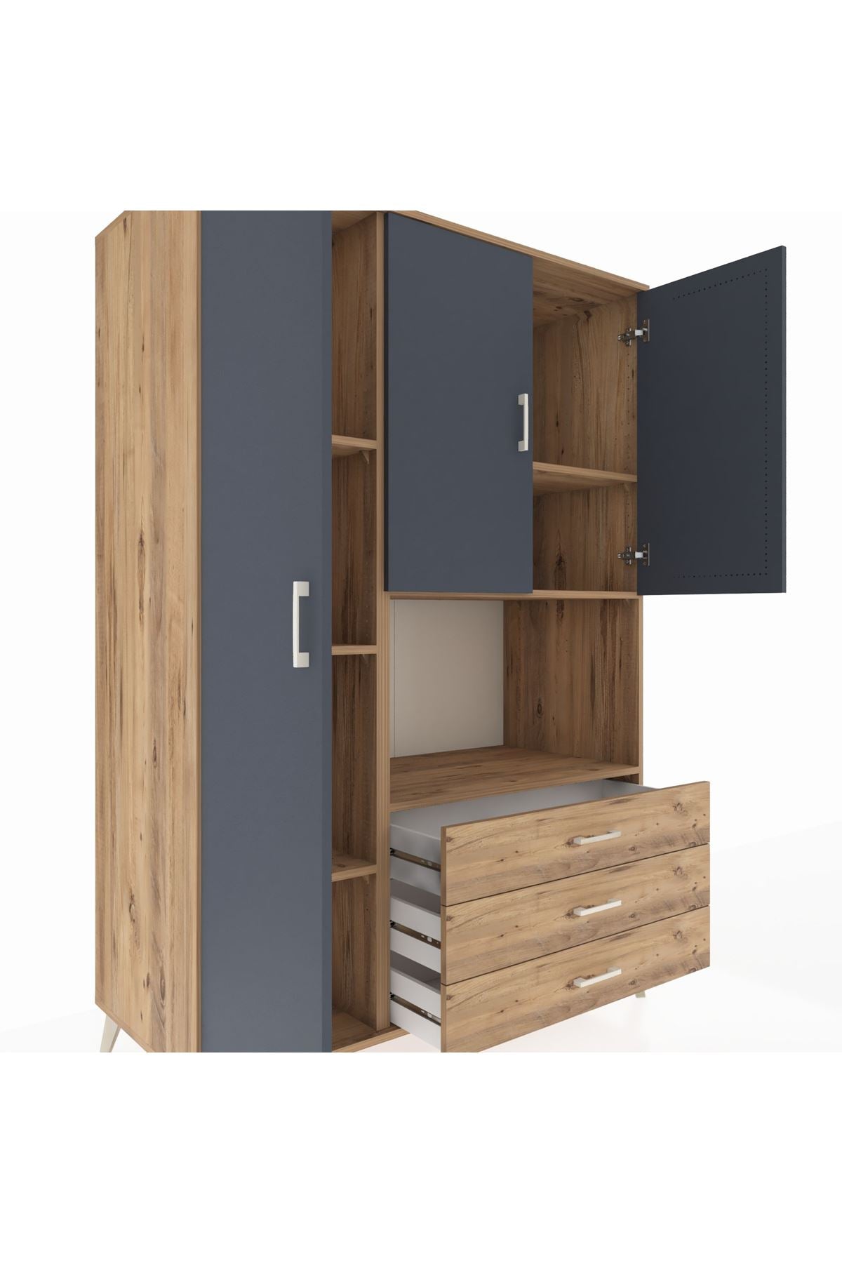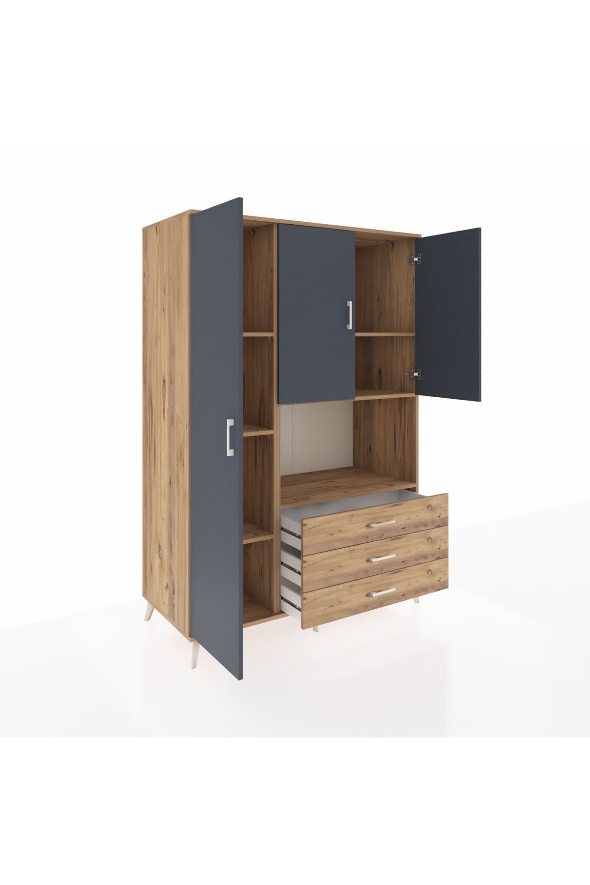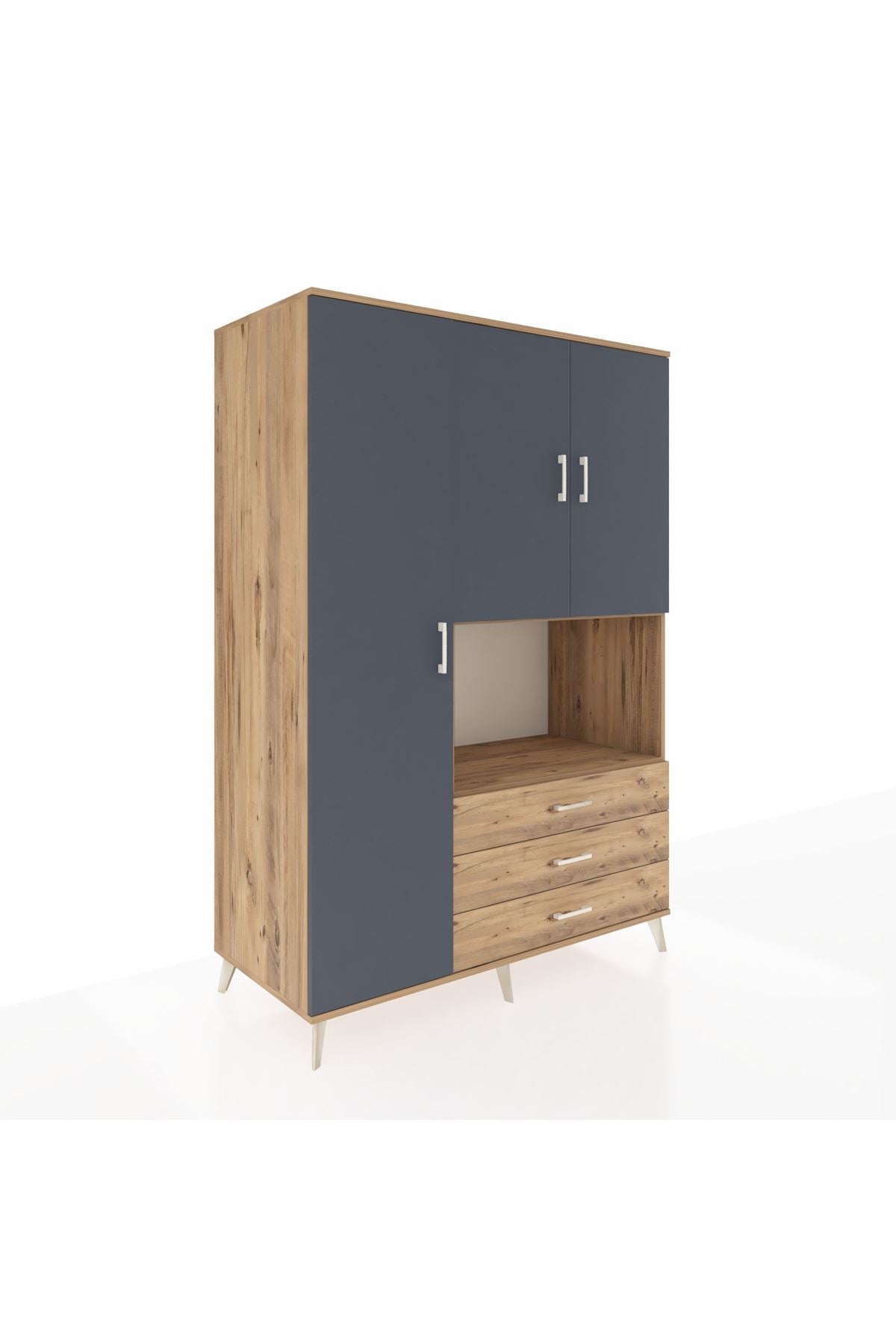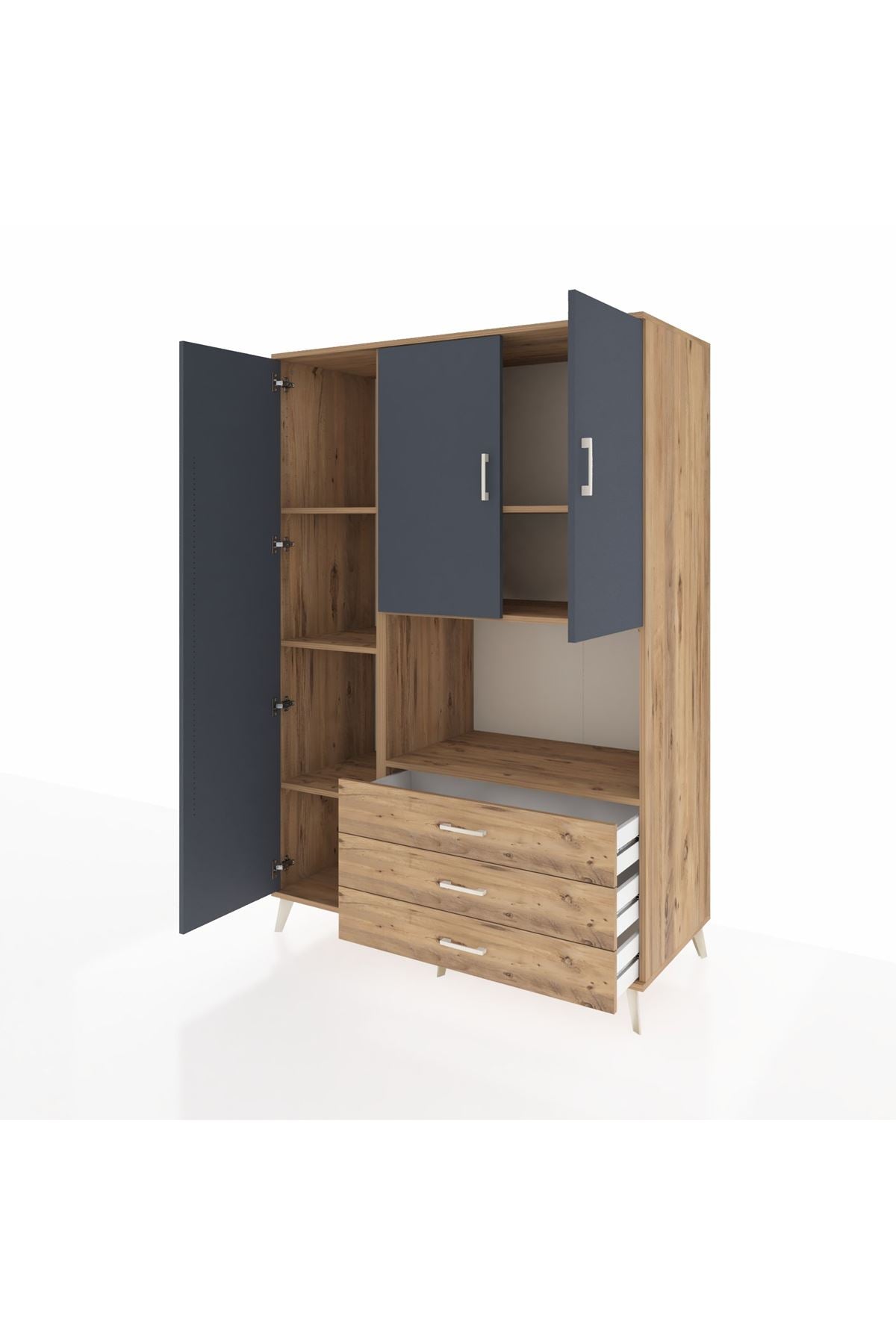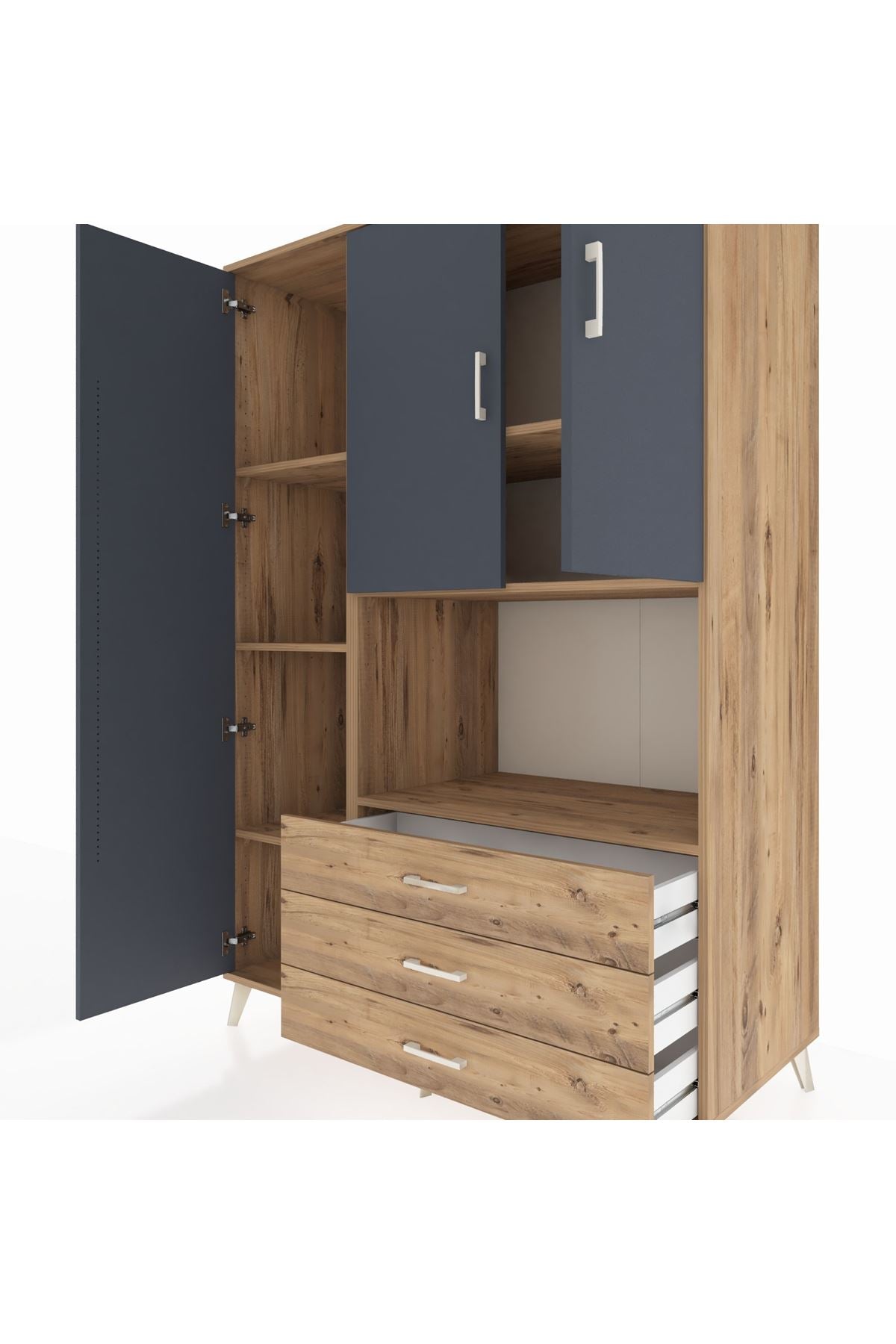 Kronos Dolap 6 Raflı 3 Çekmeceli 3 Kapaklı 132x59x195 Çam-Antrasit/Çam