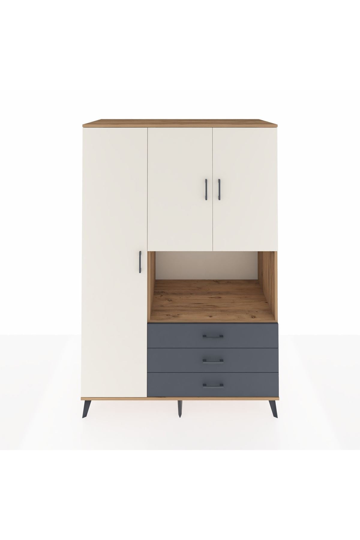 Kronos Dolap 6 Raflı 3 Çekmeceli 3 Kapaklı 132x59x195 Çam-Aytaşı/Antrasit