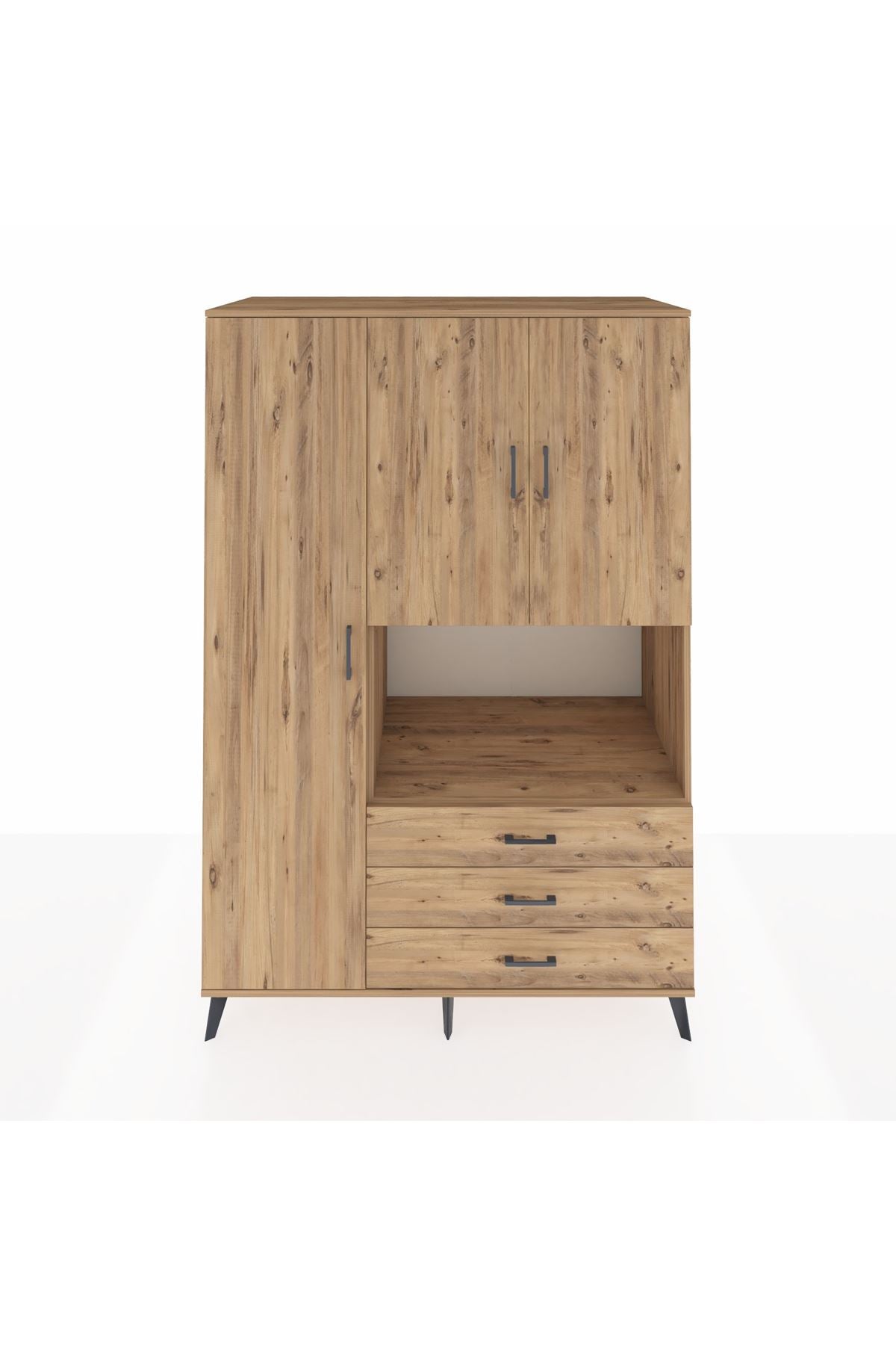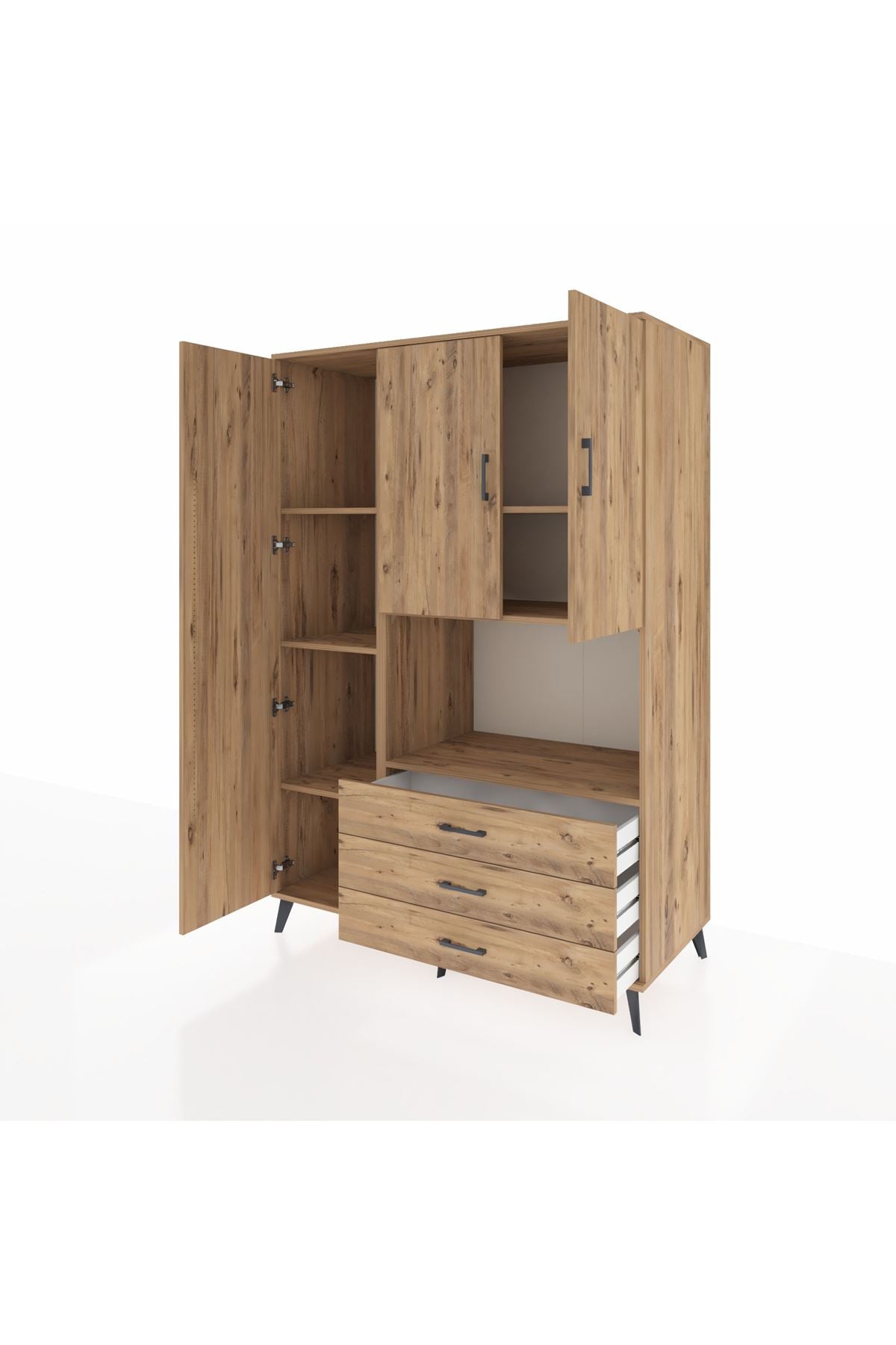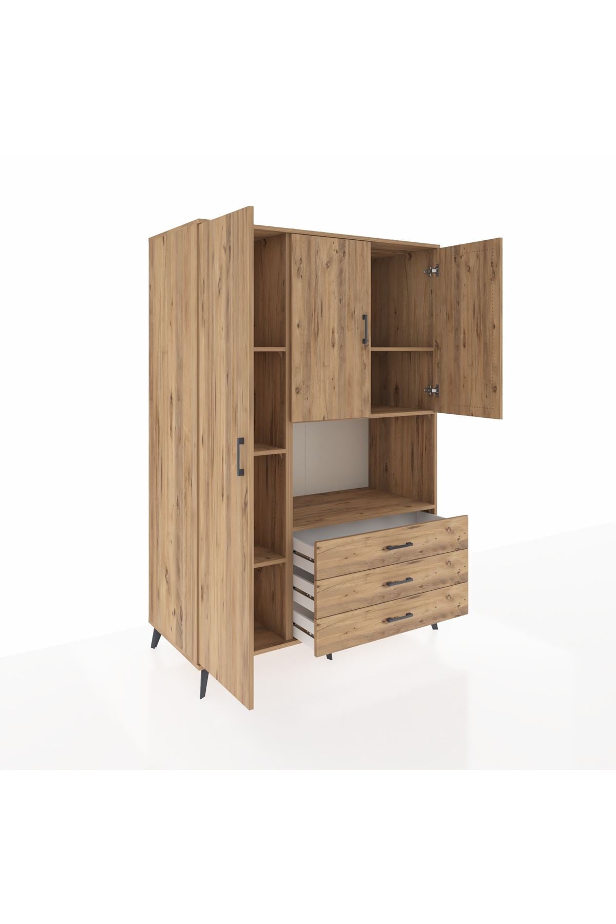 Kronos Dolap 6 Raflı 3 Çekmeceli 3 Kapaklı 132x59x195 Çam-Çam/Çam