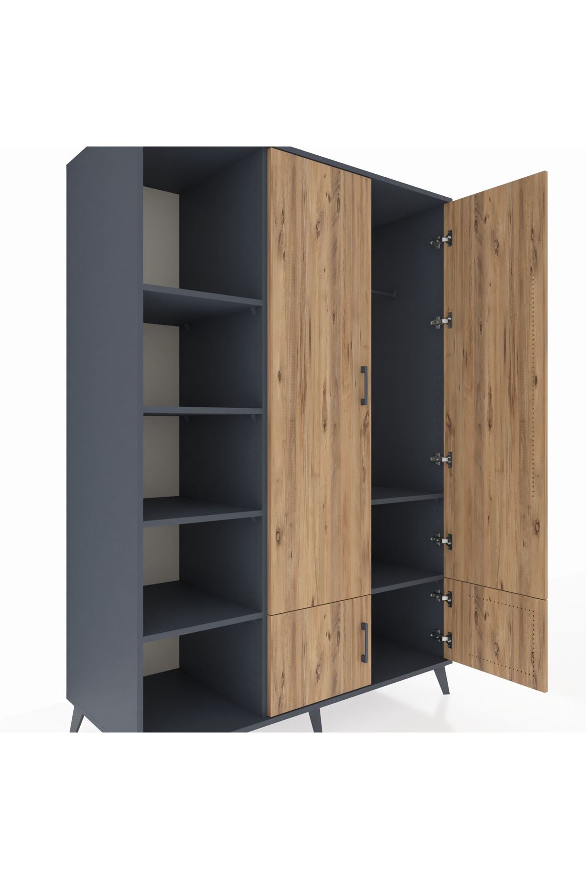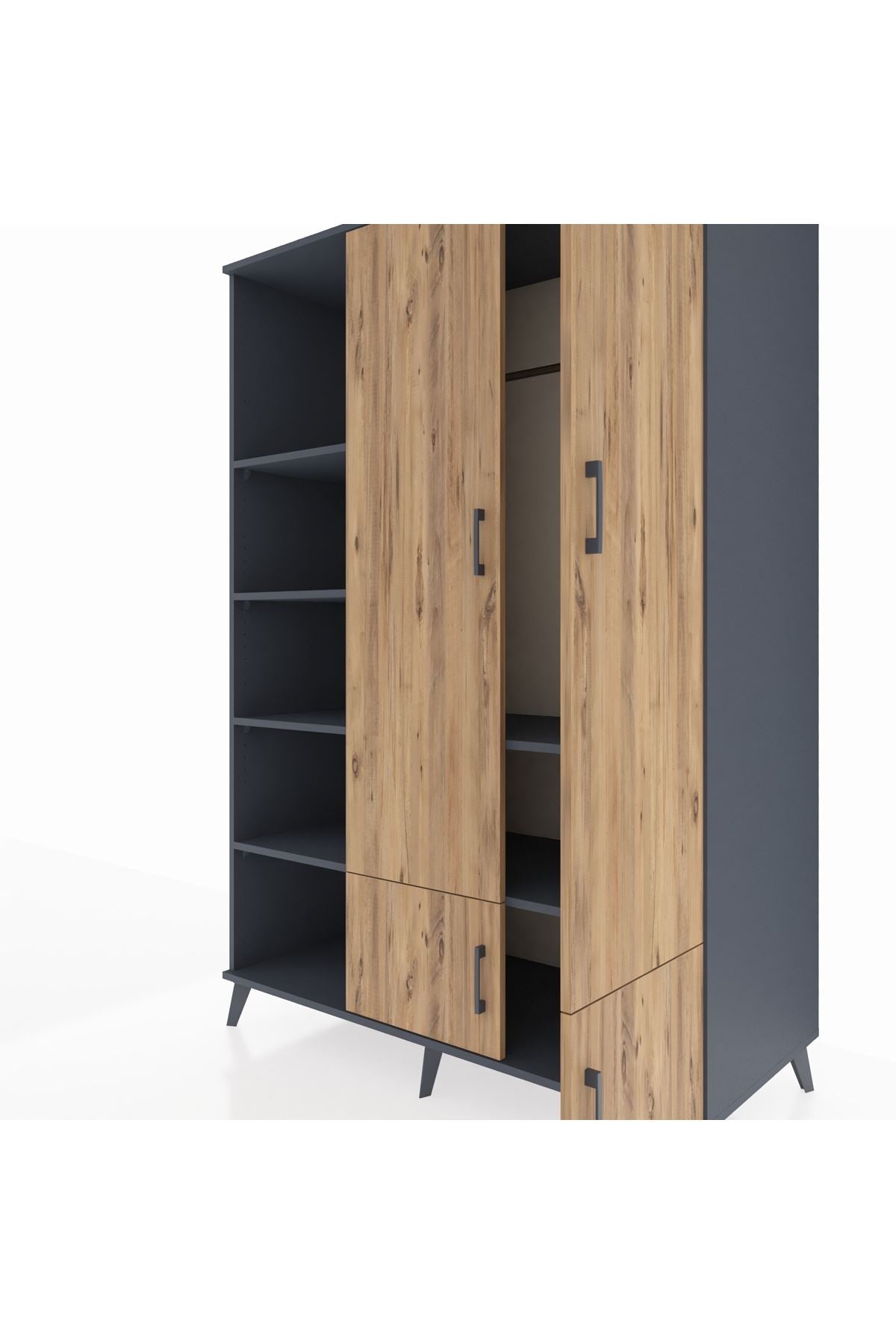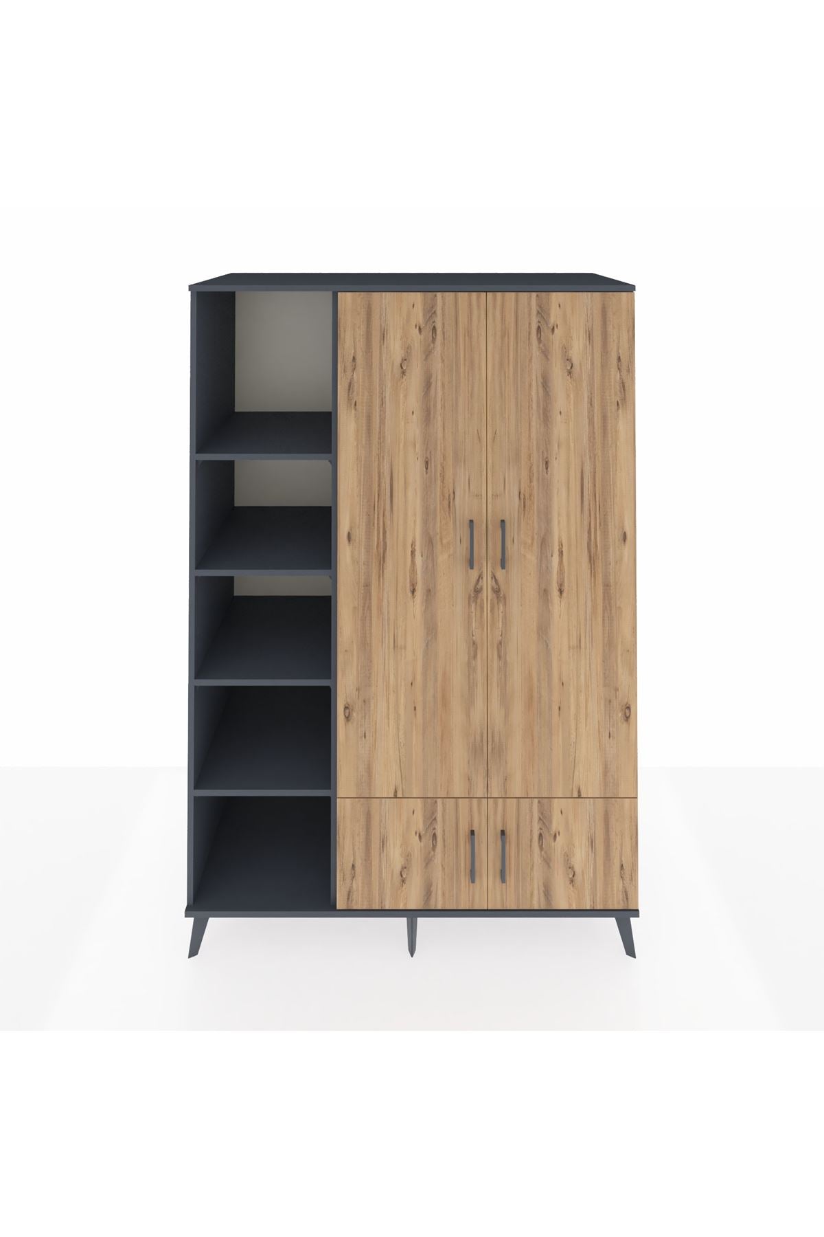 🌞 Kronos Dolap 6 Raflı 4 Kapaklı Tek Askılı 132x59x195 Antrasit-Çam/Antrasit
