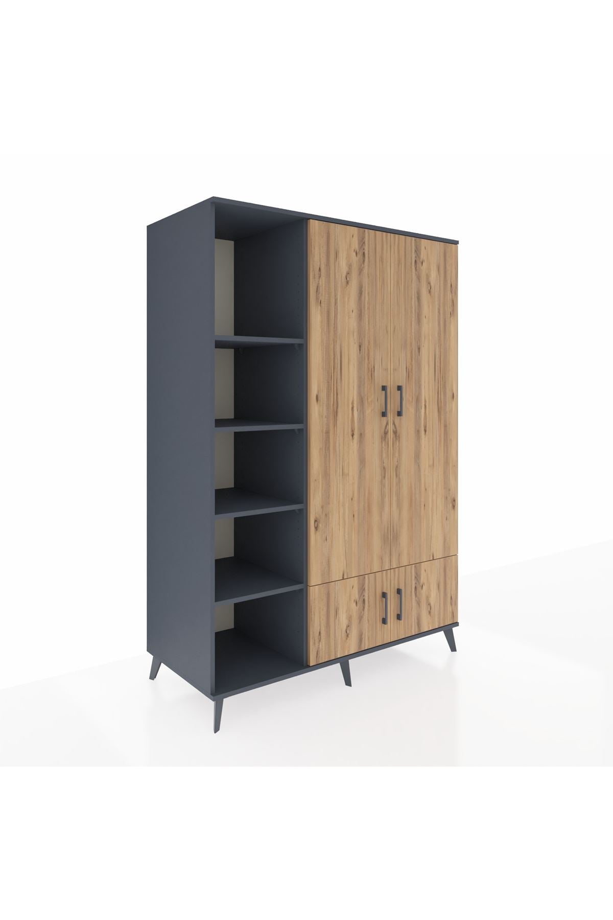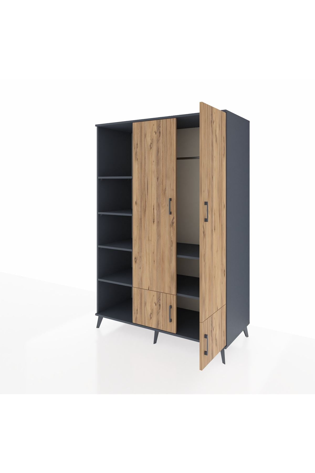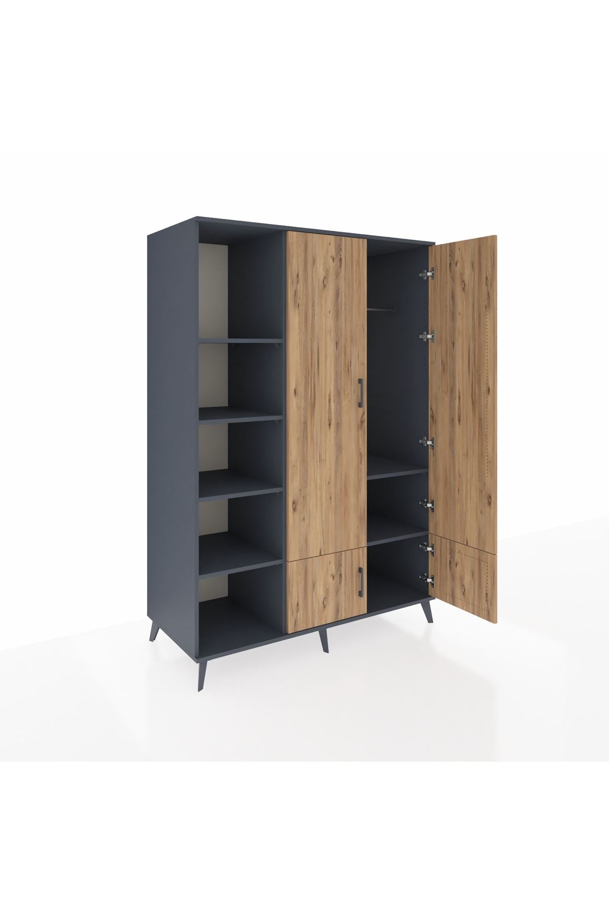 - Gardırop: 195 cm yüksekliği ve 132 cm genişliğiyle yatak odası için ideal kıyafet saklama alanı.