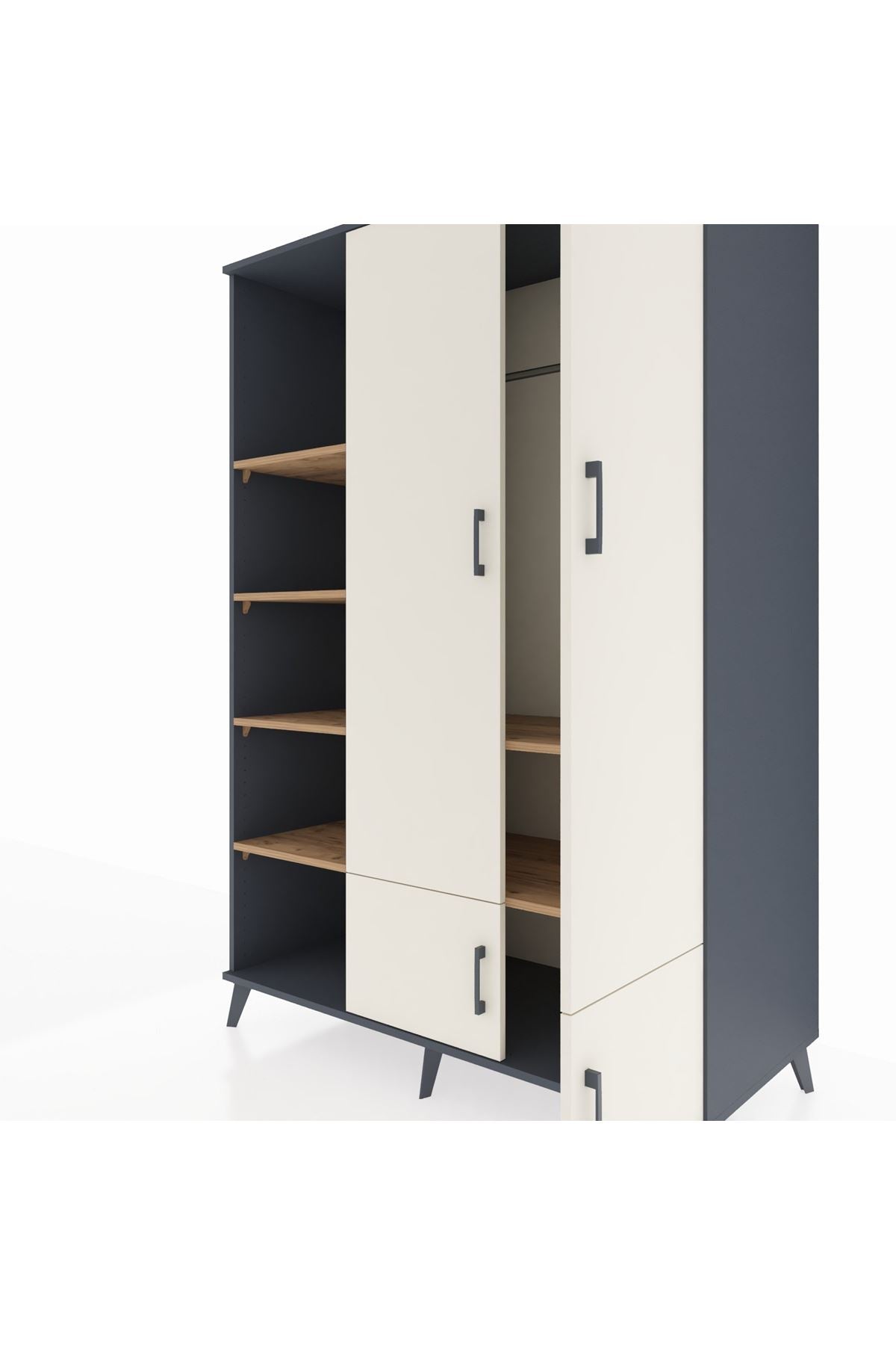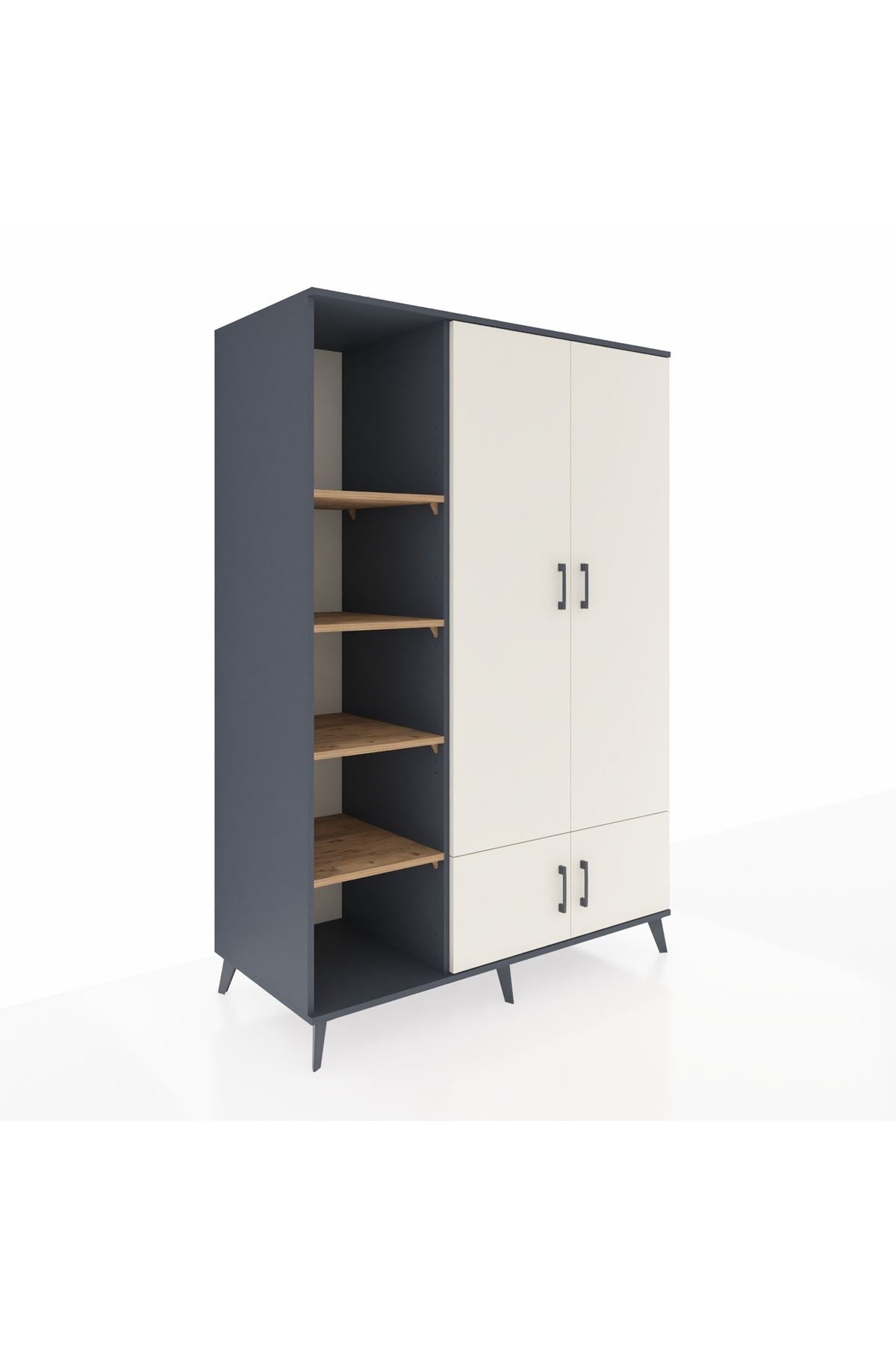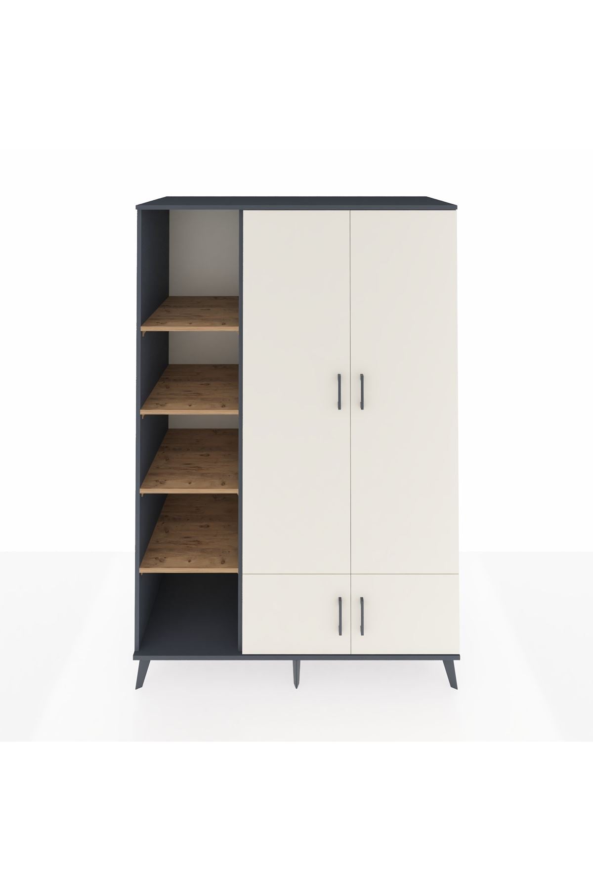 Dört kapaklı yapısı ve altı rafıyla giysi, ev tekstili veya kitaplarınızı rahatça yerleştirebilirsiniz. 📚👗 Tek askılı bölümü sayesinde uzun kıyafetleriniz için ekstra alan yaratır. Metal ayaklar ve metal kulplar, sağlamlık ve modern bir görünüm kazandırır. Gövdesi birinci sınıf Kastamonu Entegre suntalamdan üretilmiştir, kapaklarda ise antrasit ve aytaşı/çam renk kombinasyonu bulunur. 🪵