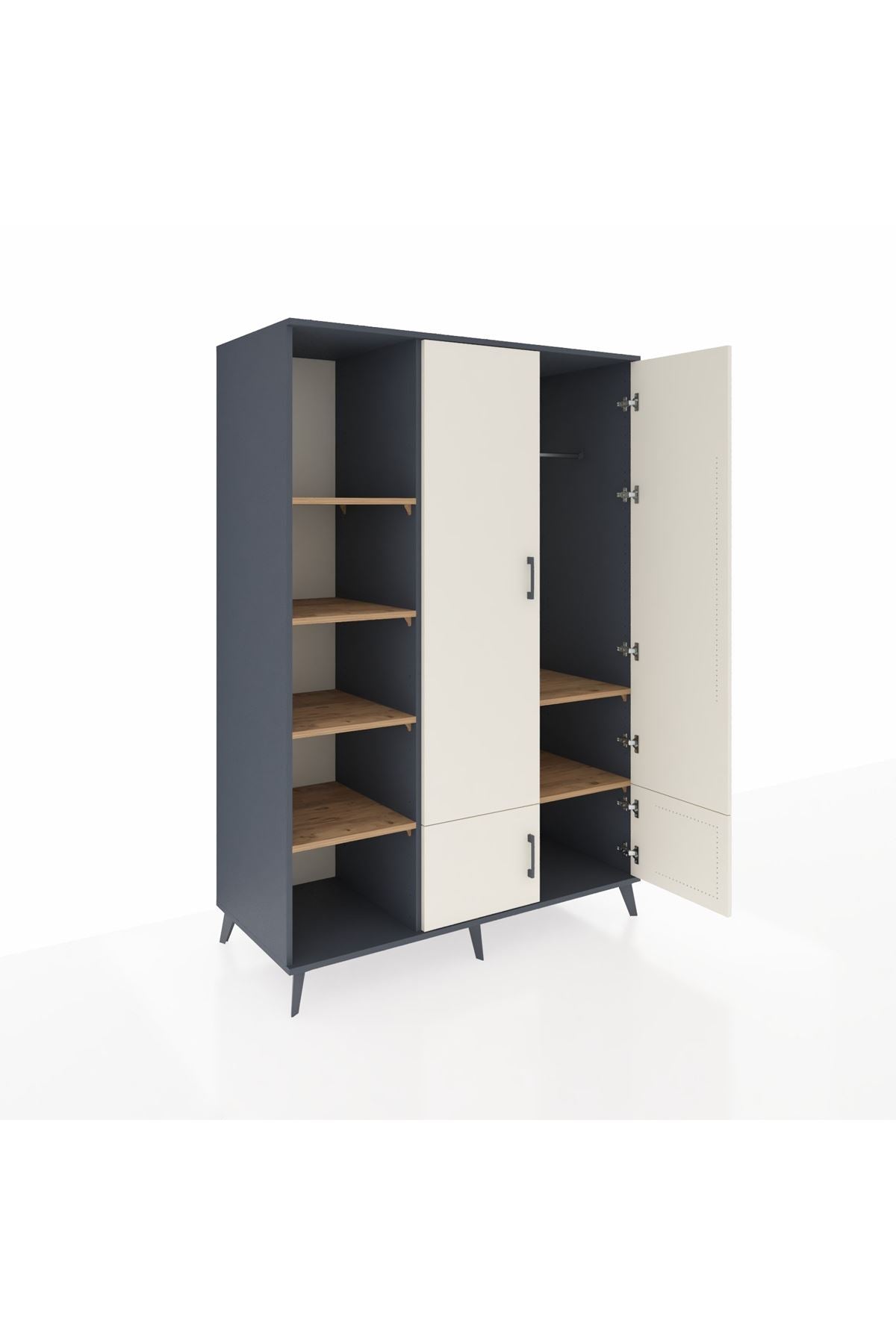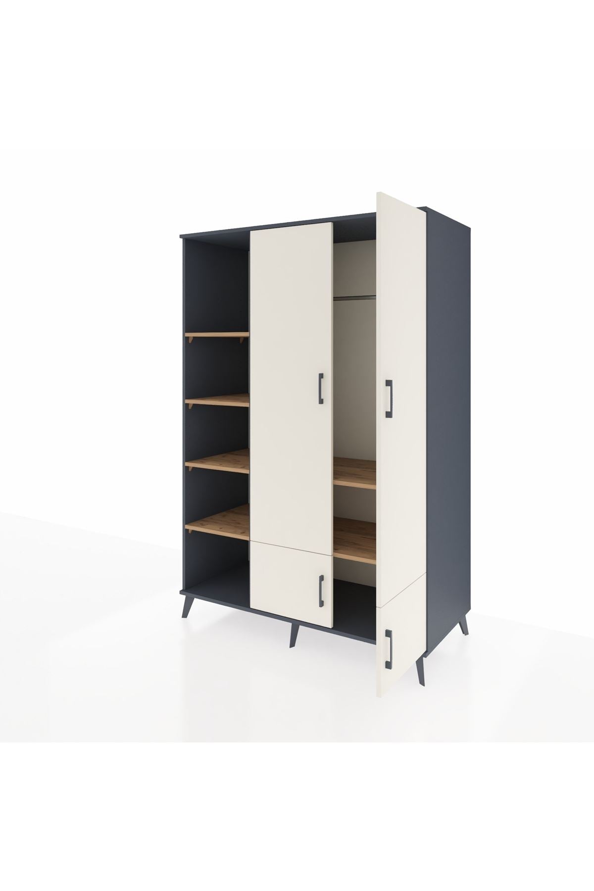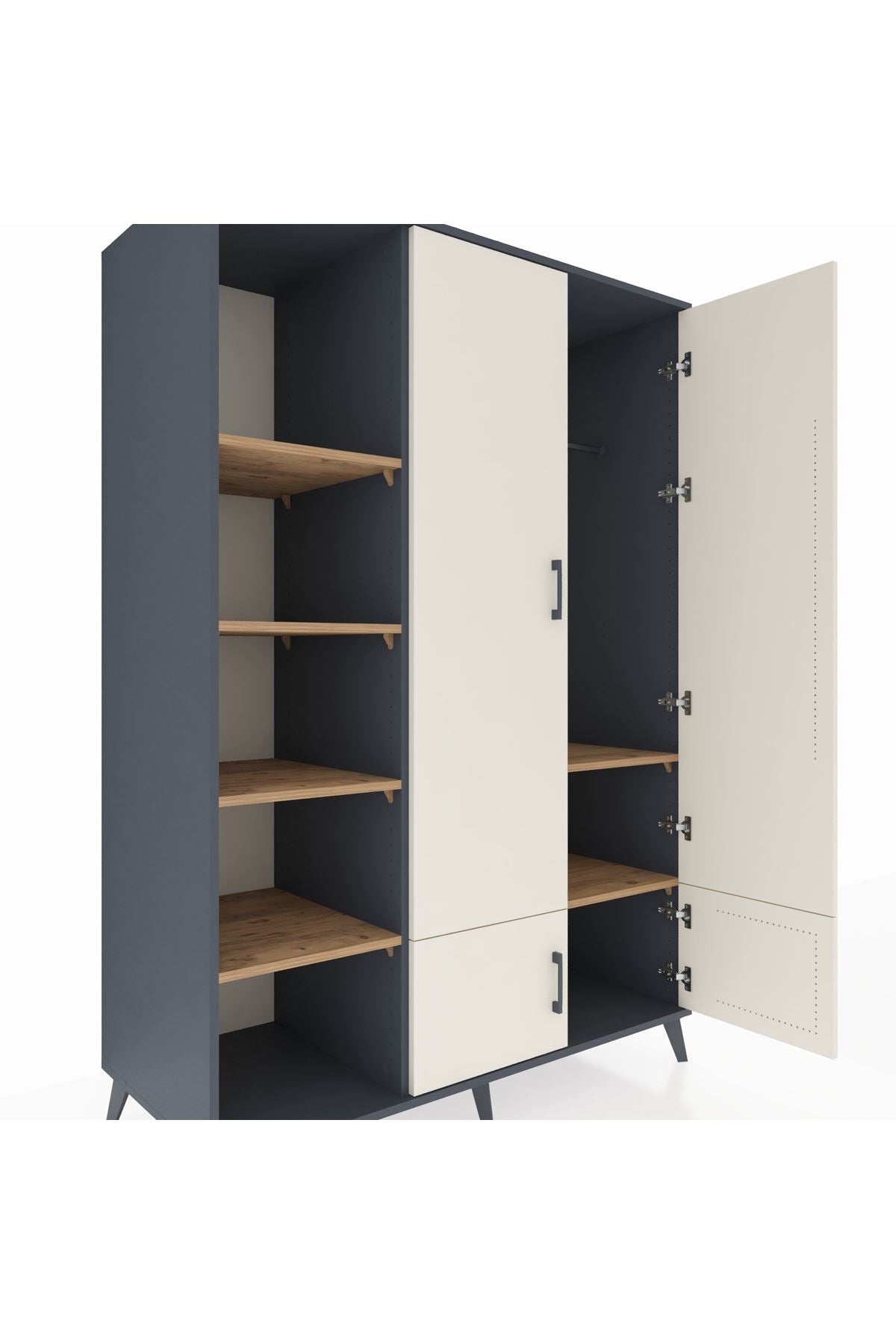 Dört kapaklı yapısı ve altı rafıyla giysi, ev tekstili veya kitaplarınızı rahatça yerleştirebilirsiniz. 📚👗 Tek askılı bölümü sayesinde uzun kıyafetleriniz için ekstra alan yaratır. Metal ayaklar ve metal kulplar, sağlamlık ve modern bir görünüm kazandırır. Gövdesi birinci sınıf Kastamonu Entegre suntalamdan üretilmiştir, kapaklarda ise antrasit ve aytaşı/çam renk kombinasyonu bulunur. 🪵