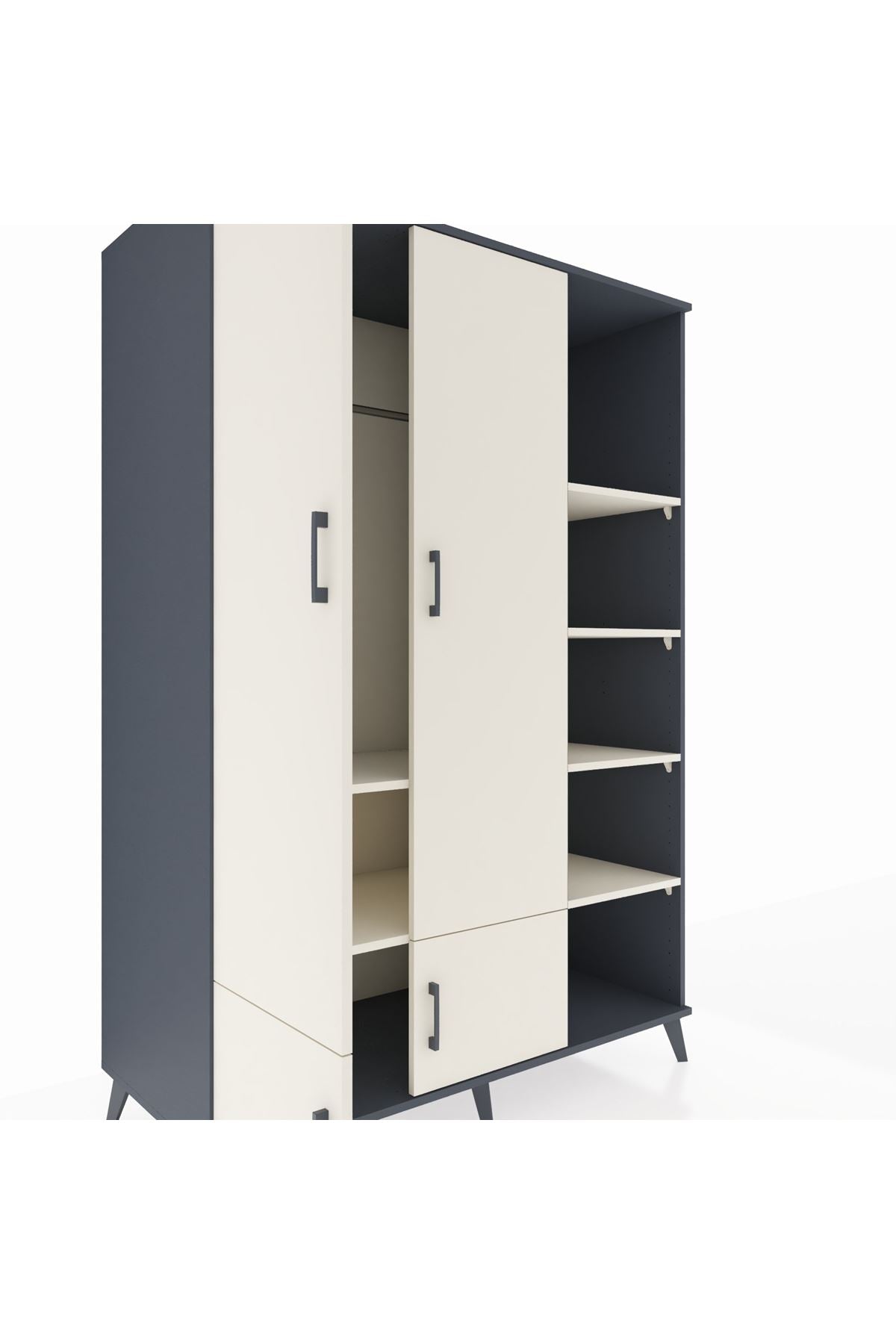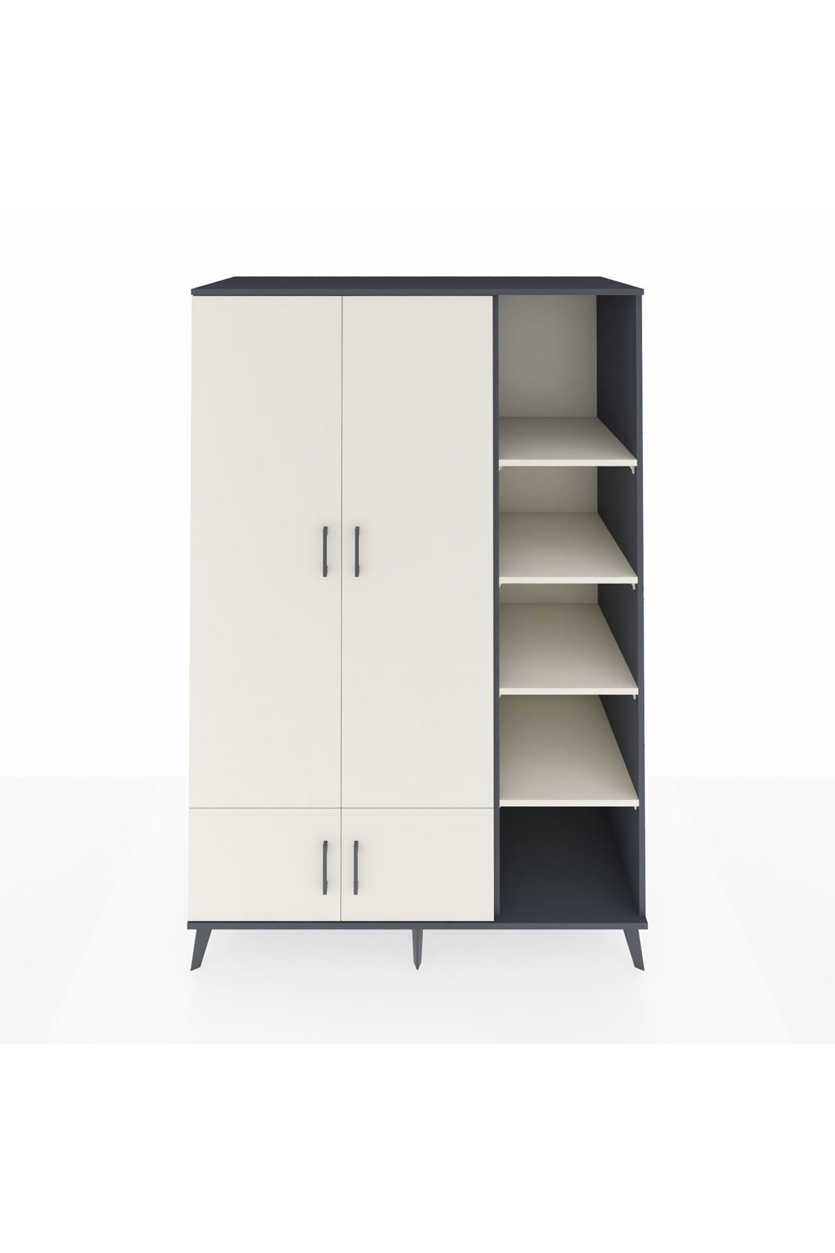 Kronos Dolap 6 Raflı 4 Kapaklı Tek Askılı 132x59x195 Antrasit-Aytaşı/Aytaşı