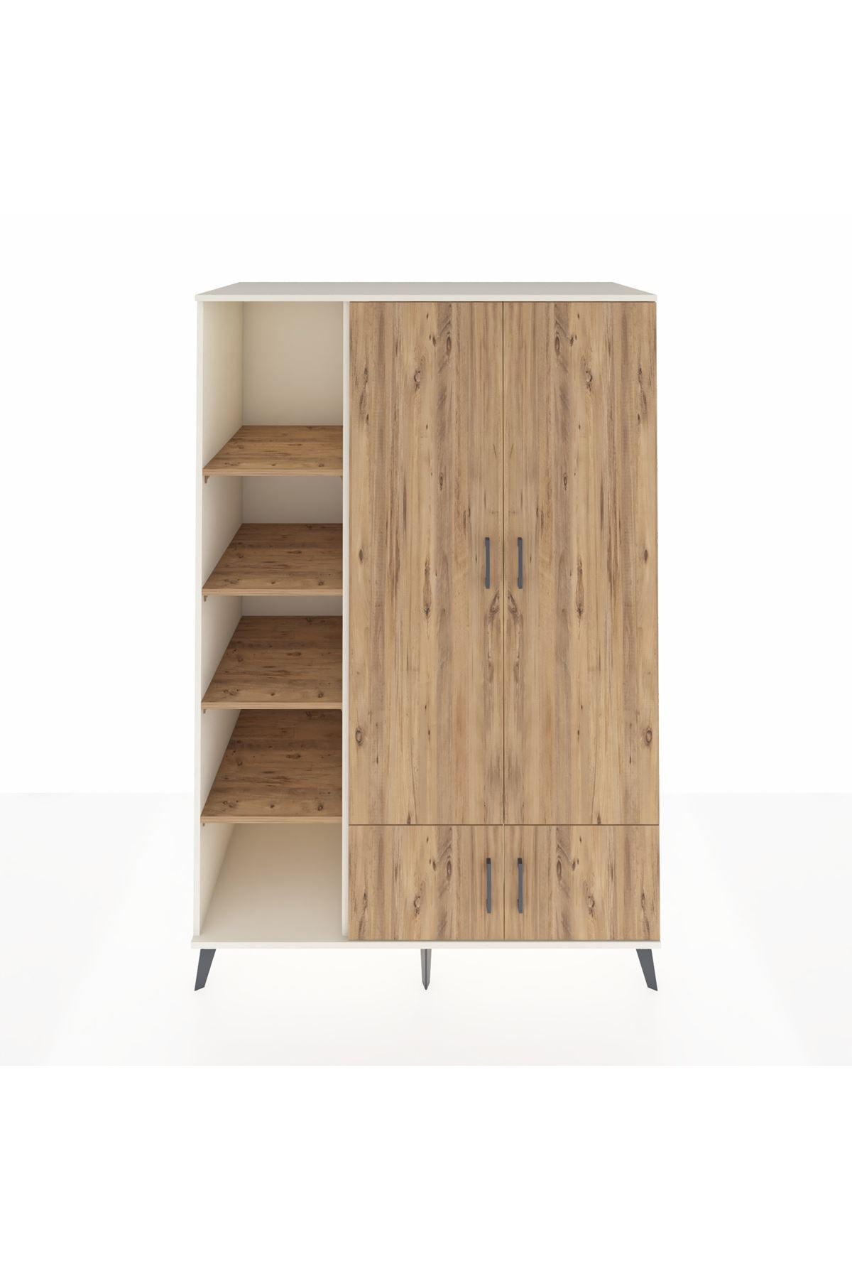 - Gardırop: 195 cm yüksekliği ve 132 cm genişliğiyle yatak odalarında elbise düzeni sağlar.