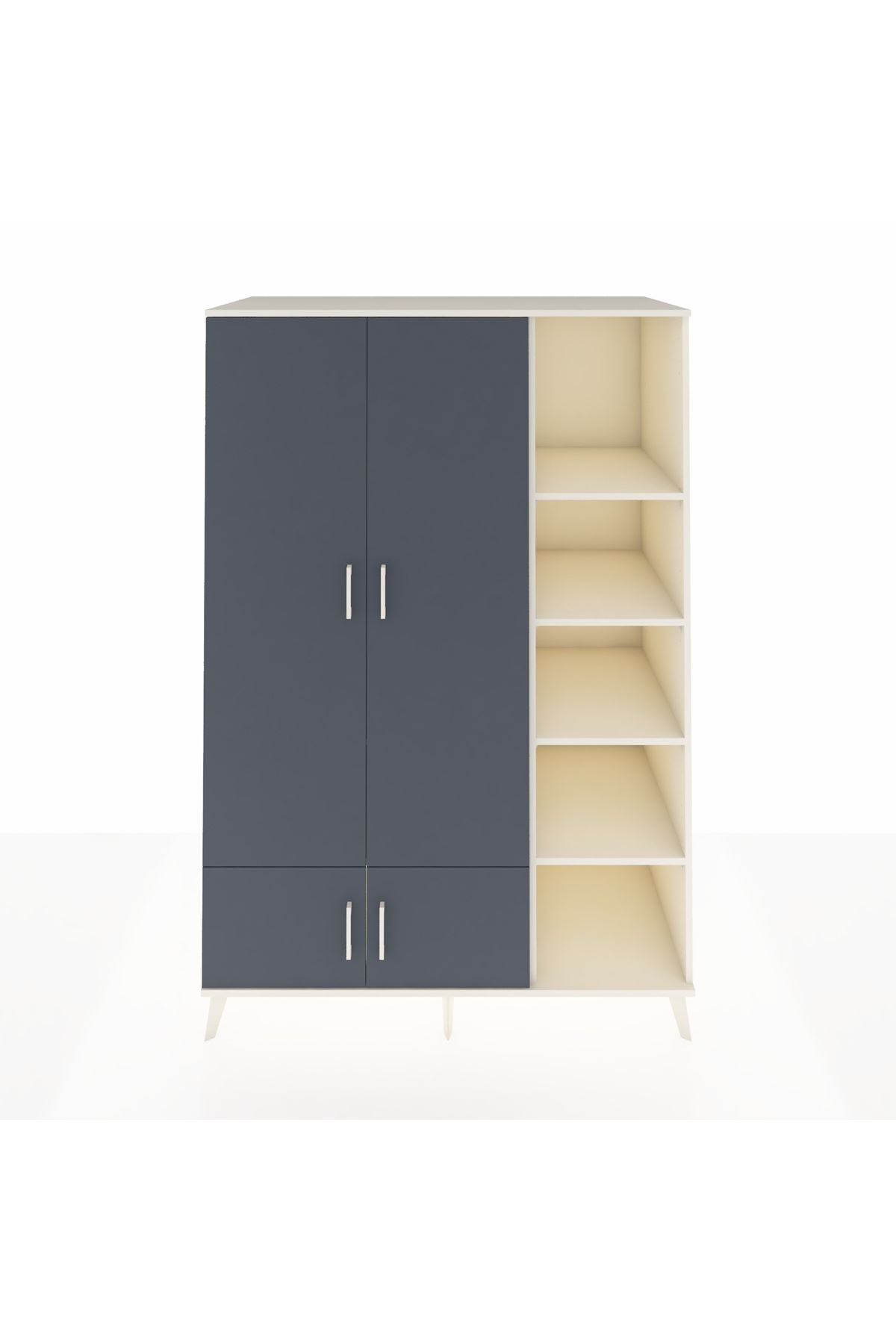 Kronos Dolap 6 Raflı 4 Kapaklı Tek Askılı 132x59x195 Aytaşı-Antrasit/Aytaşı
